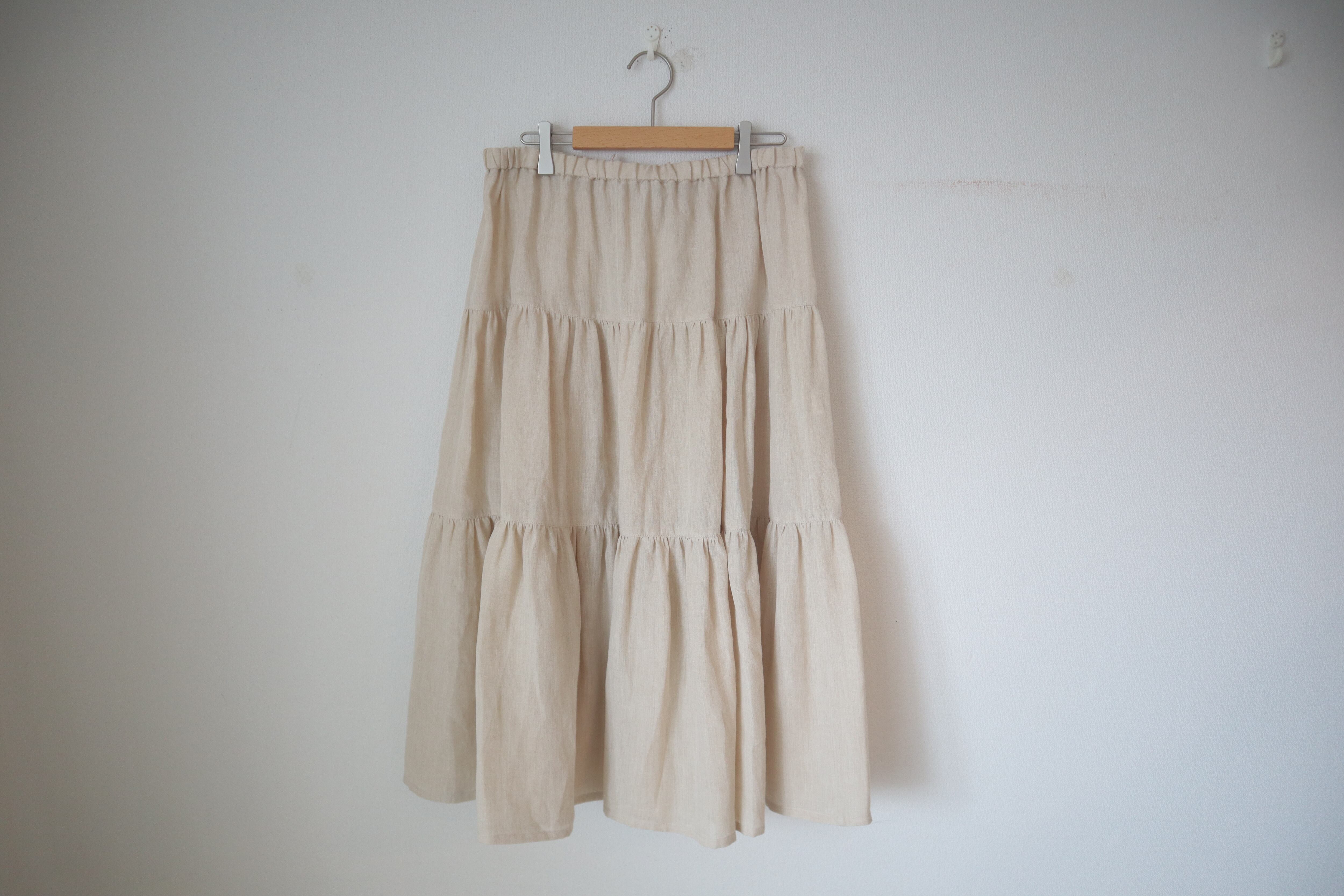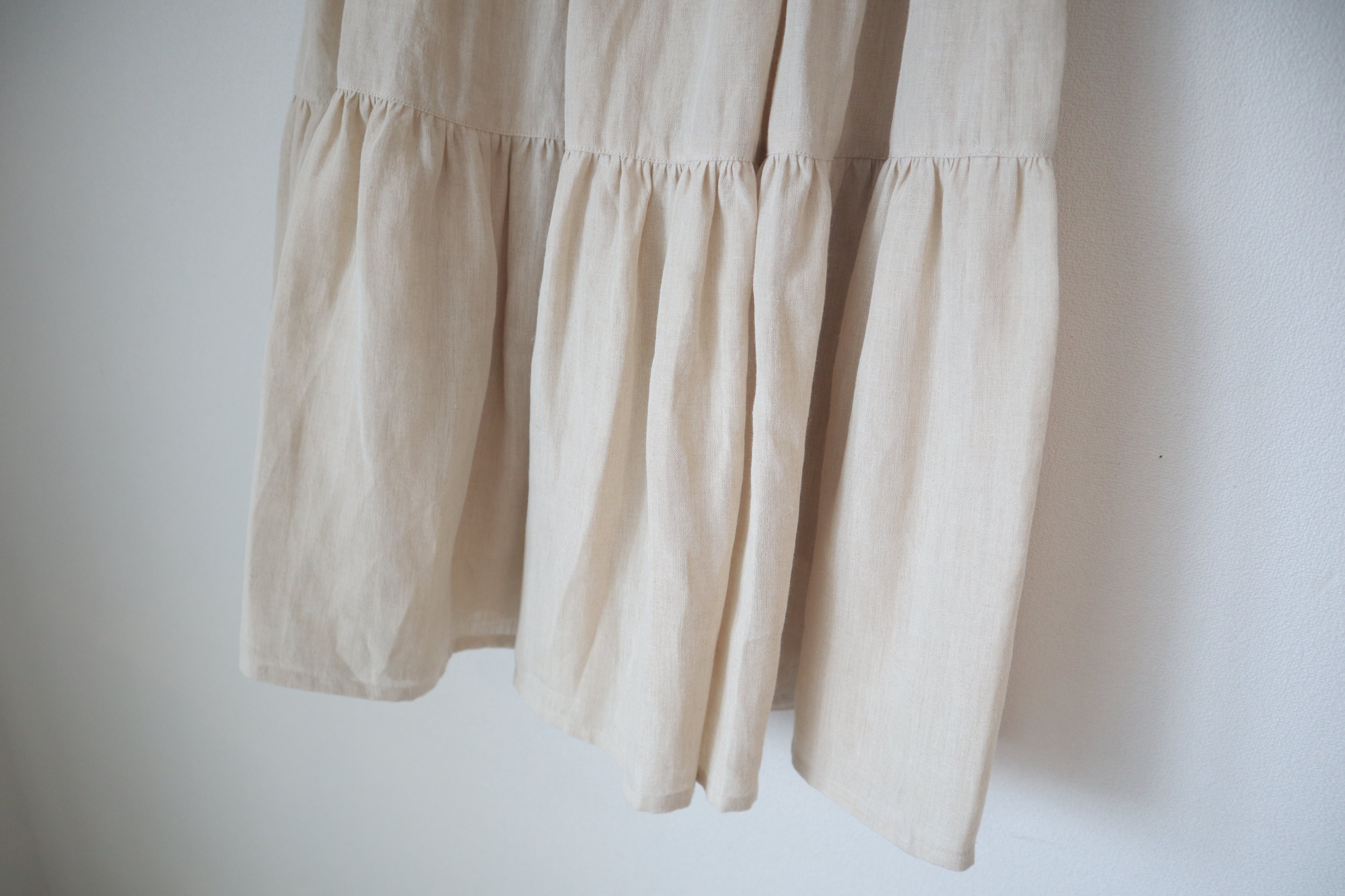 DENSLY LINEN TIERED SKIRTは、柔らかなリネン素材で仕立てられたティアードスカートです!アンティークホワイトの優しい色合いが特徴で、洗練された印象を与えます。軽やかなティアードデザインにより、動くたびに美しいシルエットを演出します。カジュアルなTシャツやブラウスと合わせることで、日常のコーディネートに華やぎをプラスし、特別な日のお出かけにも最適な一着です。