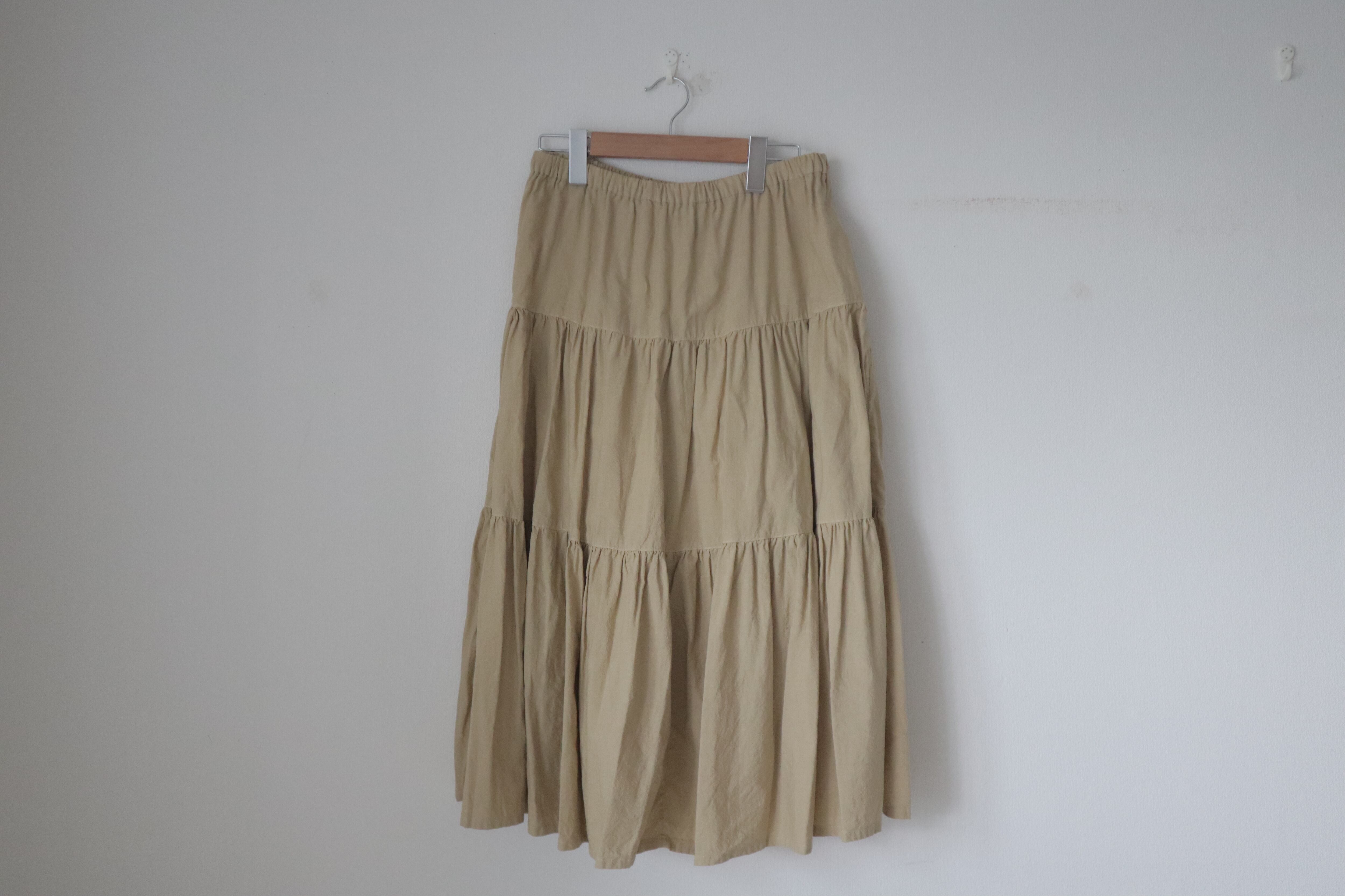 リネンとコットンを贅沢に使用した、滑らかな肌触りのティアードスカートです。