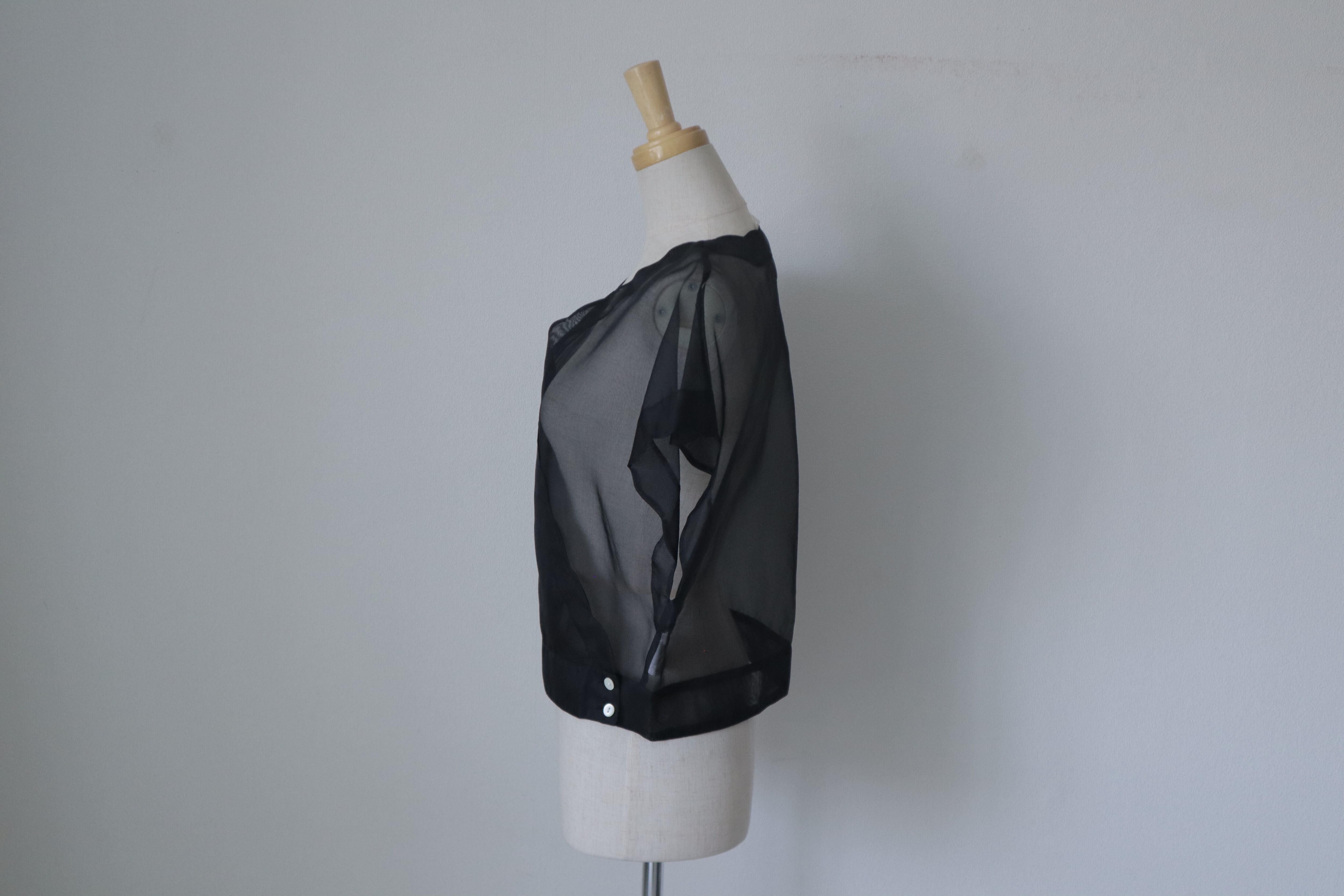 軽やかなシルクオーガンジー素材で作られたカシュクールブラウスです。