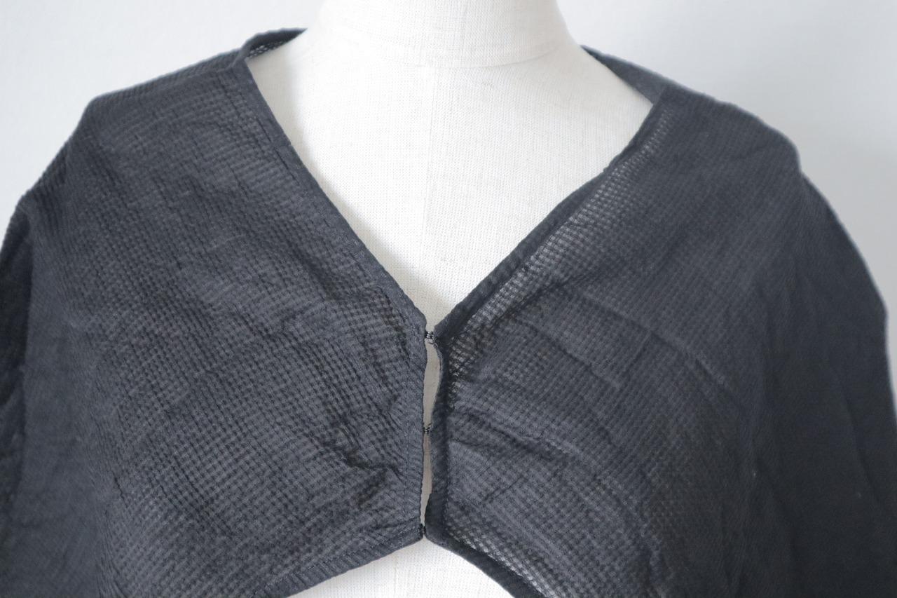 前の襟元は鍵ホックで固定され、肩から腕部分が