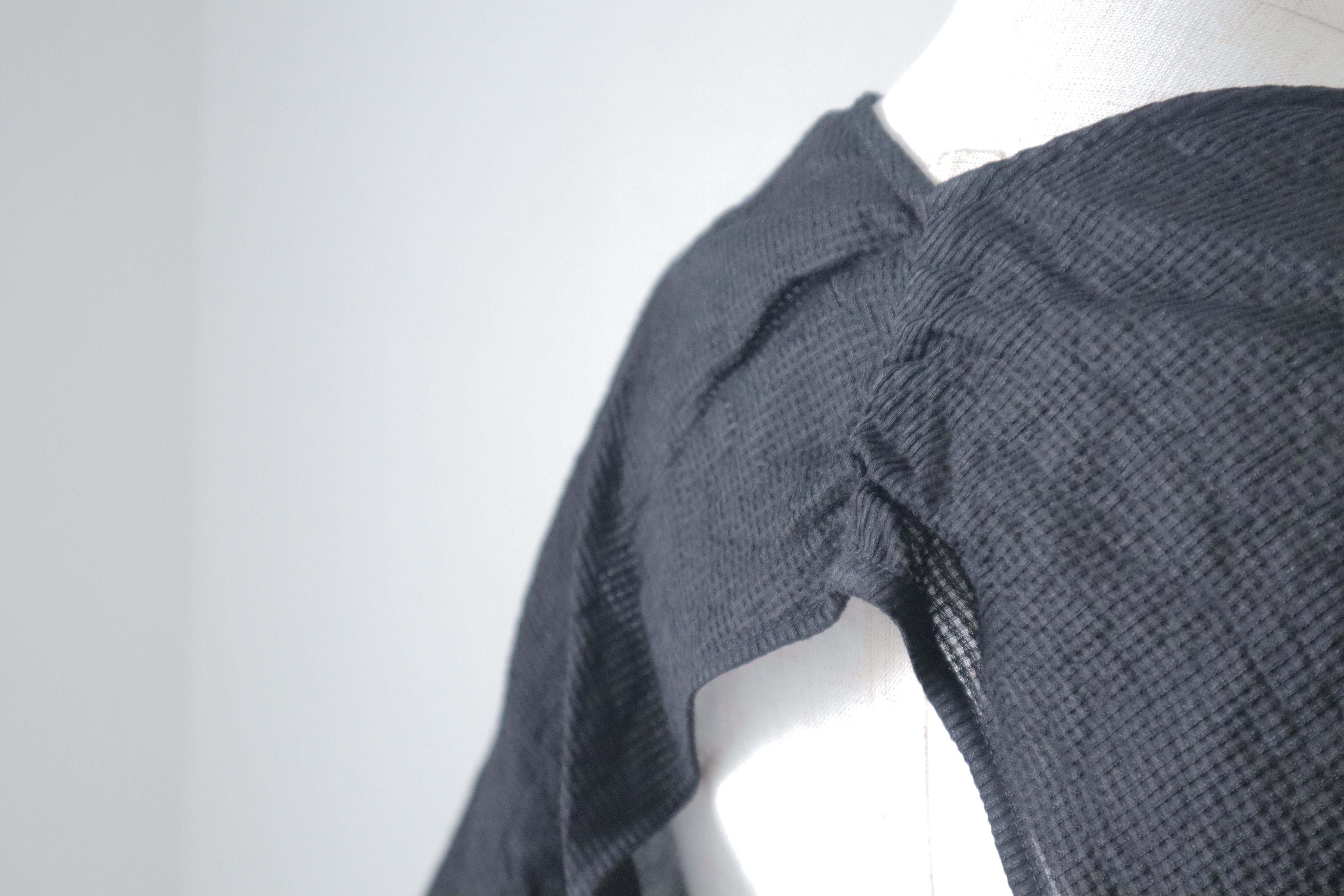 お袖になっています。ノースリーヴやTシャツに合わせても素敵。SHADING CHECK NO SLEEVE DRESSと是非合わせてみてくださいね。