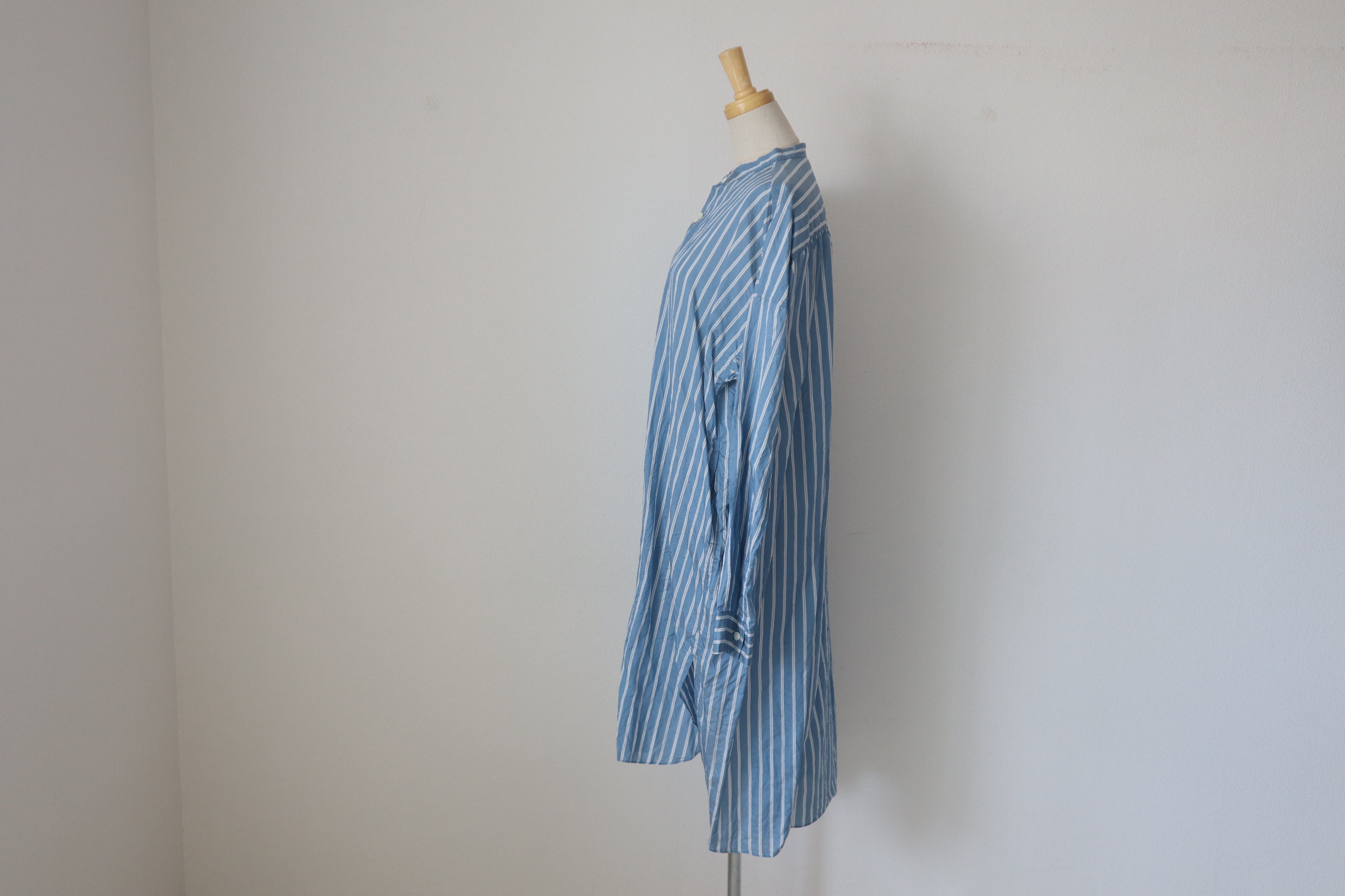 STAND COLLAR SHIRTは、シルク100%の美しいストライプが特徴のスタンドカラーシャツです。