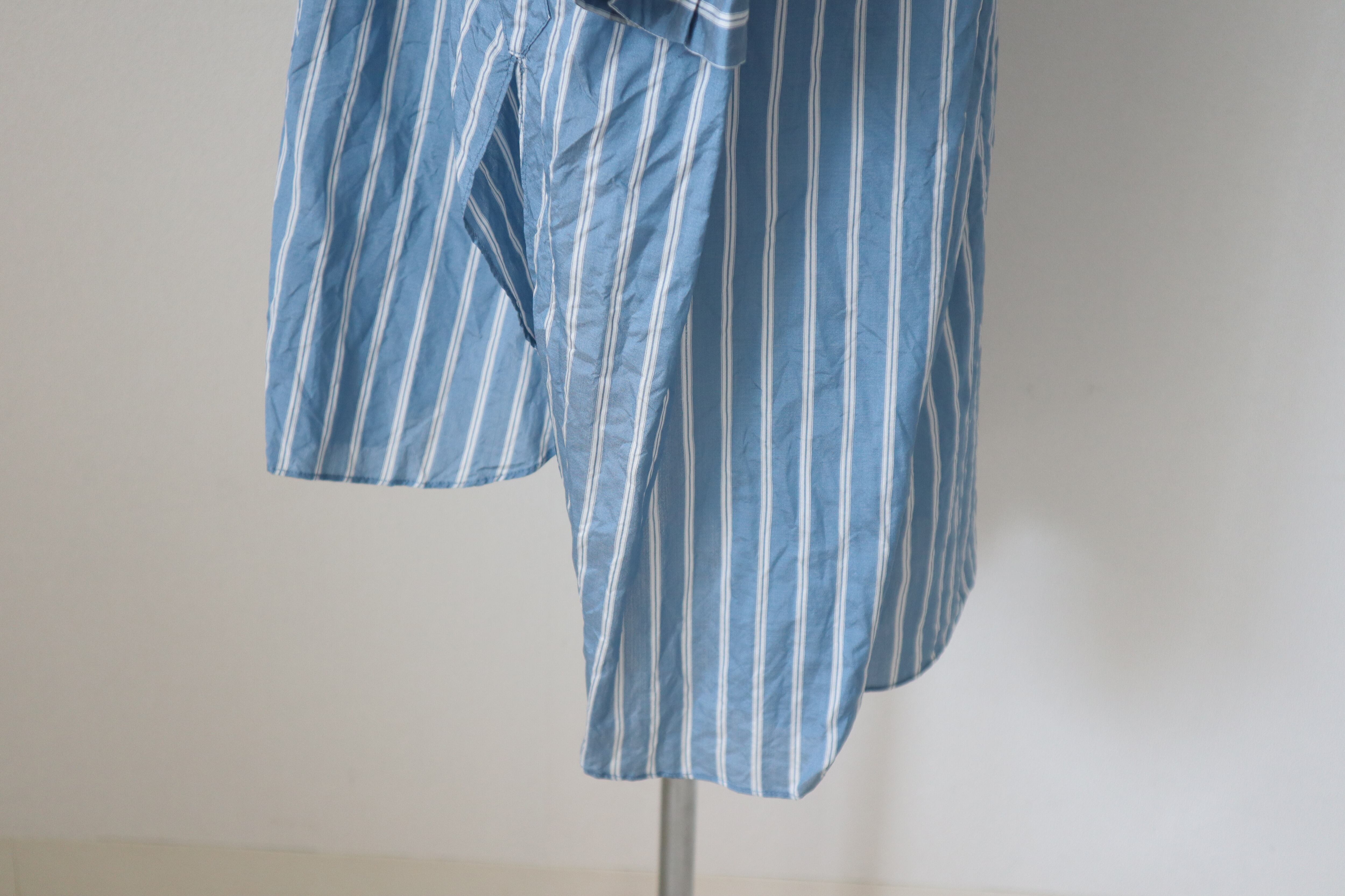前身頃と後ろ身頃の丈が違いサラッと一枚でサマになるシャツです。ホームクリーニングが可能なのも嬉しい。