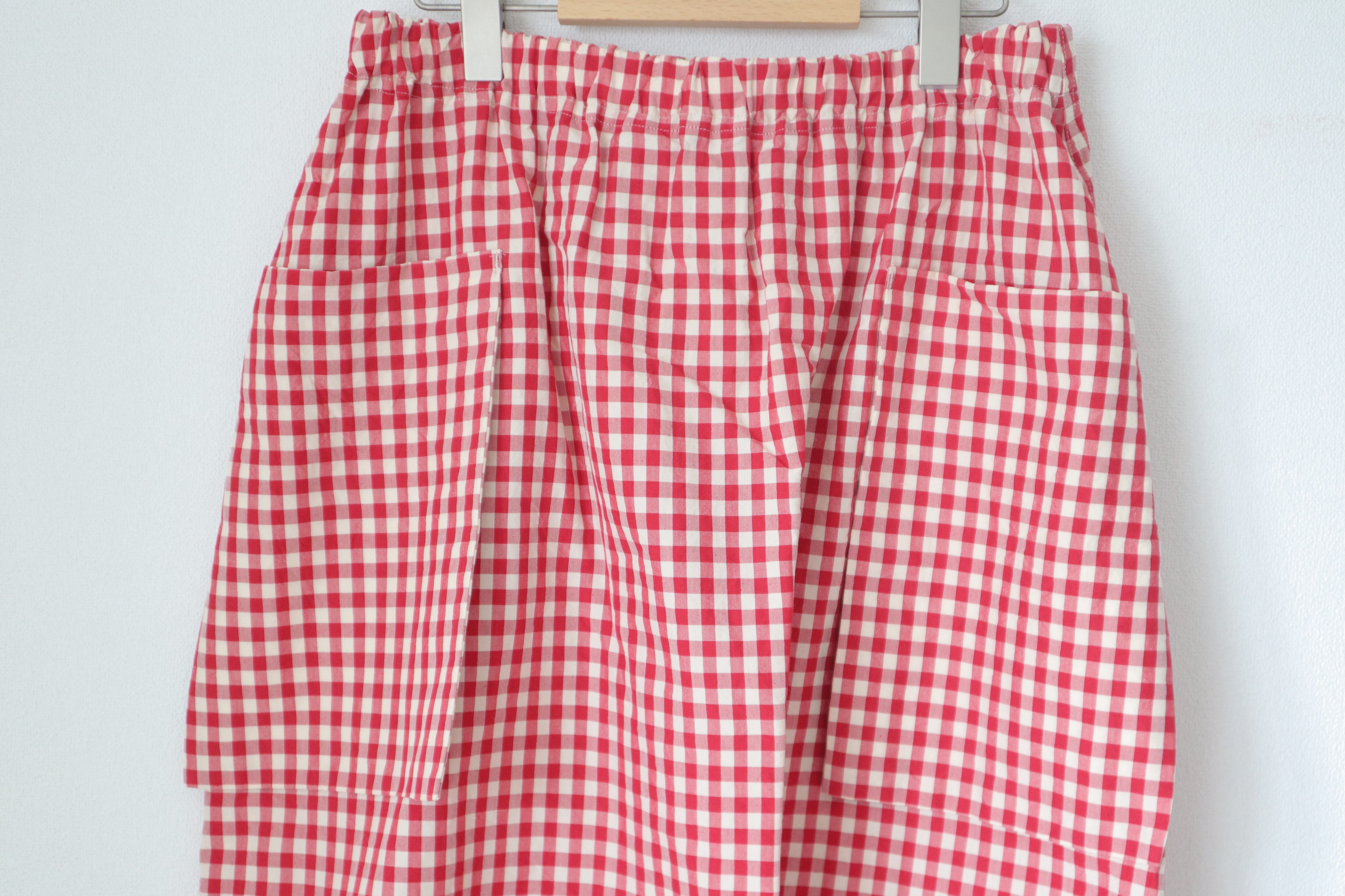 両サイドのポケットがポイントでコットンリネン素材でシルク入って程よい布地のハリ感が綺麗なスカートです。