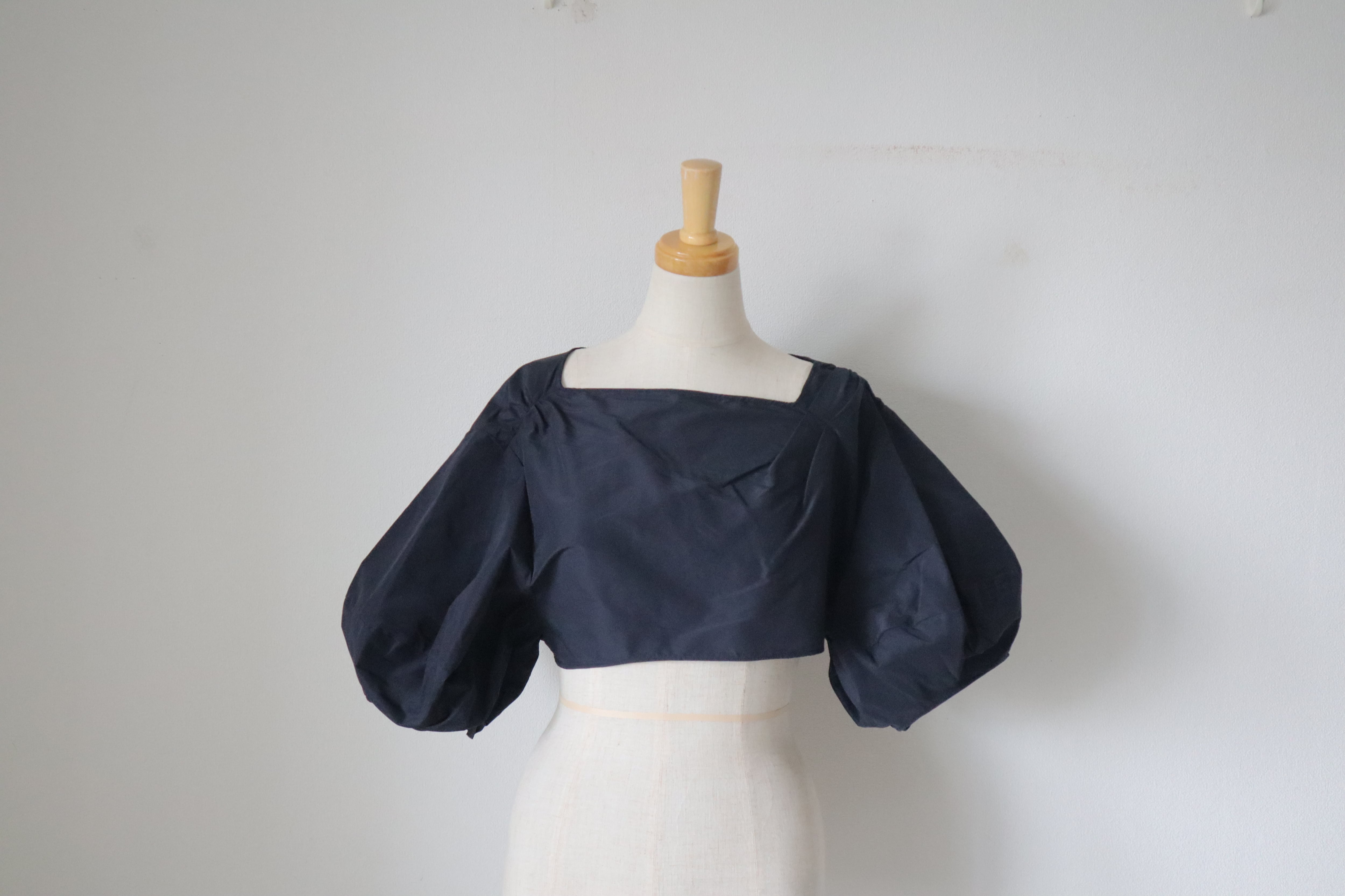 コットンとポリエステルのタフタ素材で仕立てられたボレロです。Tシャツや秋冬はニットに合わせて楽しめます。