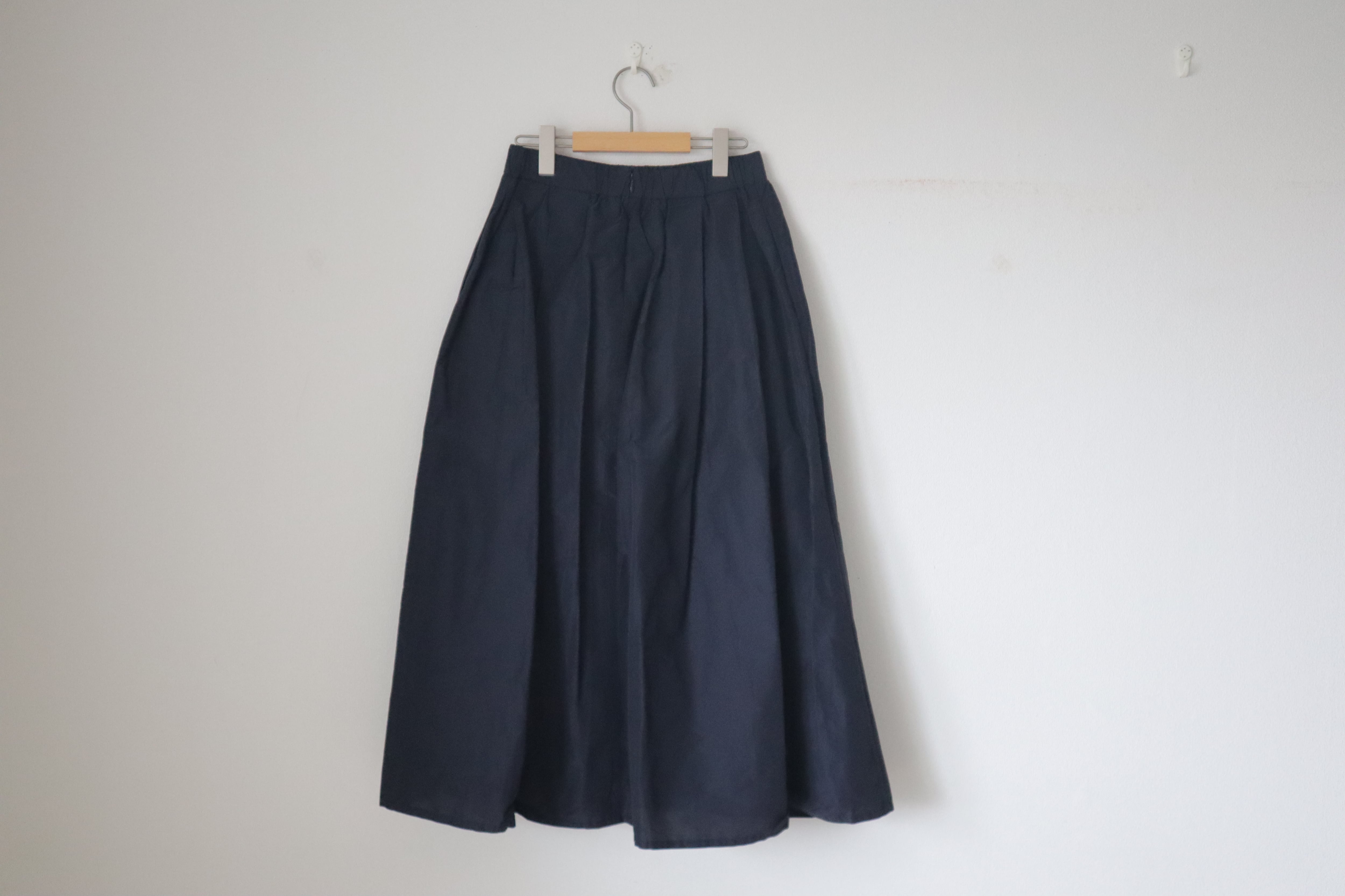 C/PE T TUCK LONG SKIRTは、コットンとポリエステルのタフタ素材で仕立てられたエレガントなロングスカートです。