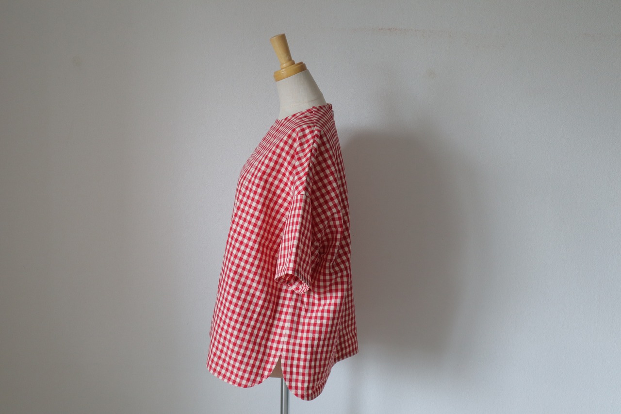 GINGHAM CHECK PULLOVER SHIRTは、コットン、リネン、シルクの混紡素材を使用したギンガムチェックのプルオーバーシャツです。