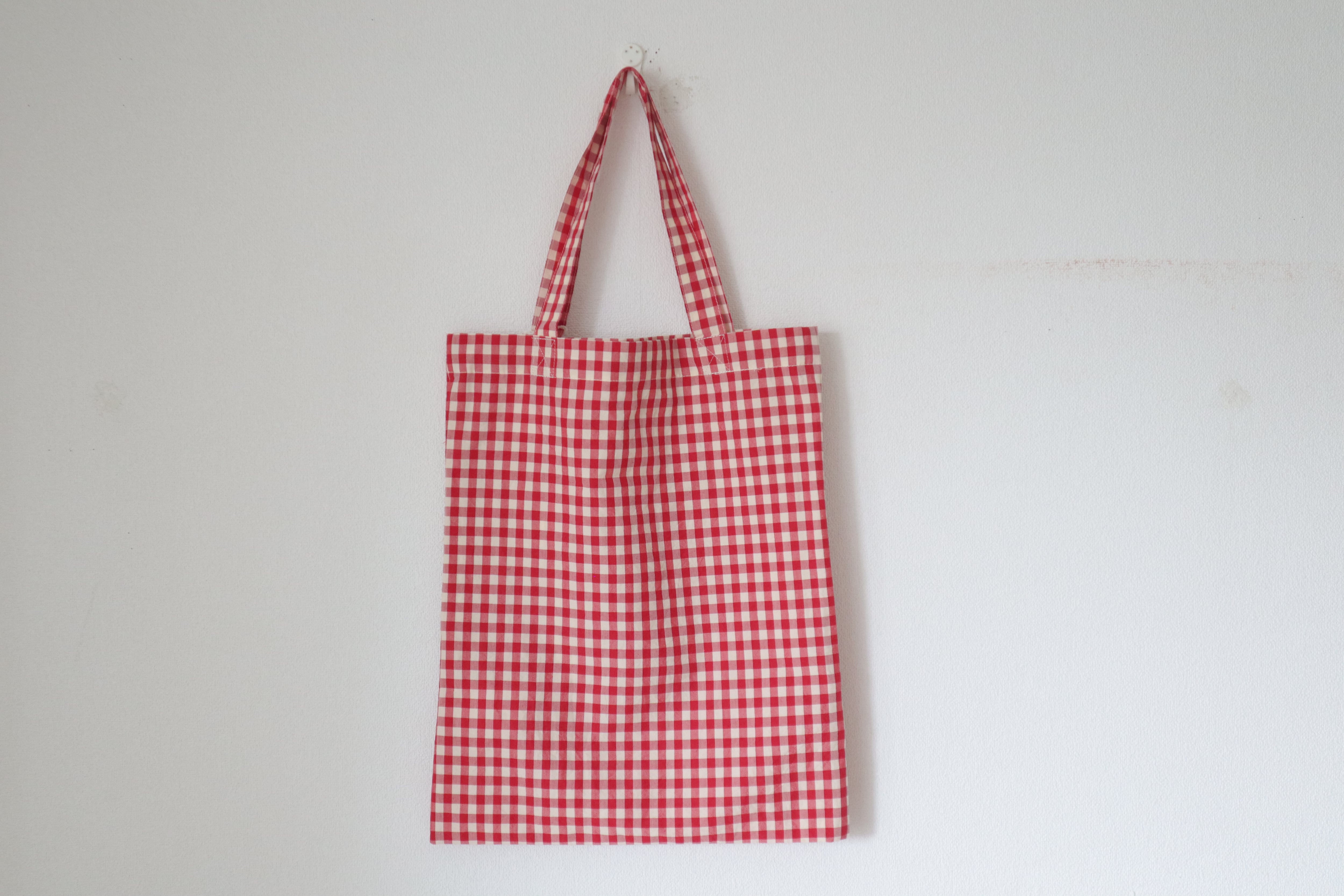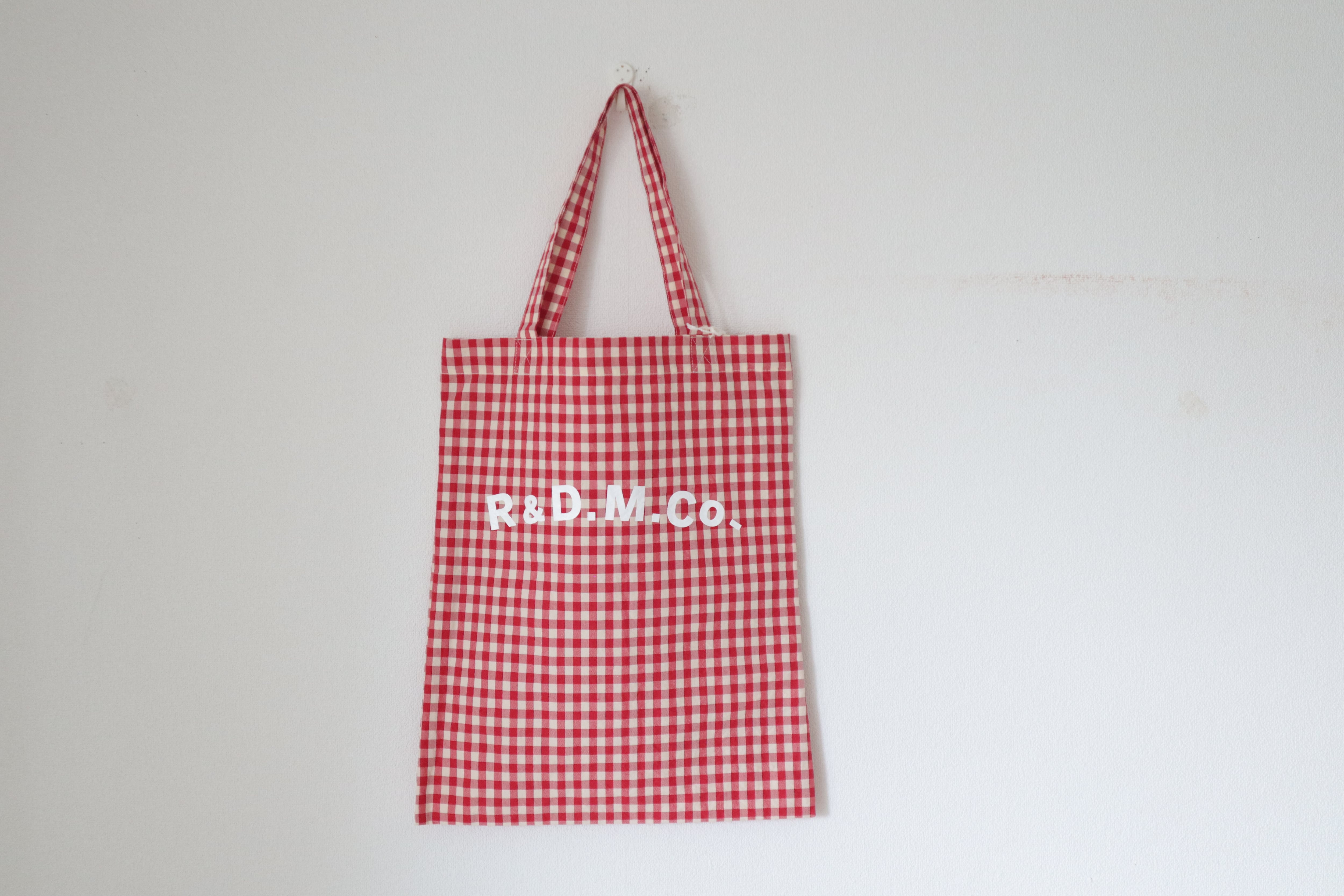 GINGHAM CHECK TOTE BAGは、コットン、リネン、シルクの混紡素材を使用した、ギンガムチェックのトートバッグです。ロゴ入りがポイント。