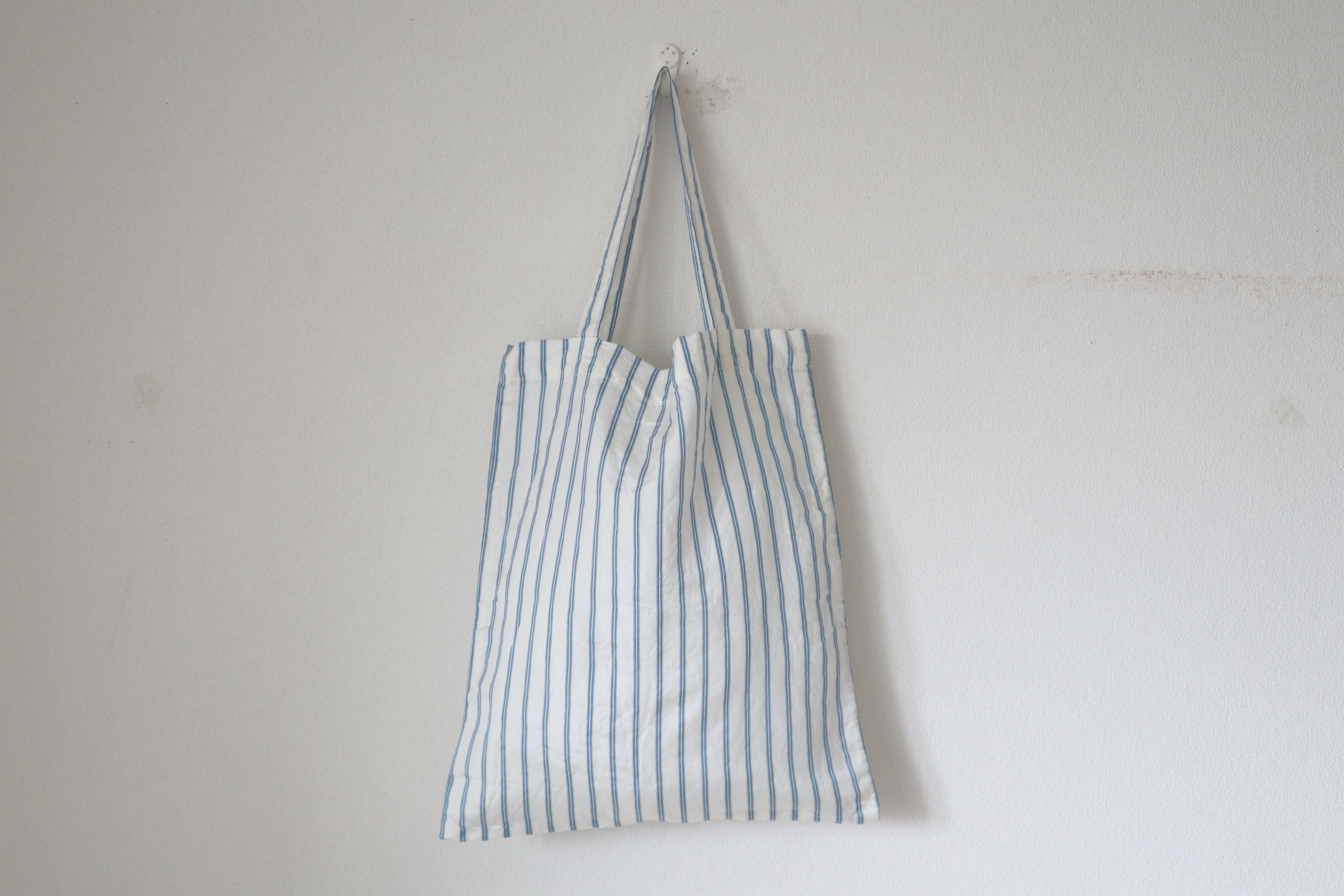 爽やかなブルー地、ホワイト地のストライプがお洒落。裏地も付いてます。