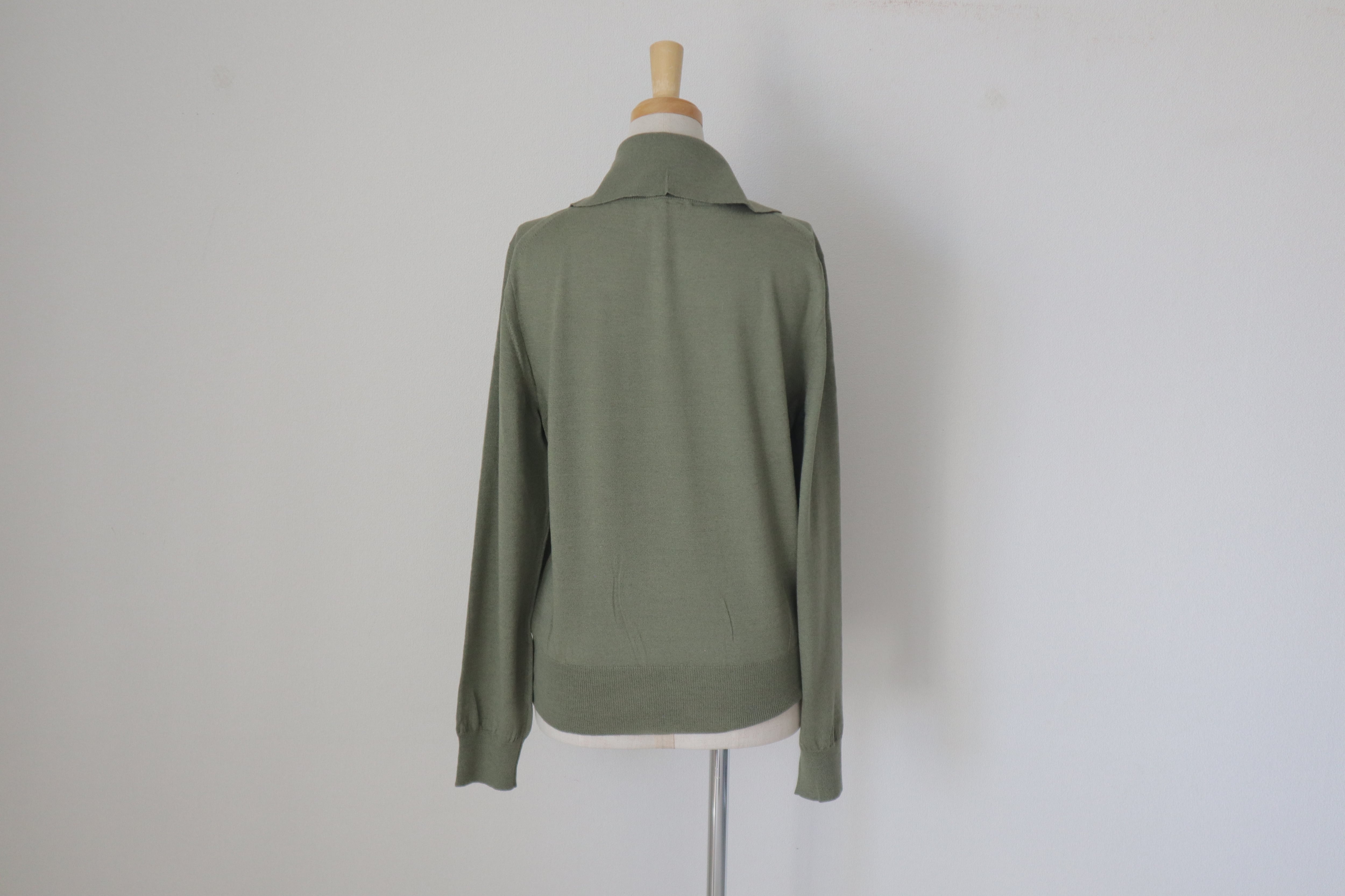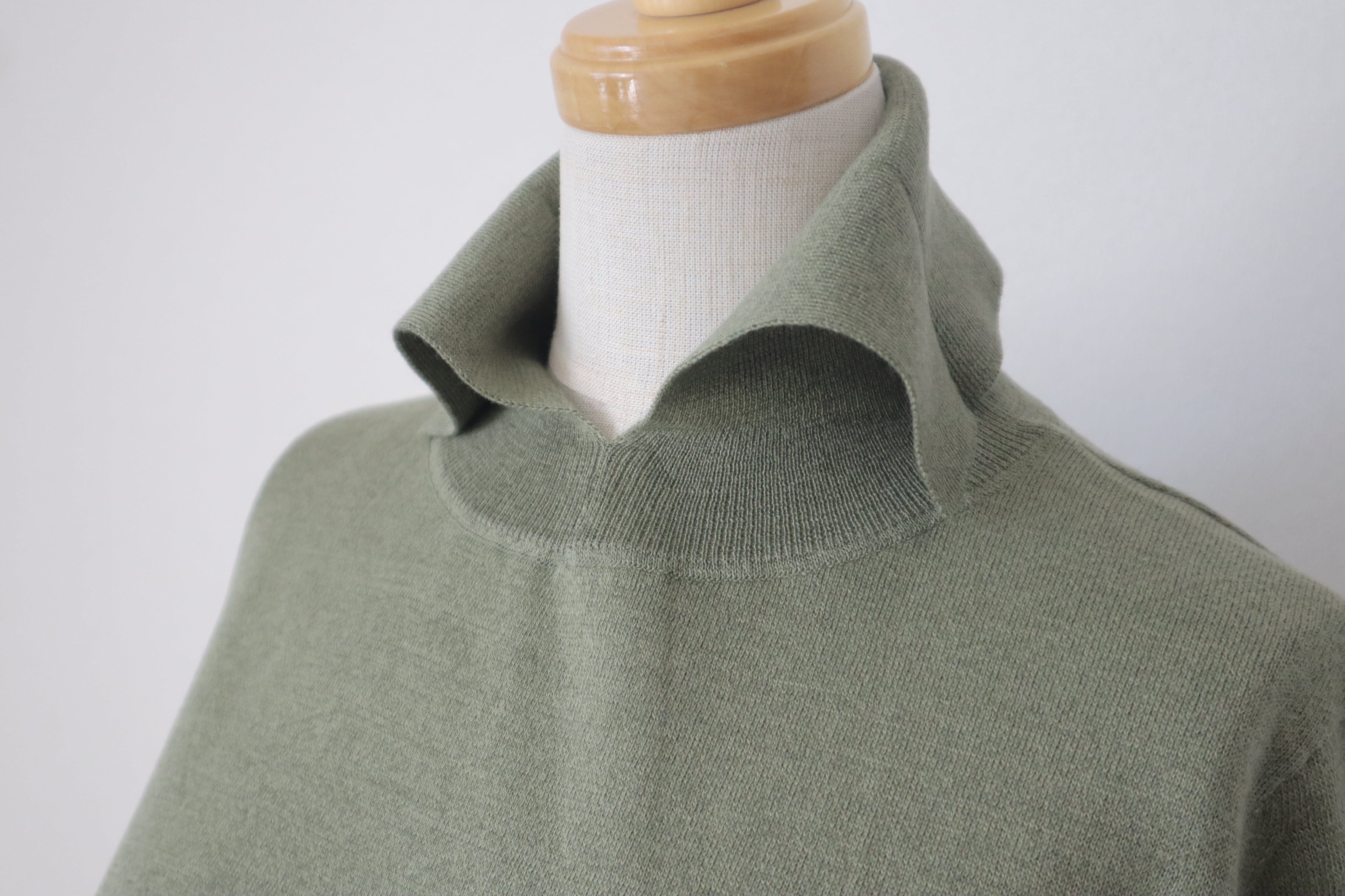 M.W.C HIGH NECK WIDE COLLAR PULLOVERは、ウールとコットンの混紡素材を使用した、薄手のハイネックプルオーバーです。