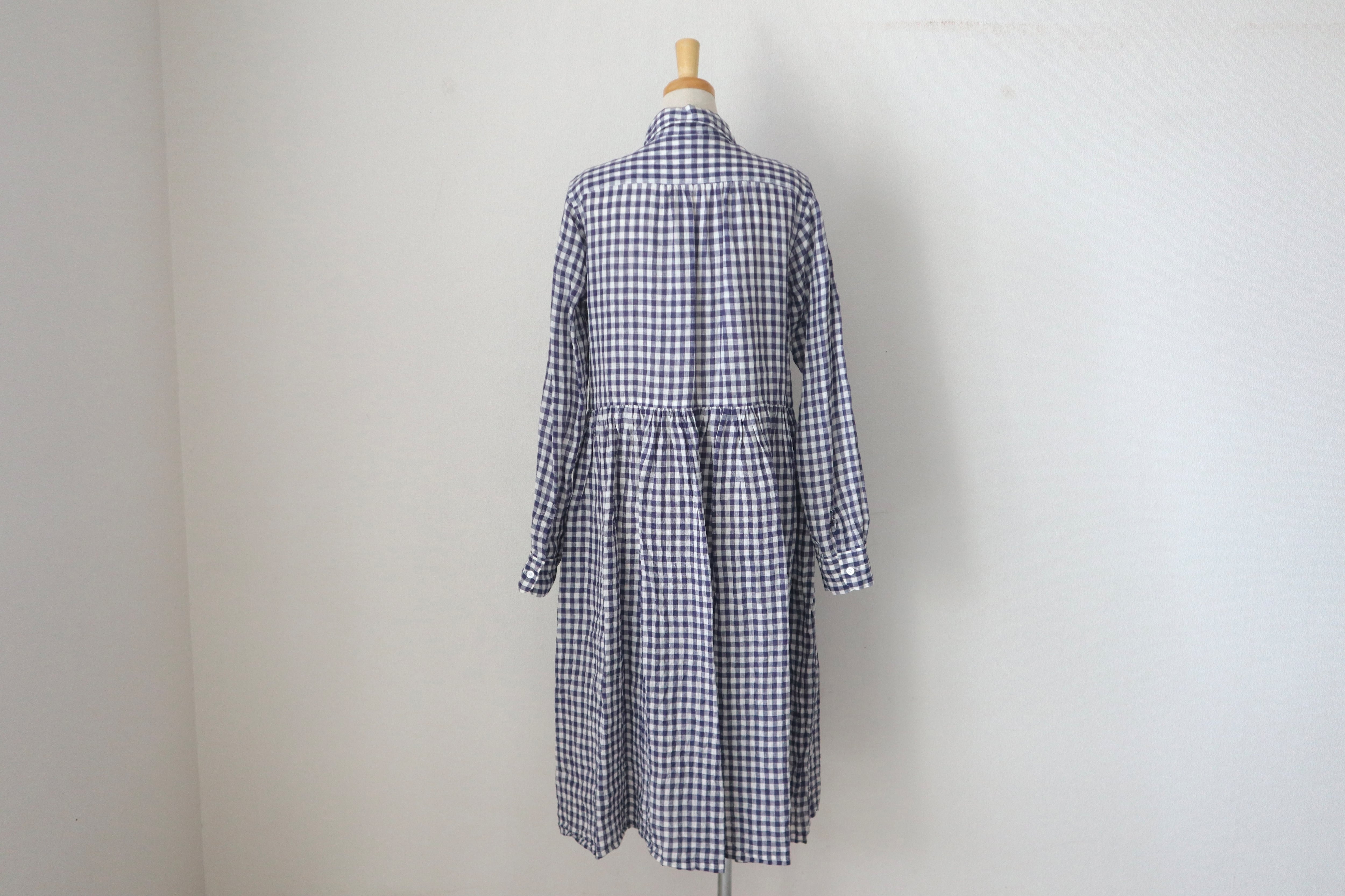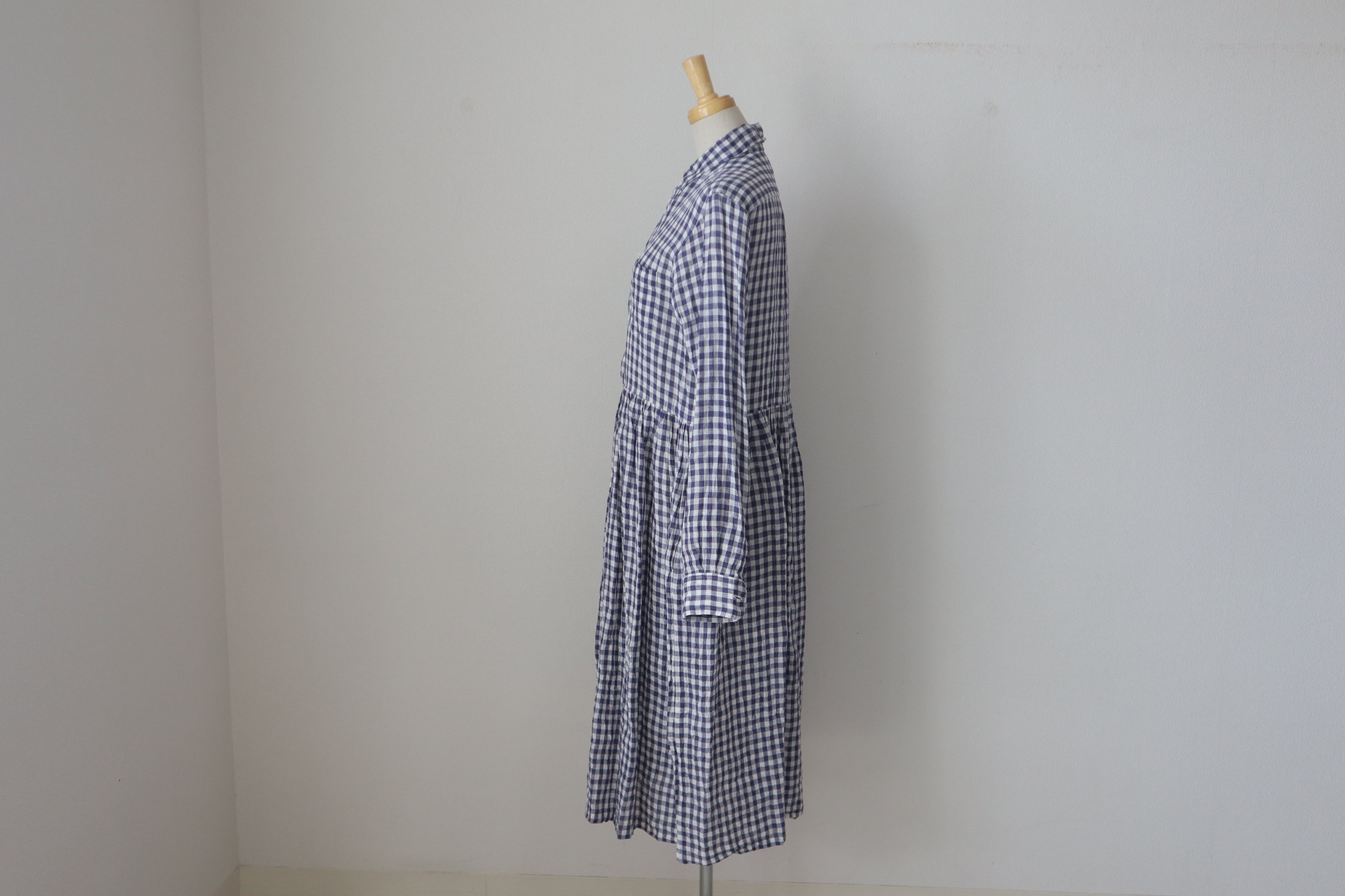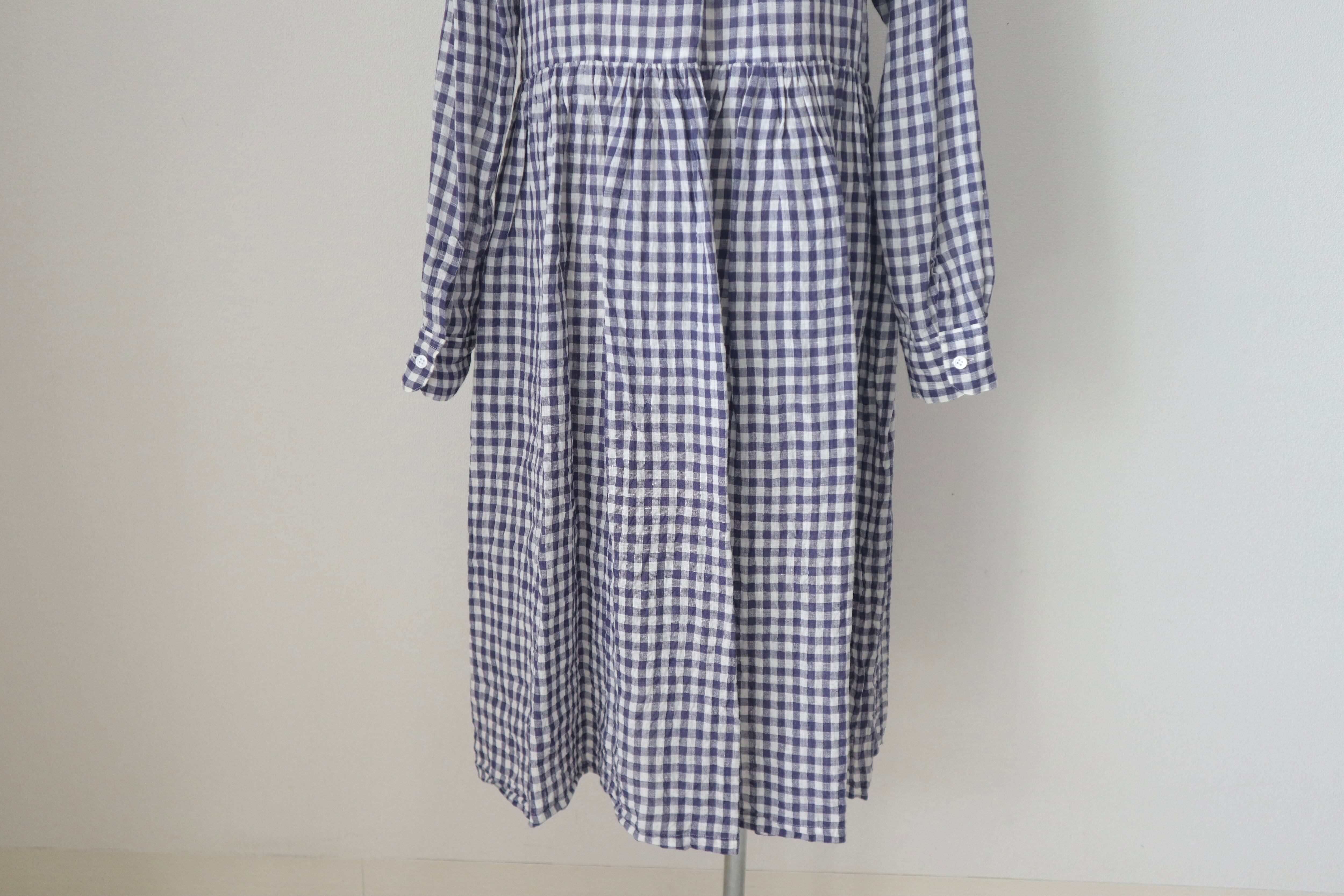 デンスリーガーゼリネン素材のギンガムチェックシャツドレスです。デンスリーガーゼリネン素材は