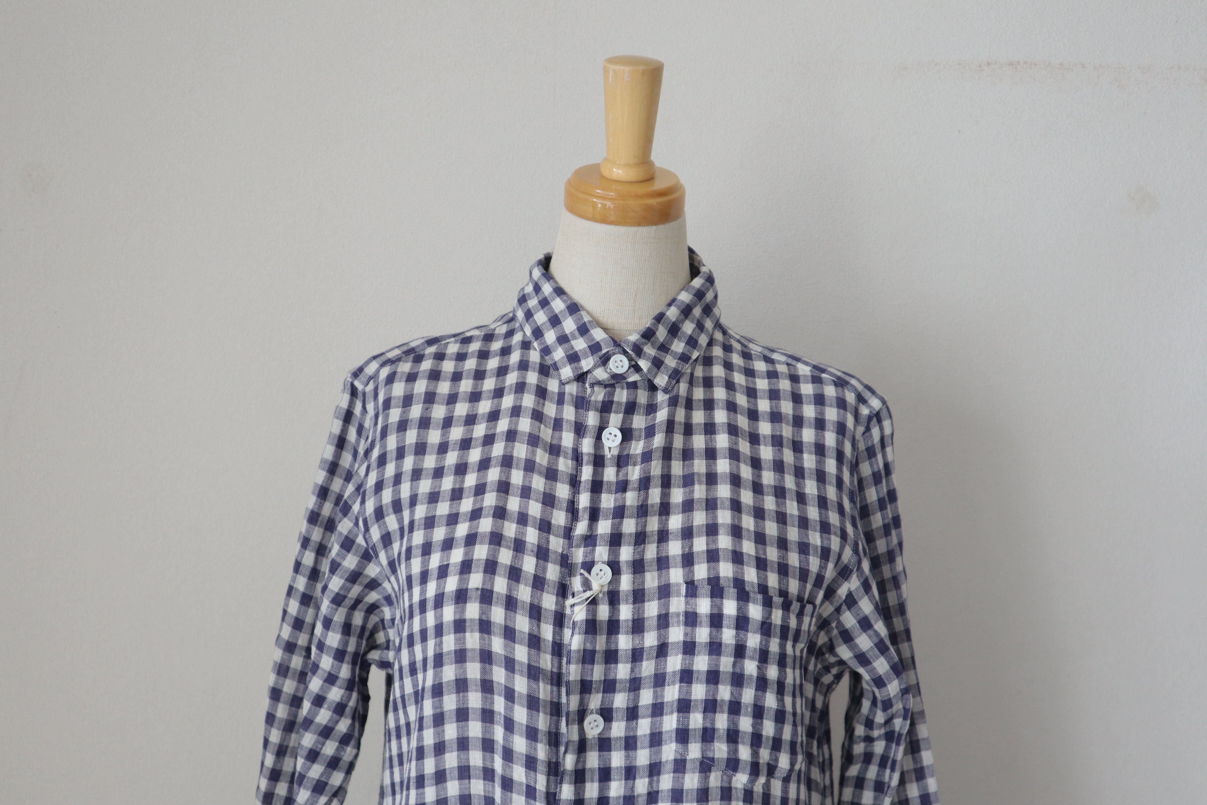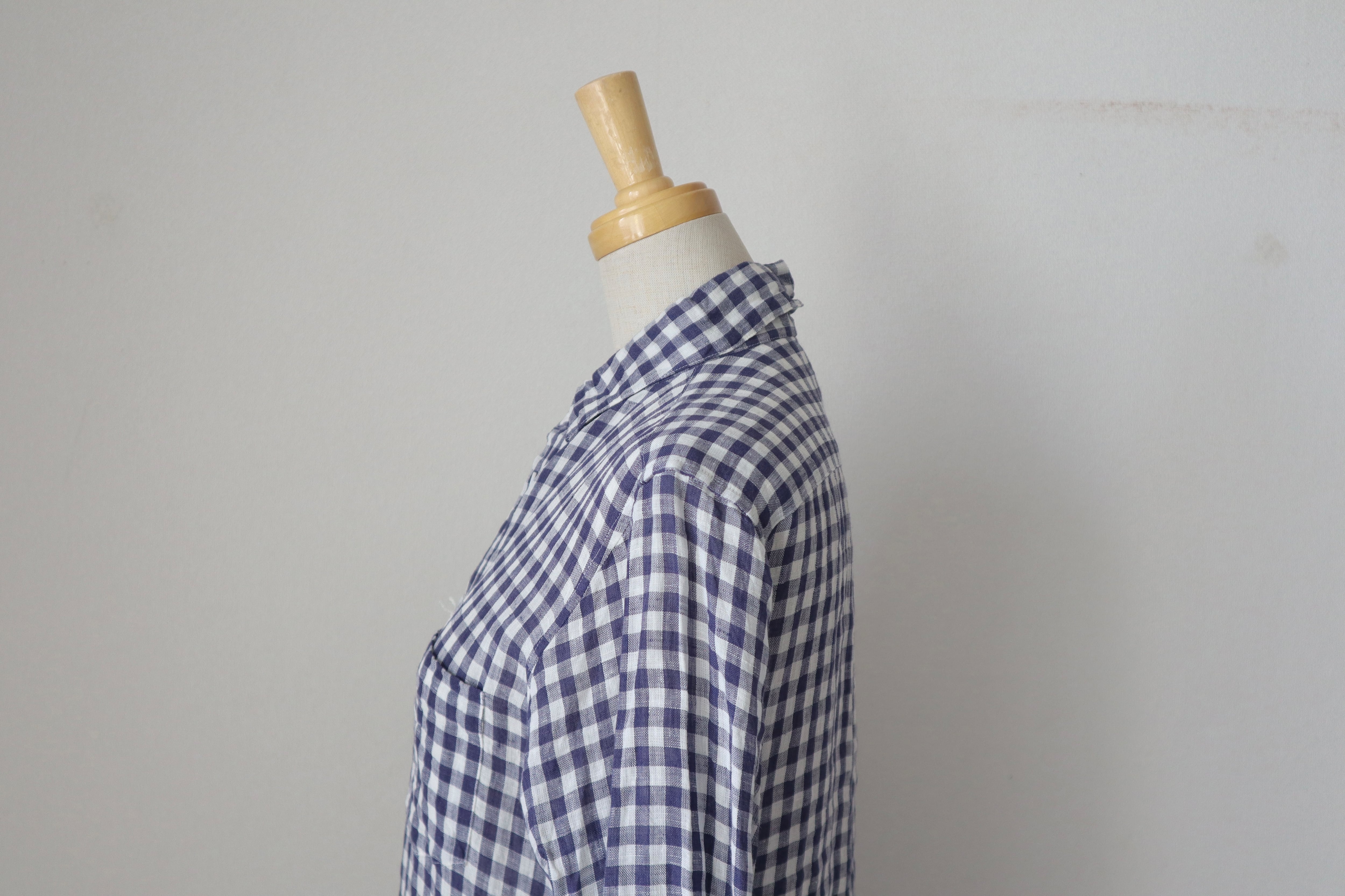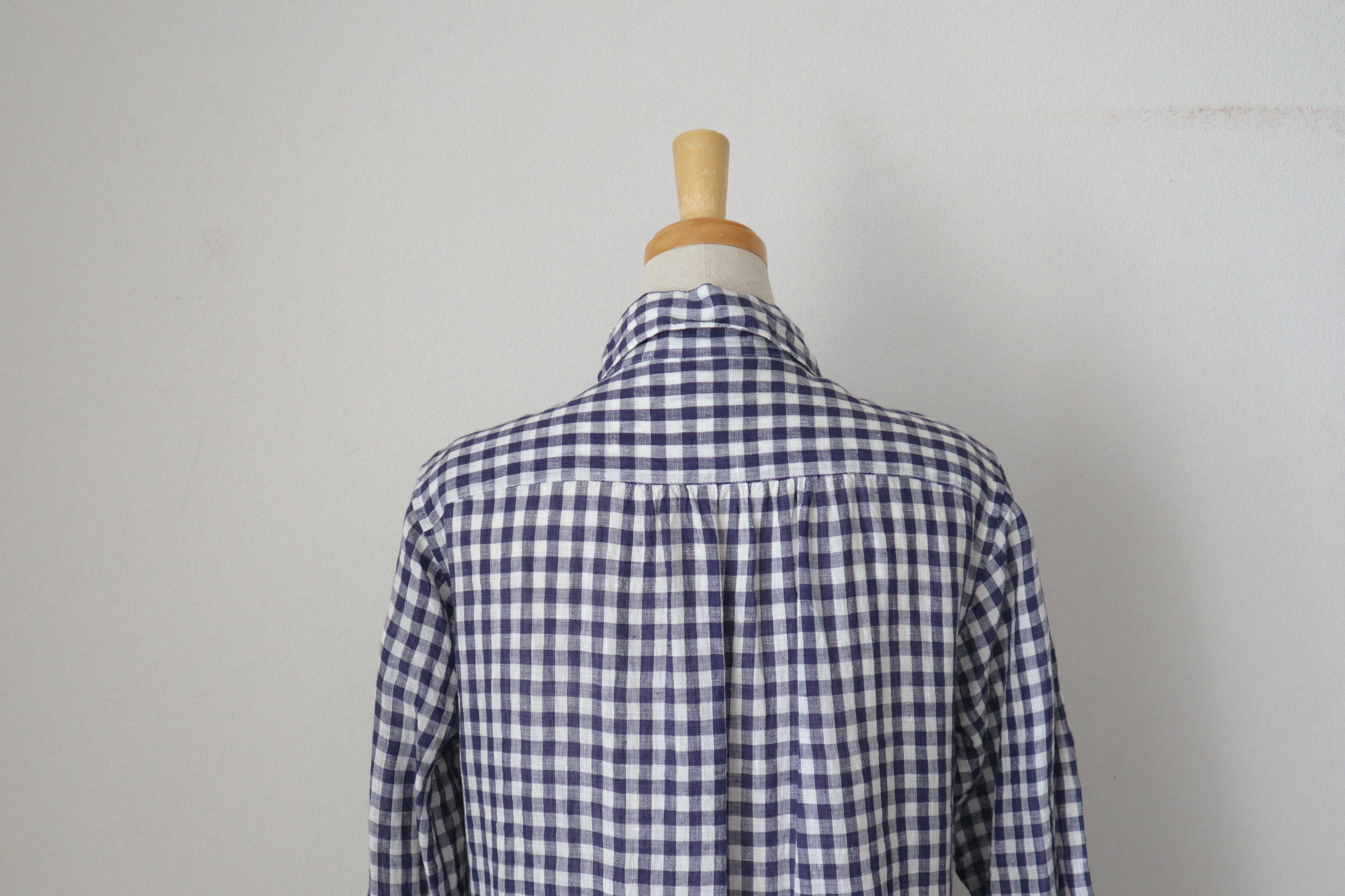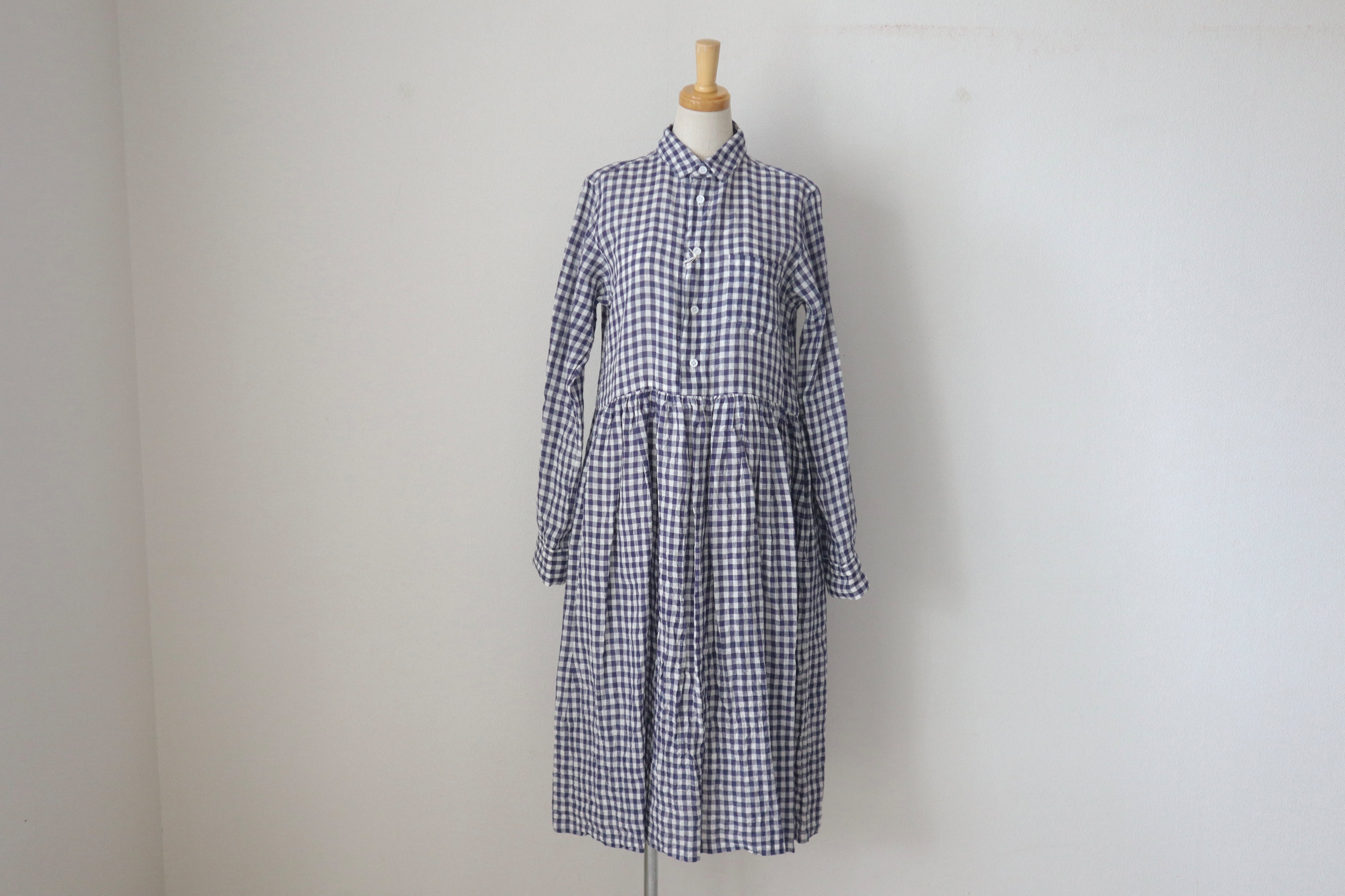 デンスリーガーゼリネン素材のギンガムチェックシャツドレスです。デンスリーガーゼリネン素材は