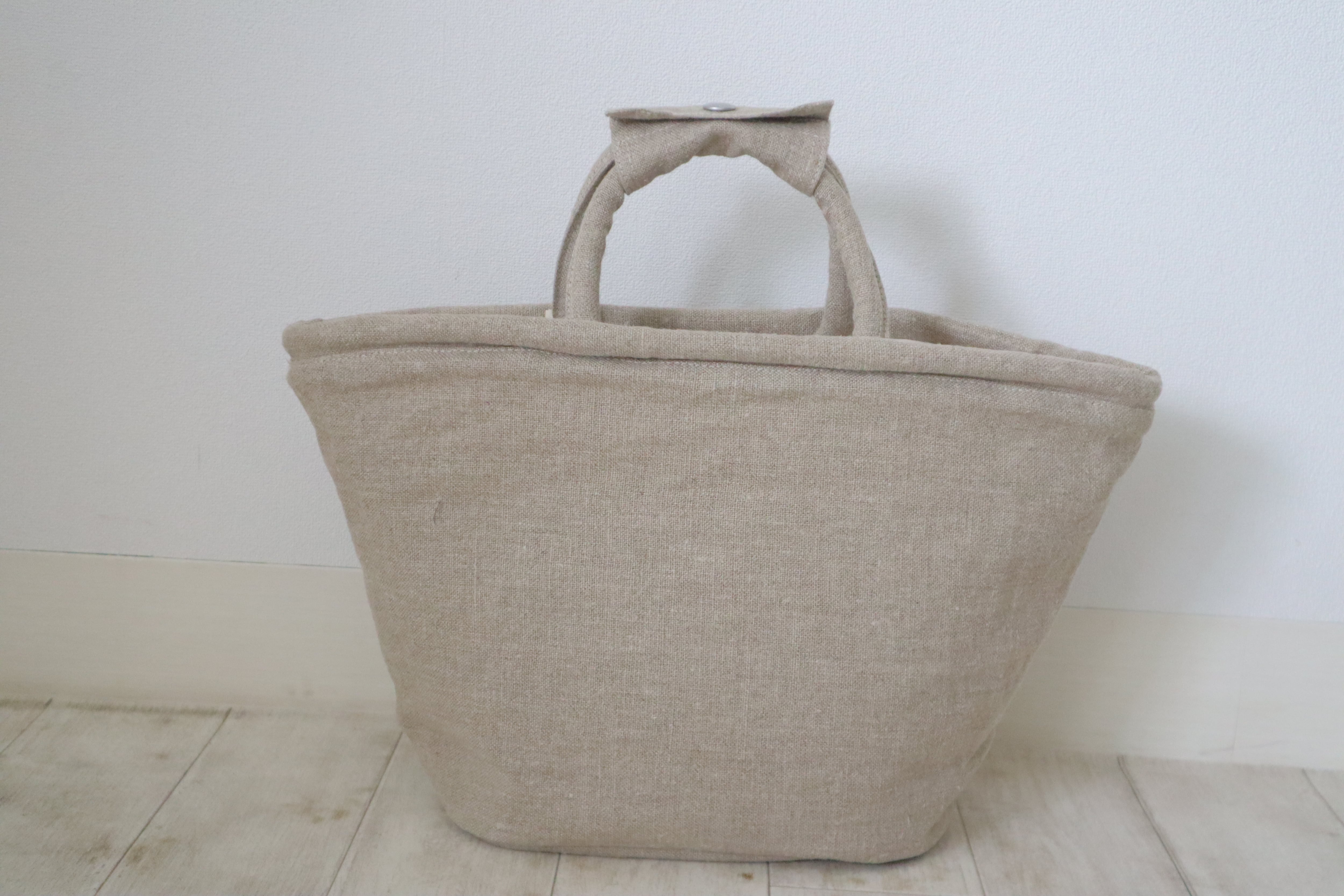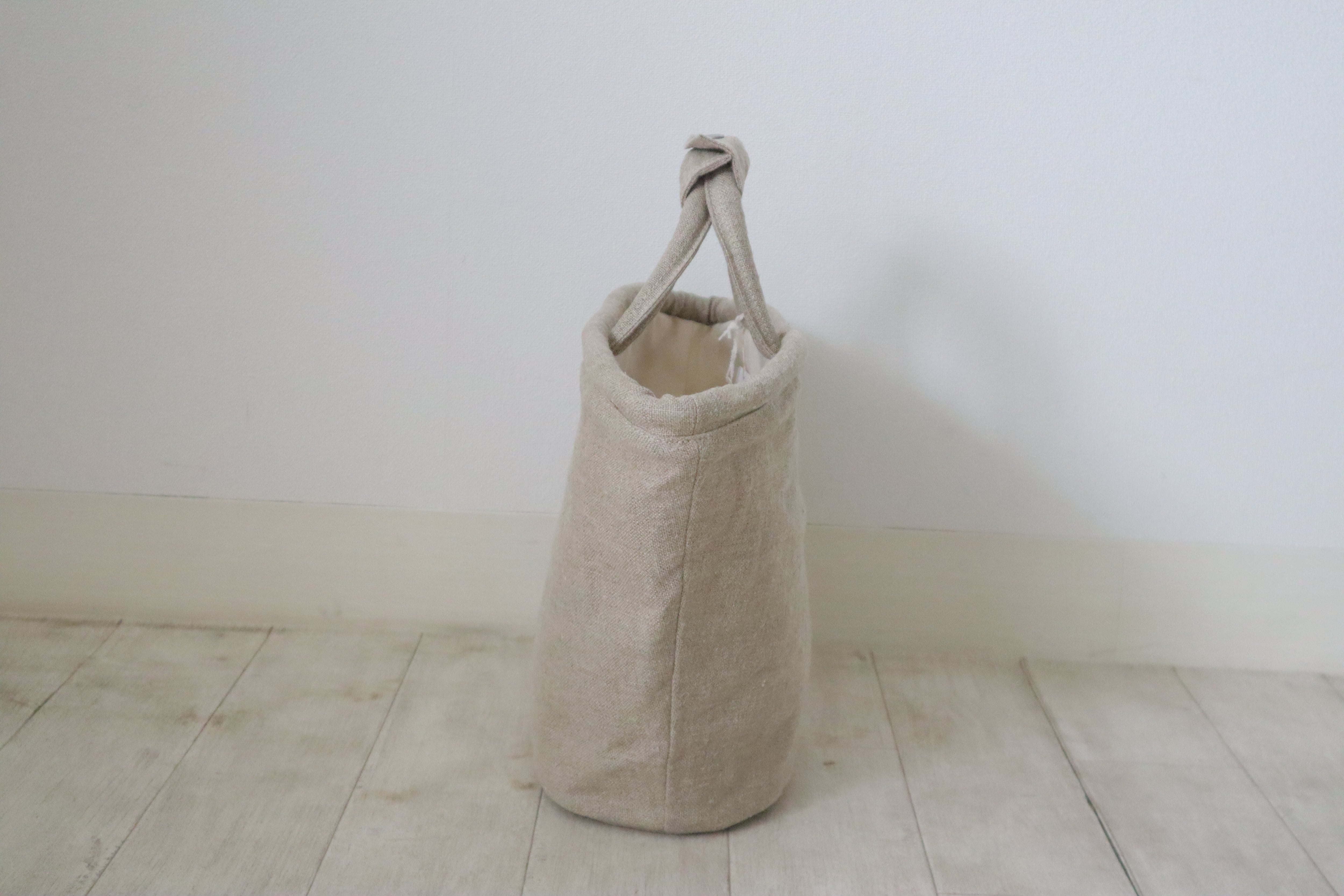 肌触りがふわっとしたリネン素材で、中はコットン素材で中ポケット付きです。