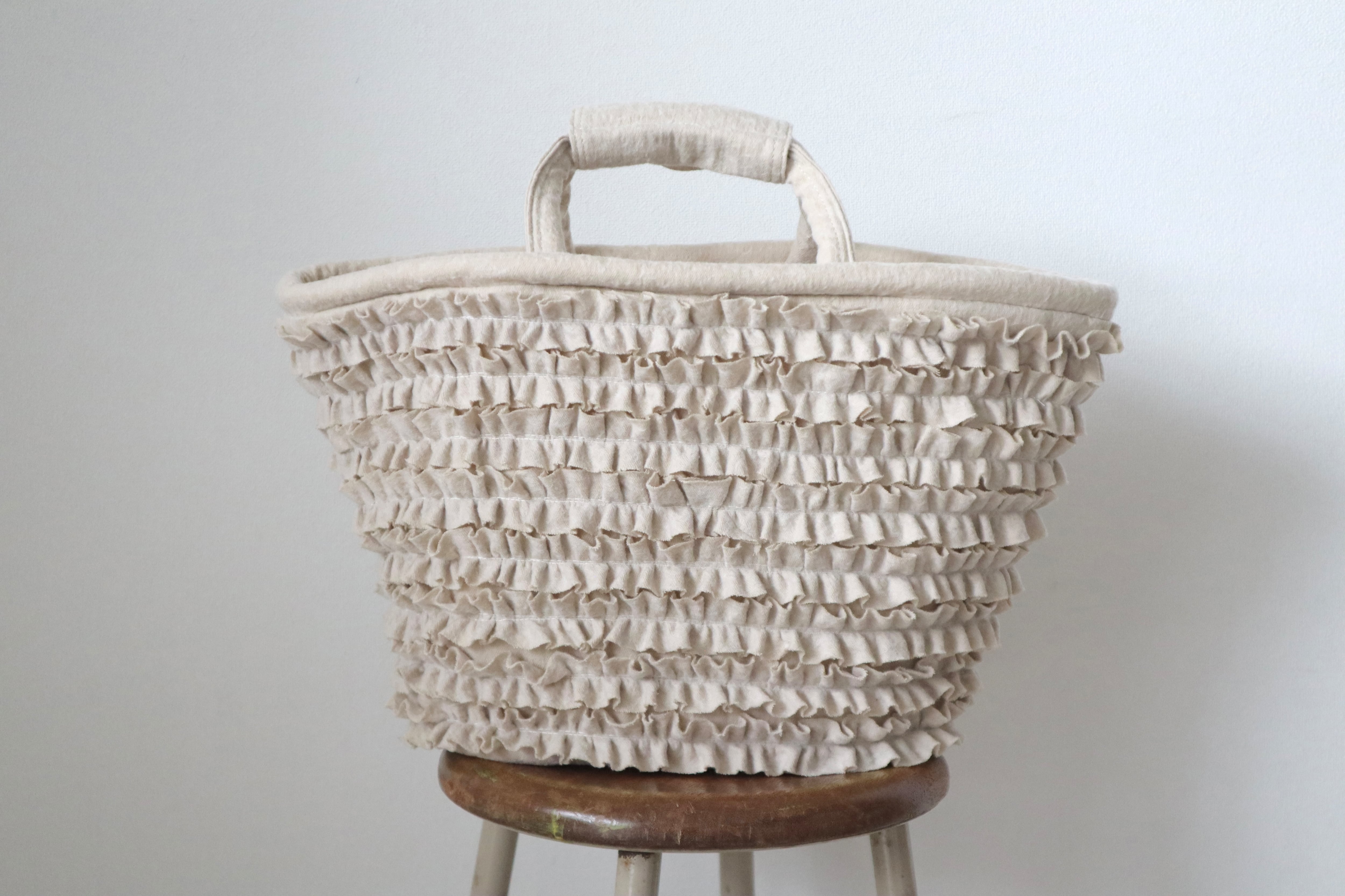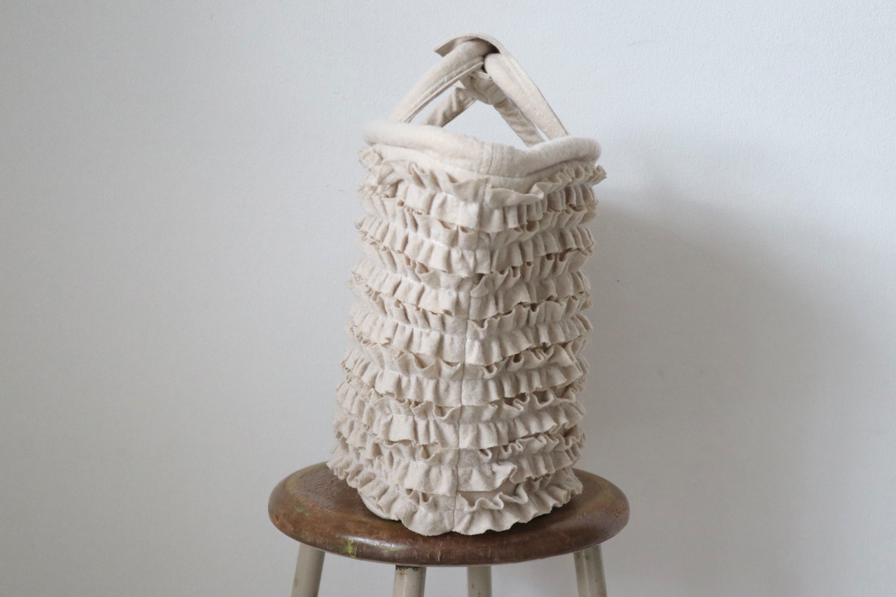フリルがふんだんに使われているマルシェバッグです。