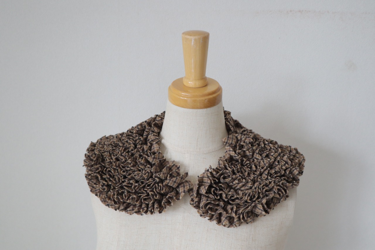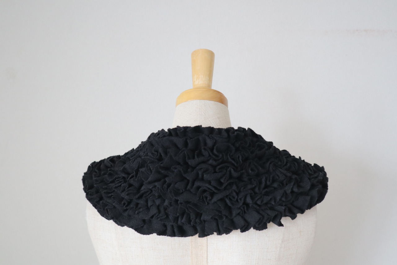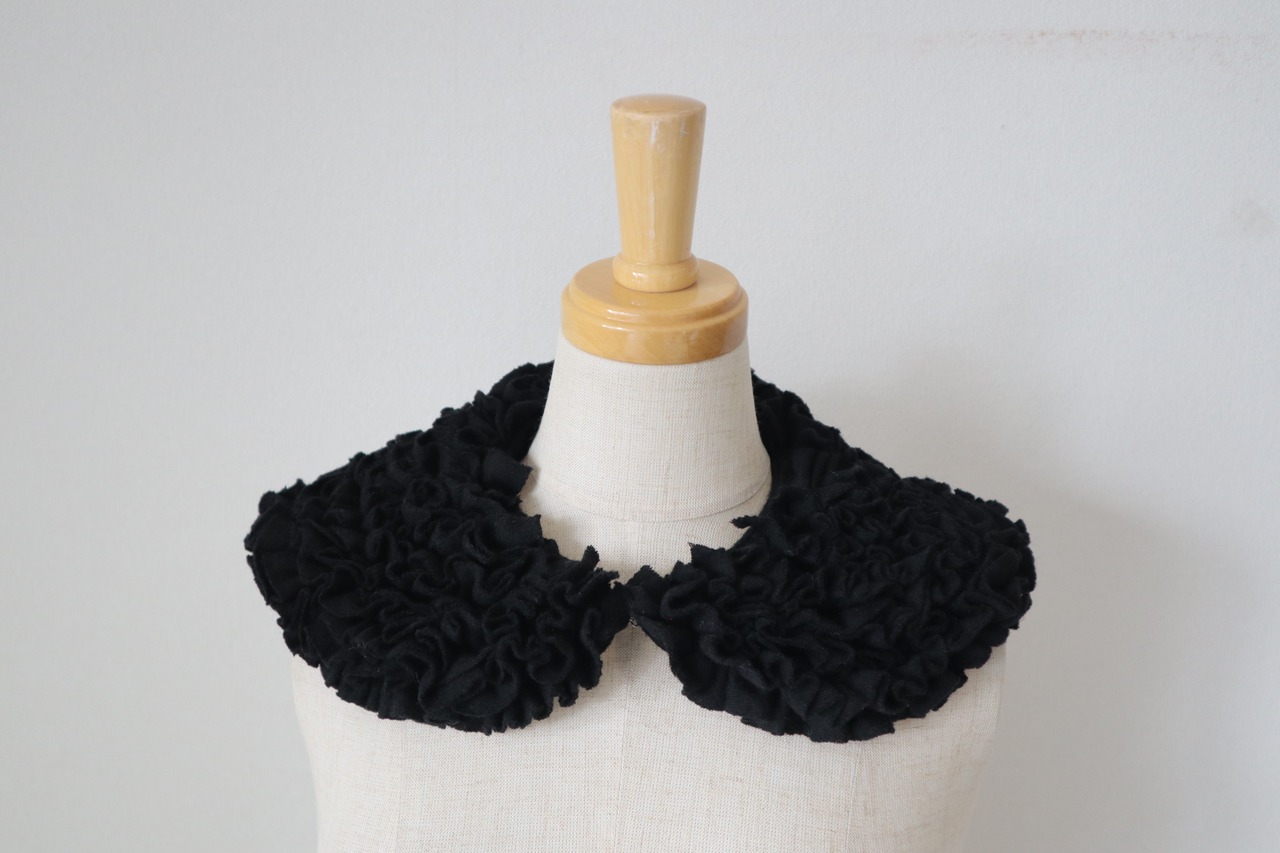 コットンウール素材の肌触りが良い冬用のフリルカラーです。フリルが綺麗に何重にも重なり