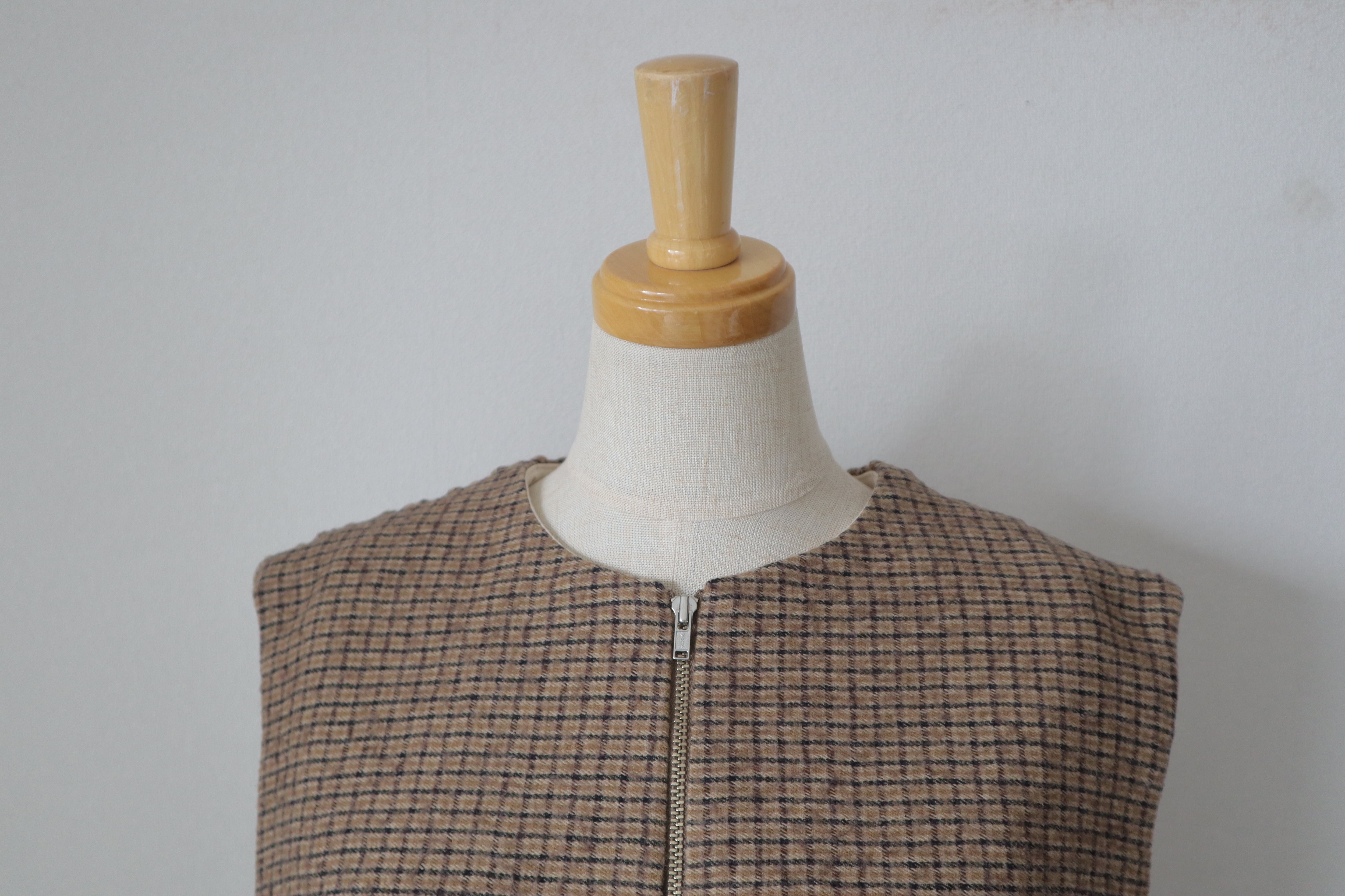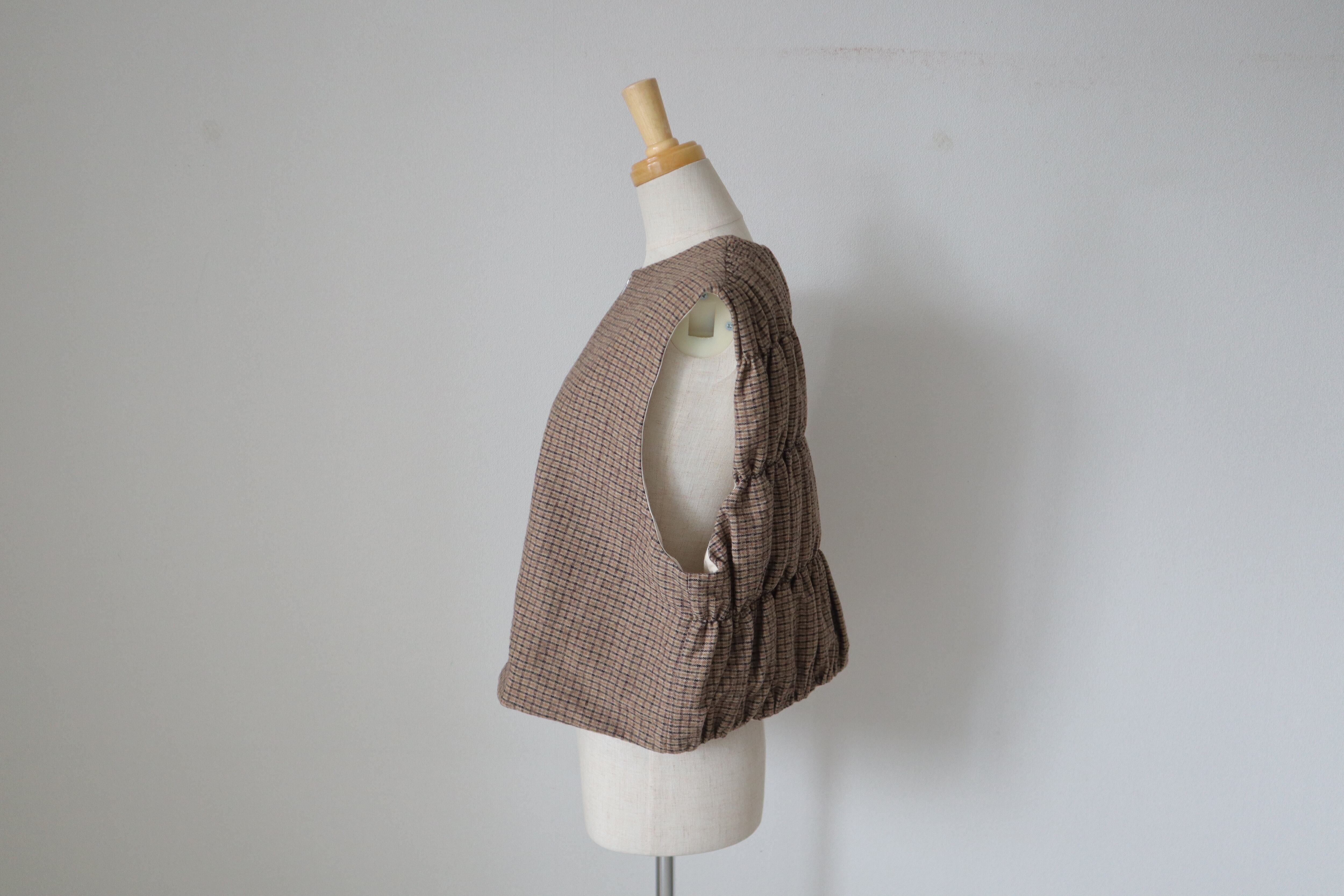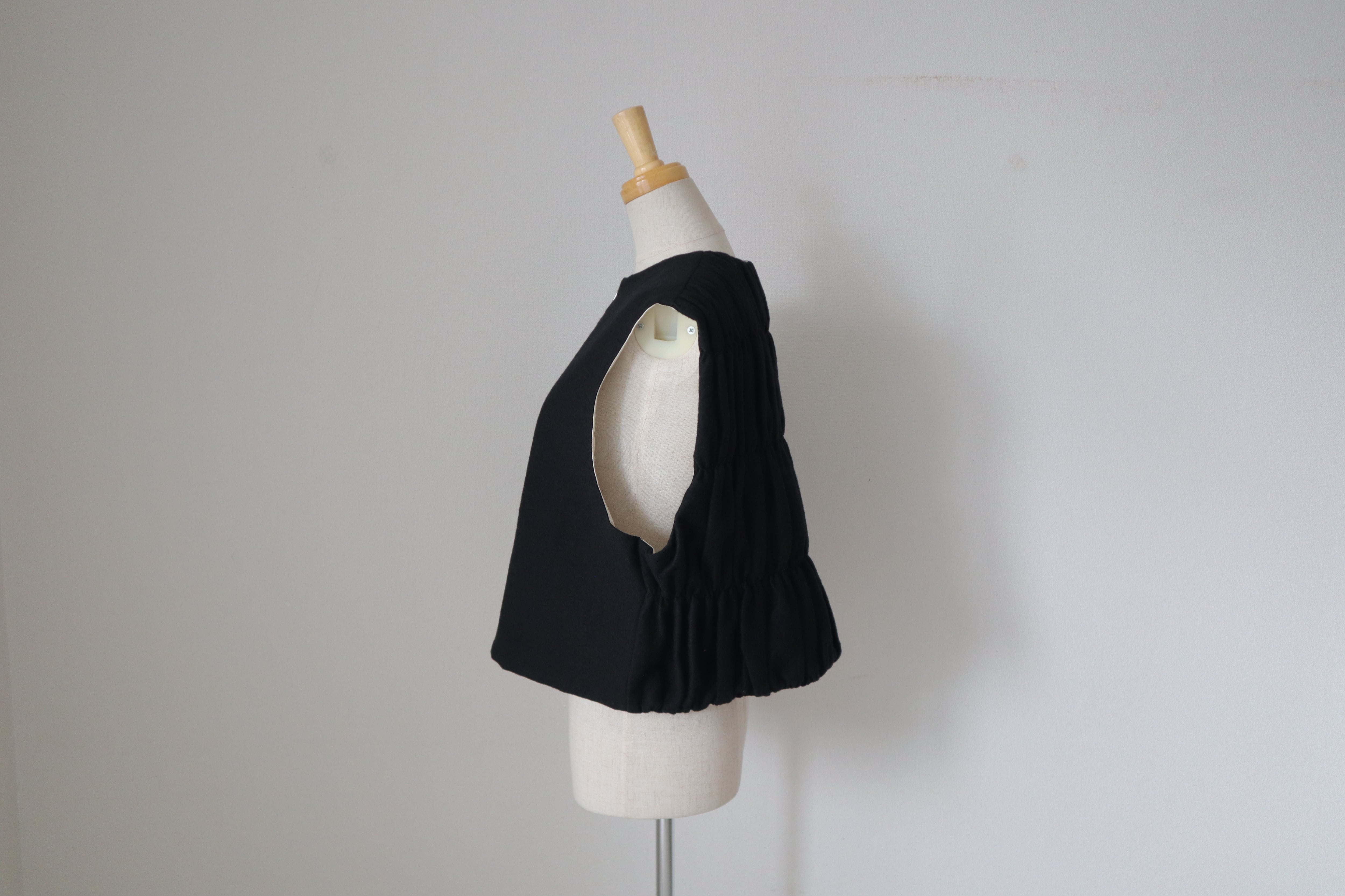 前ファスナー仕様で後ろが綺麗なシャーリングのベストです。