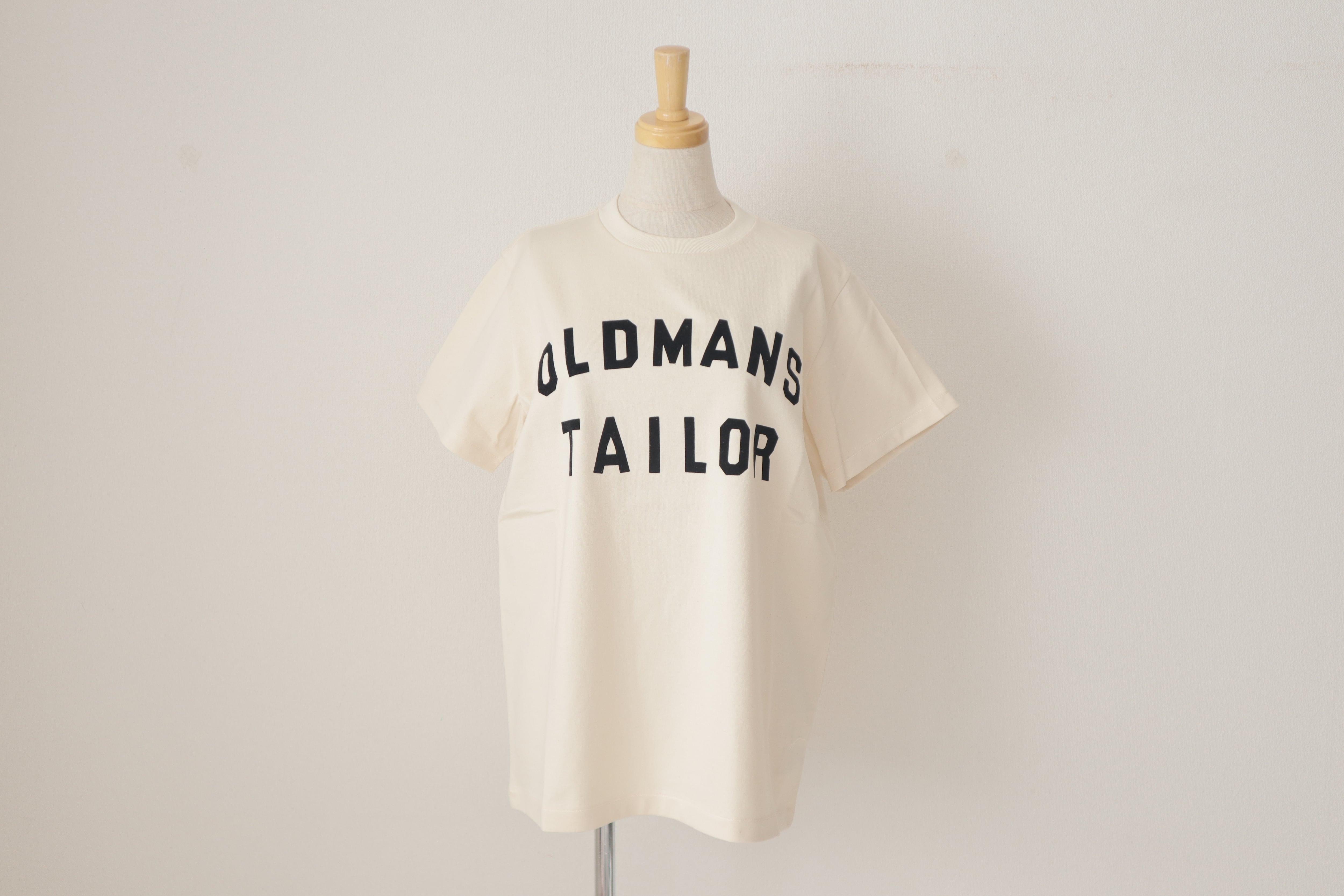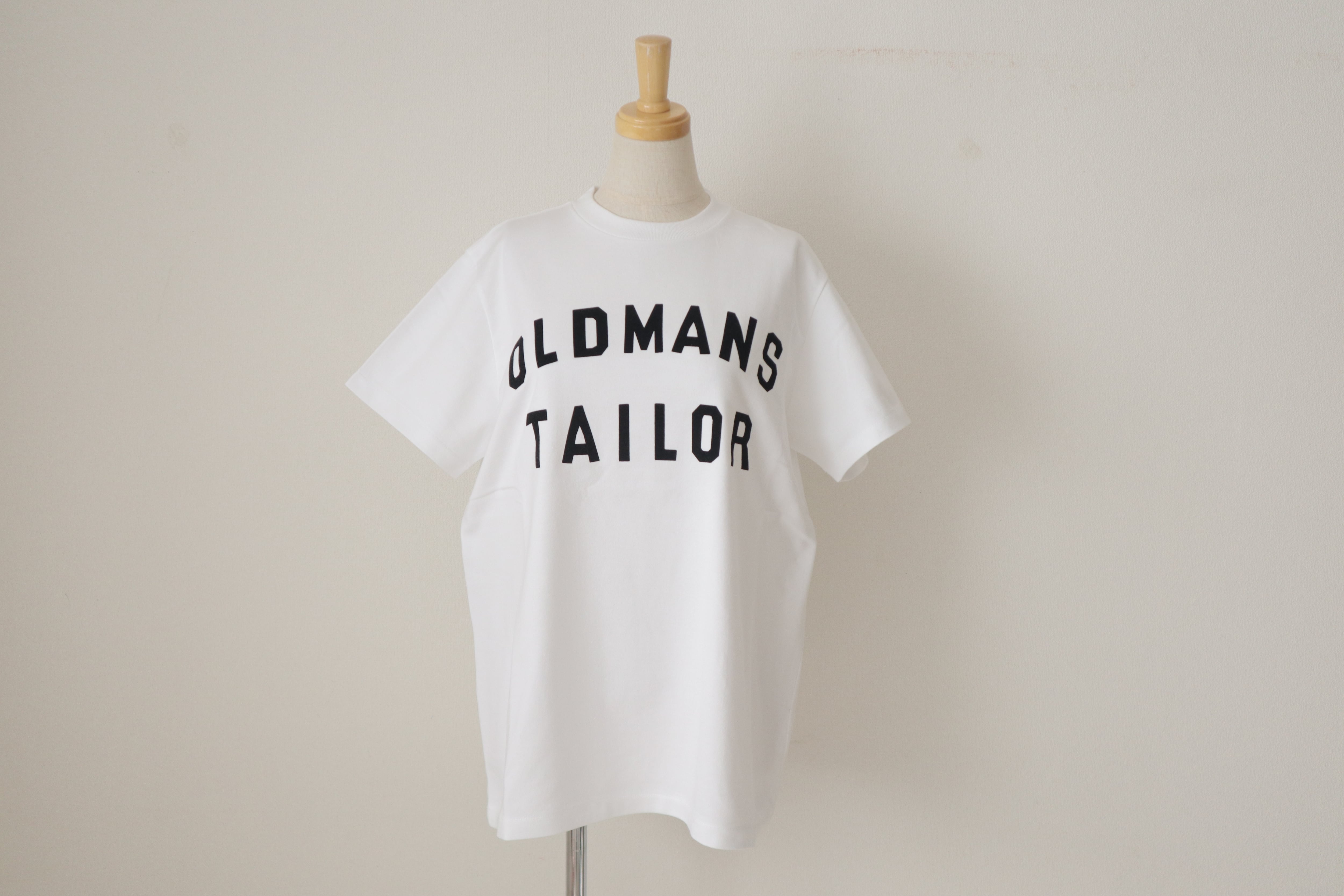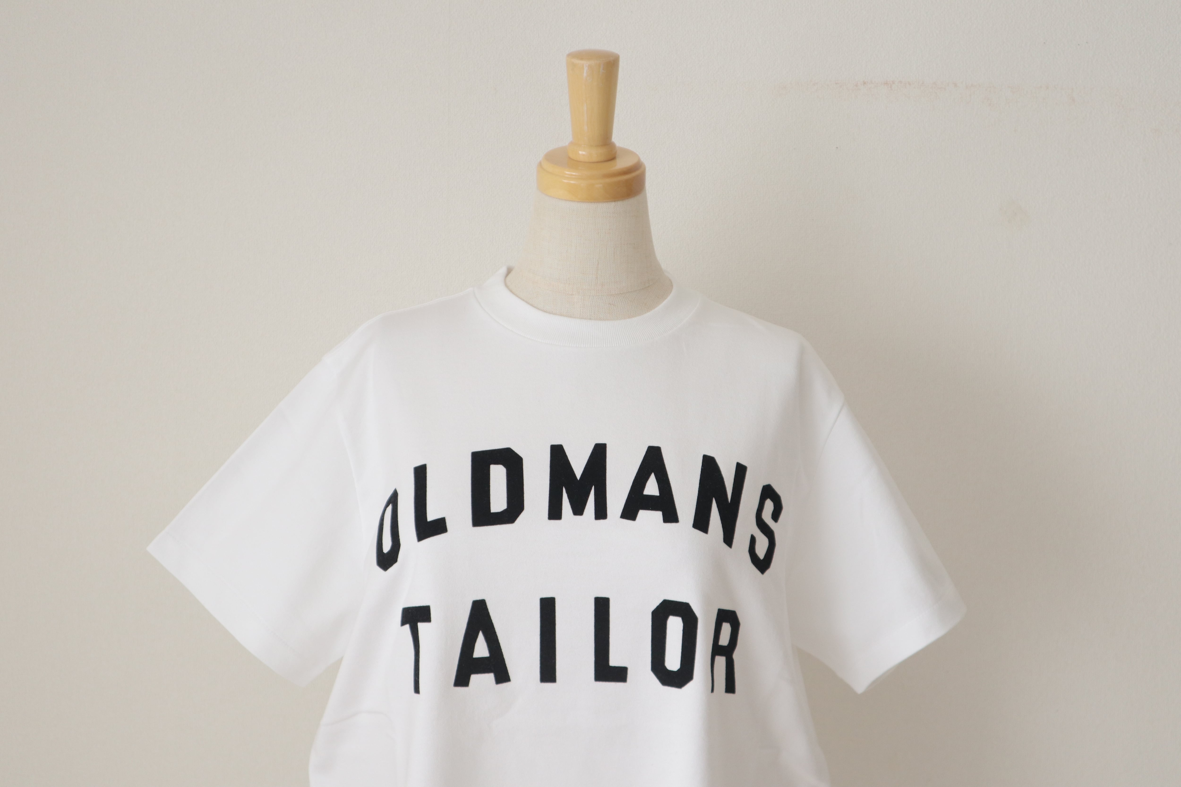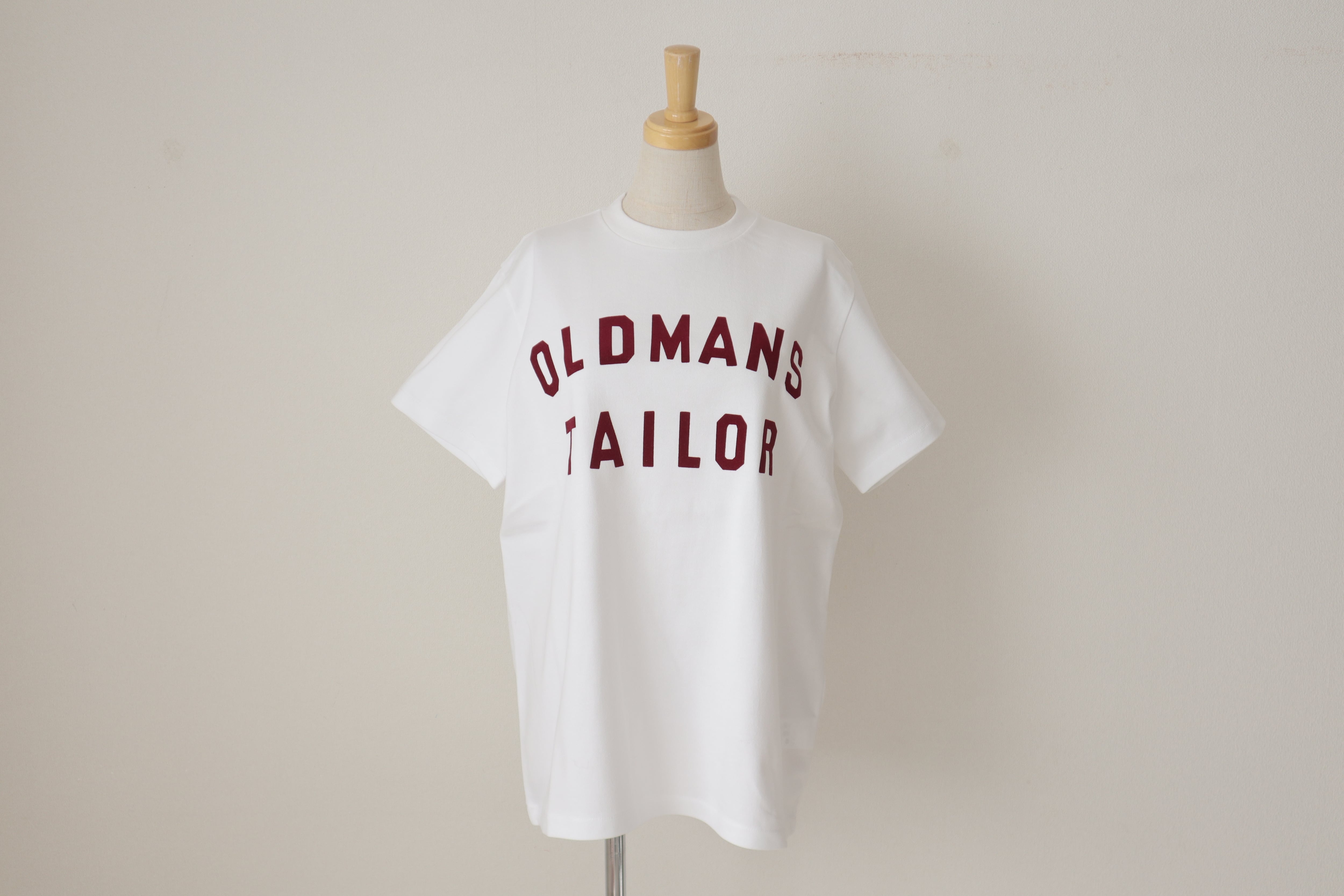 オールドマンズテーラーのロゴがフロッキー施されたクルーネックの半袖シャツです。 柔らかなコットン素材で着心地が良く透け感も気にならず一枚できまるロゴのTシャツです。