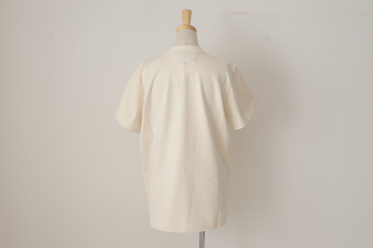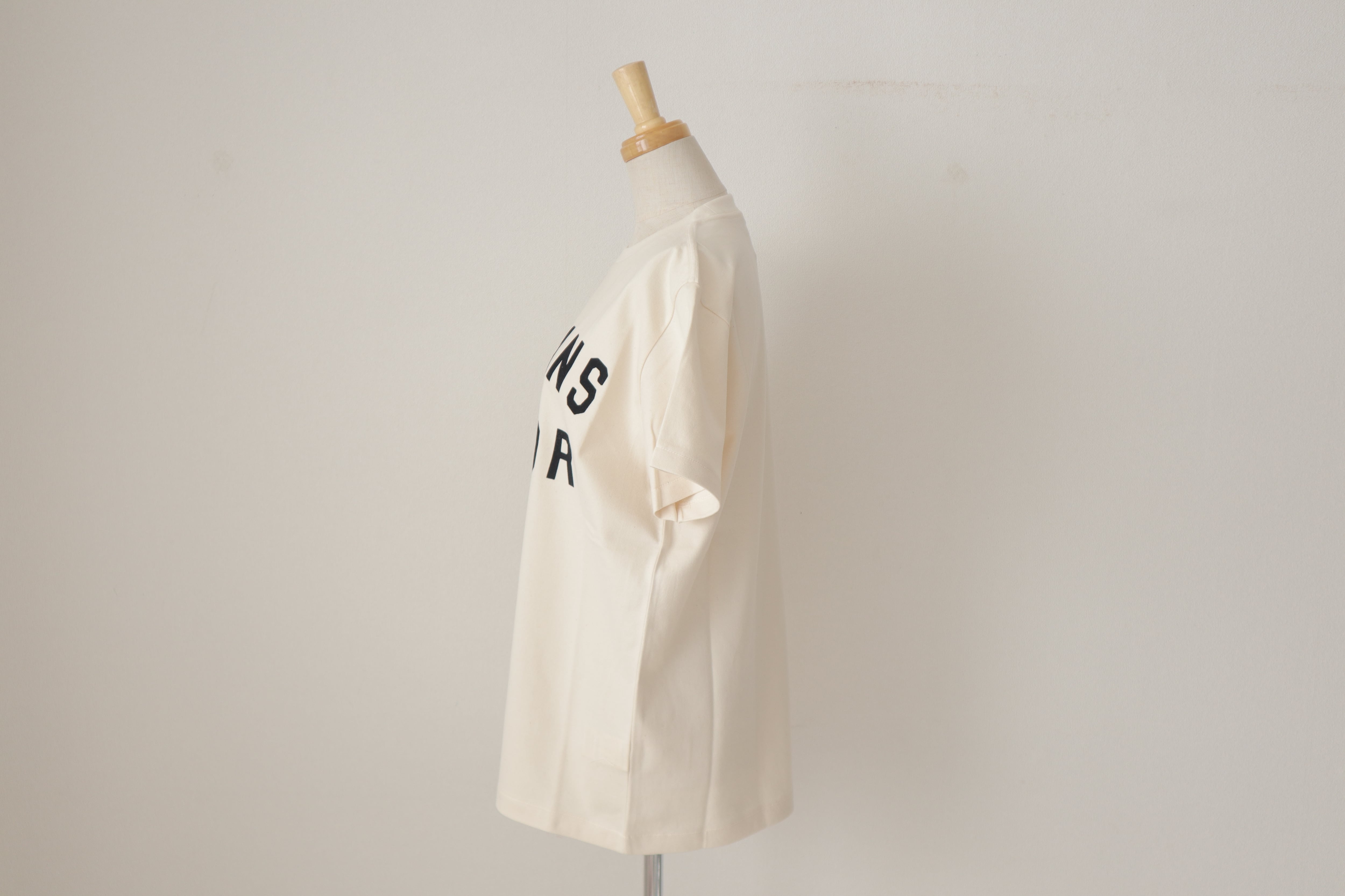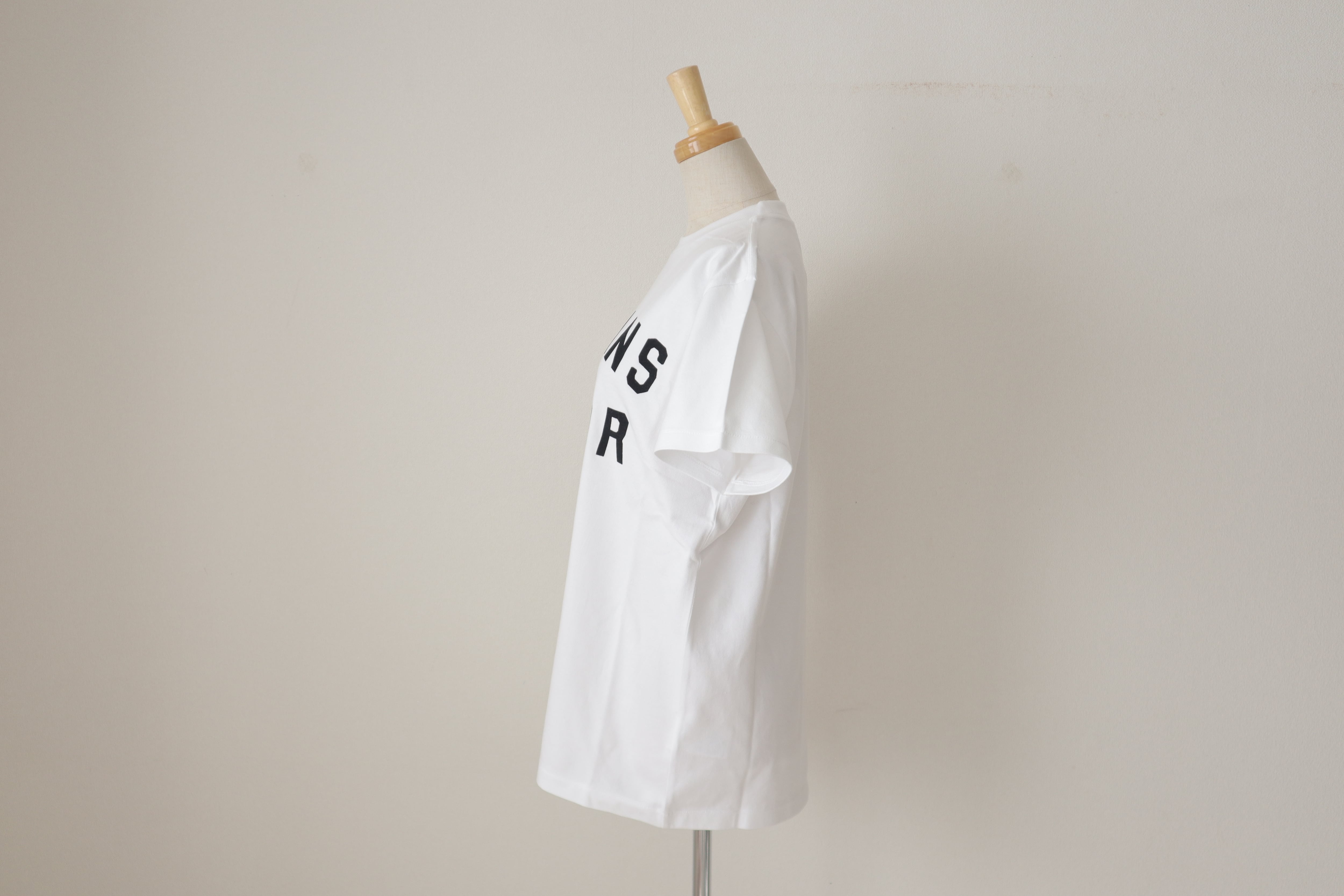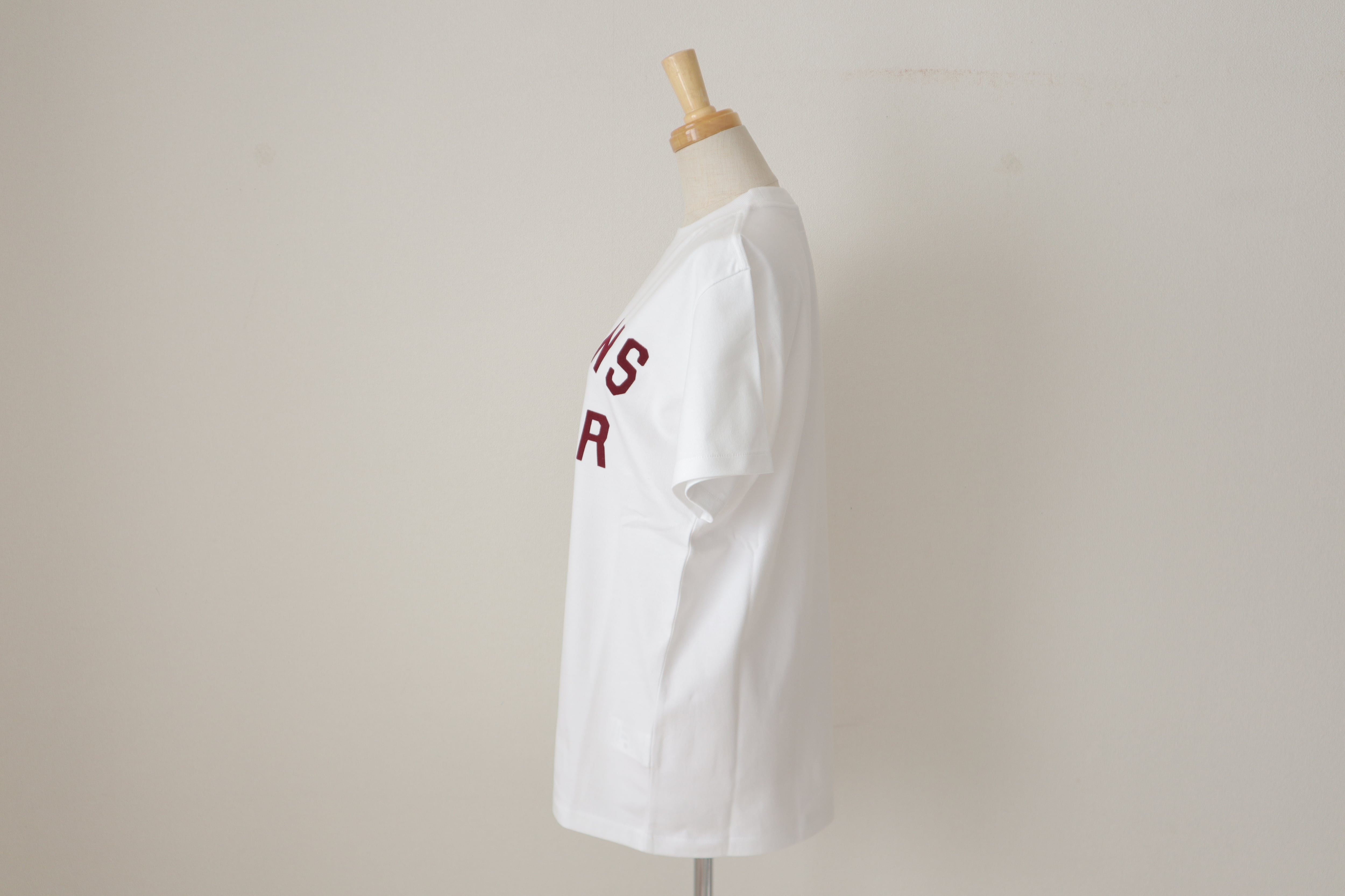 オールドマンズテーラーのロゴがフロッキー施されたクルーネックの半袖シャツです。 柔らかなコットン素材で着心地が良く透け感も気にならず一枚できまるロゴのTシャツです。