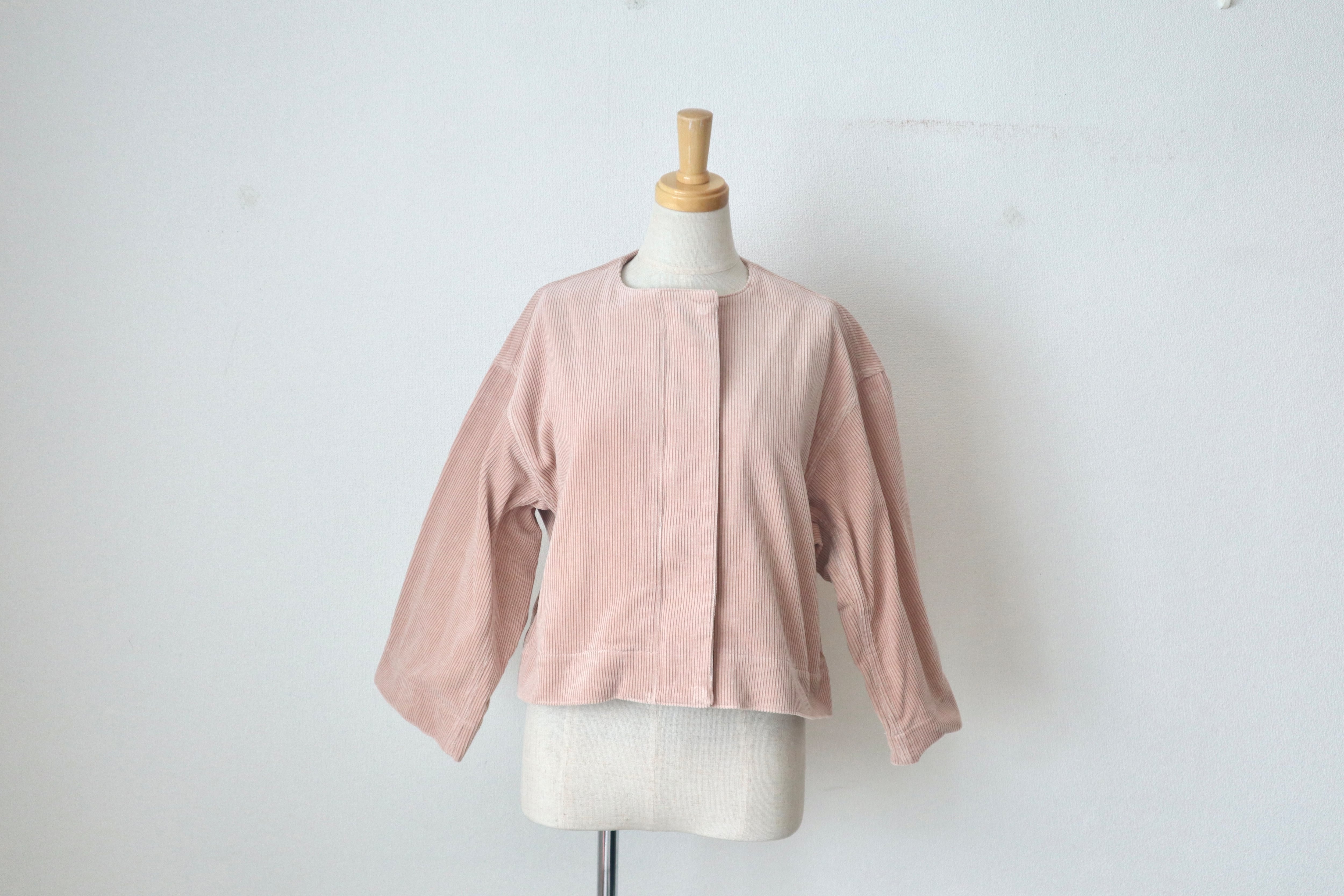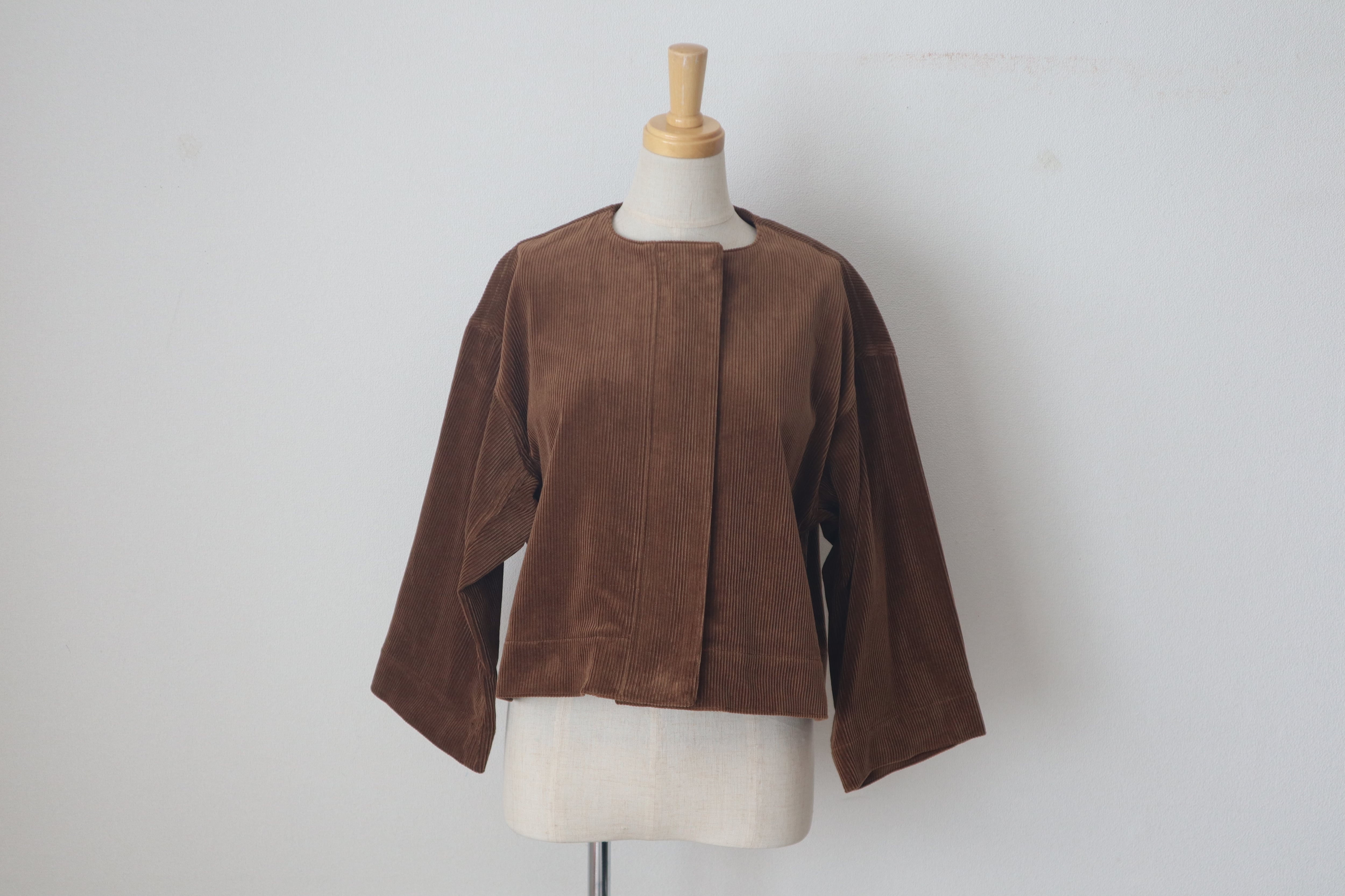 コーデュロイ素材を使用したワイドスリーブデザインがポイントのジャケットです。