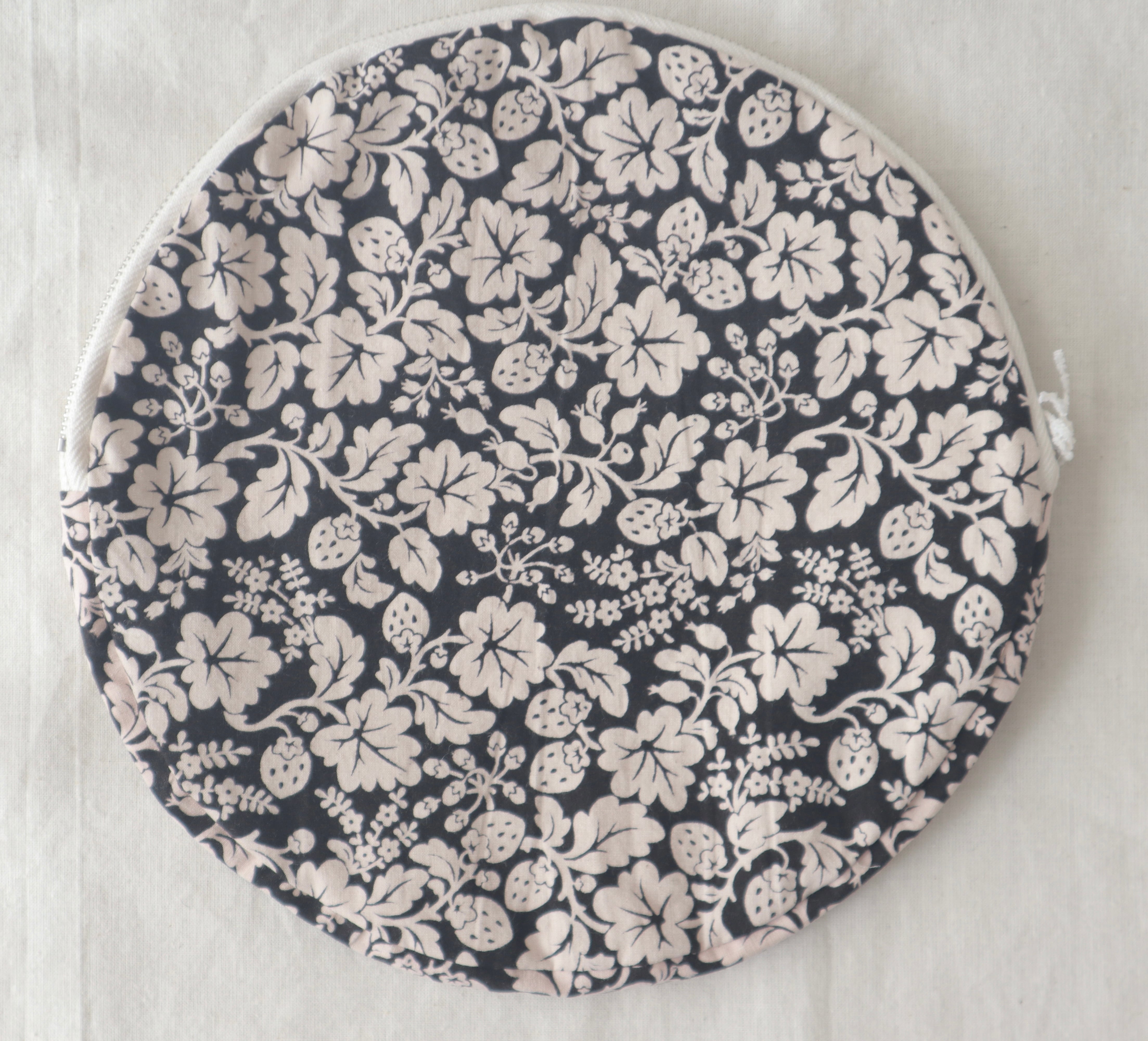 可愛らしいワイルドベリープリントの丸型ポーチです。