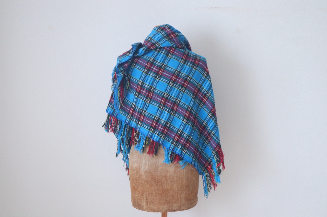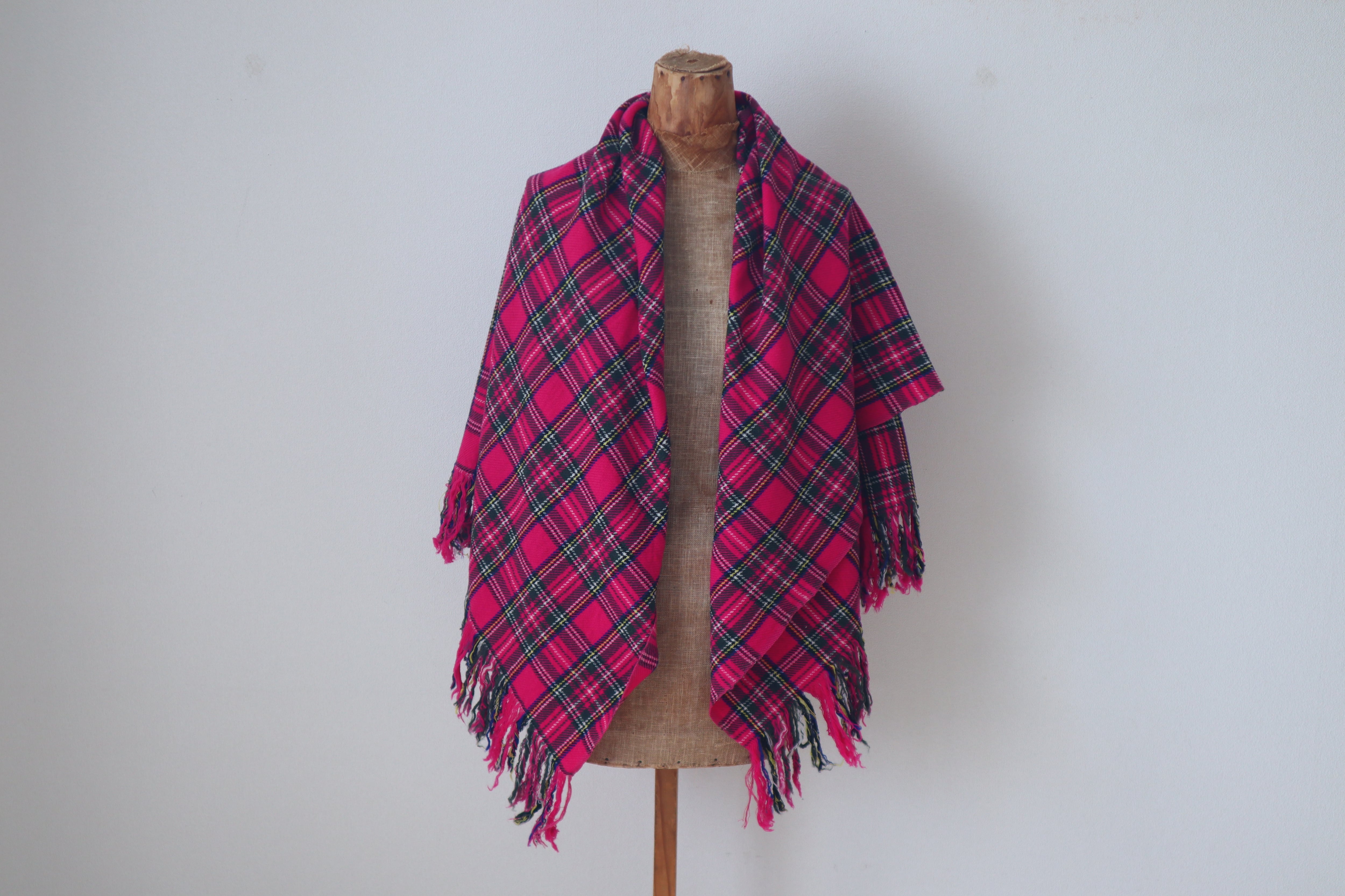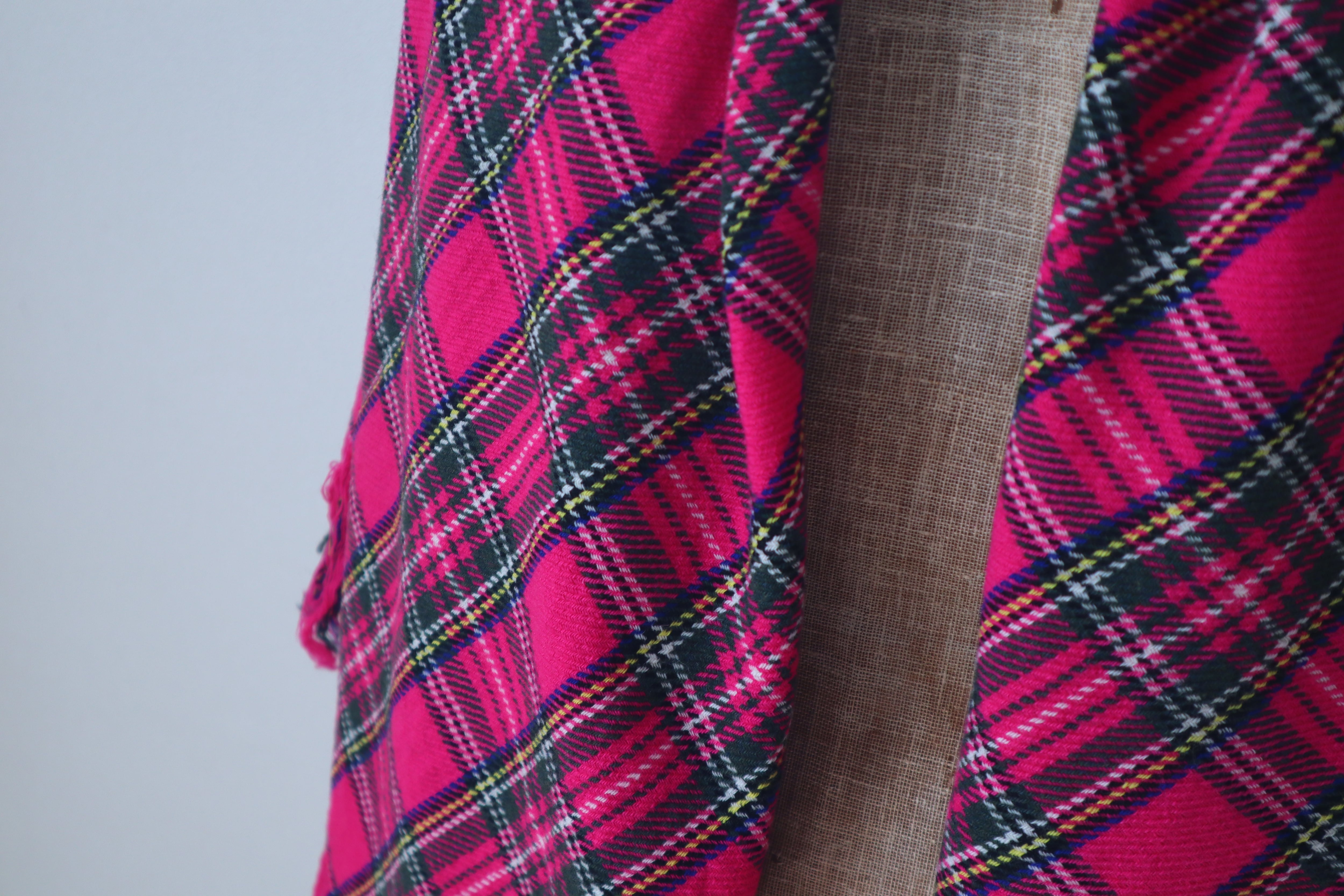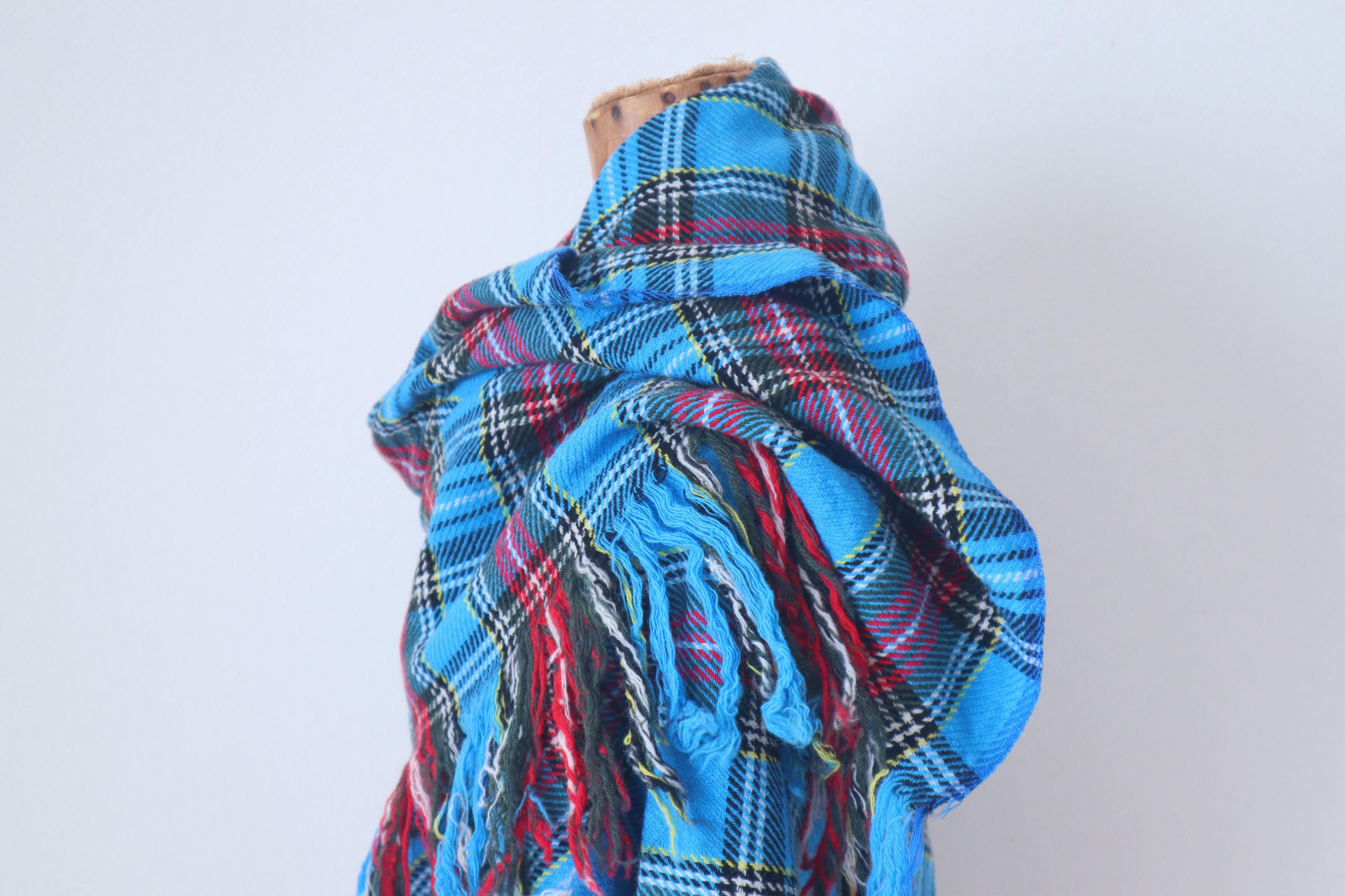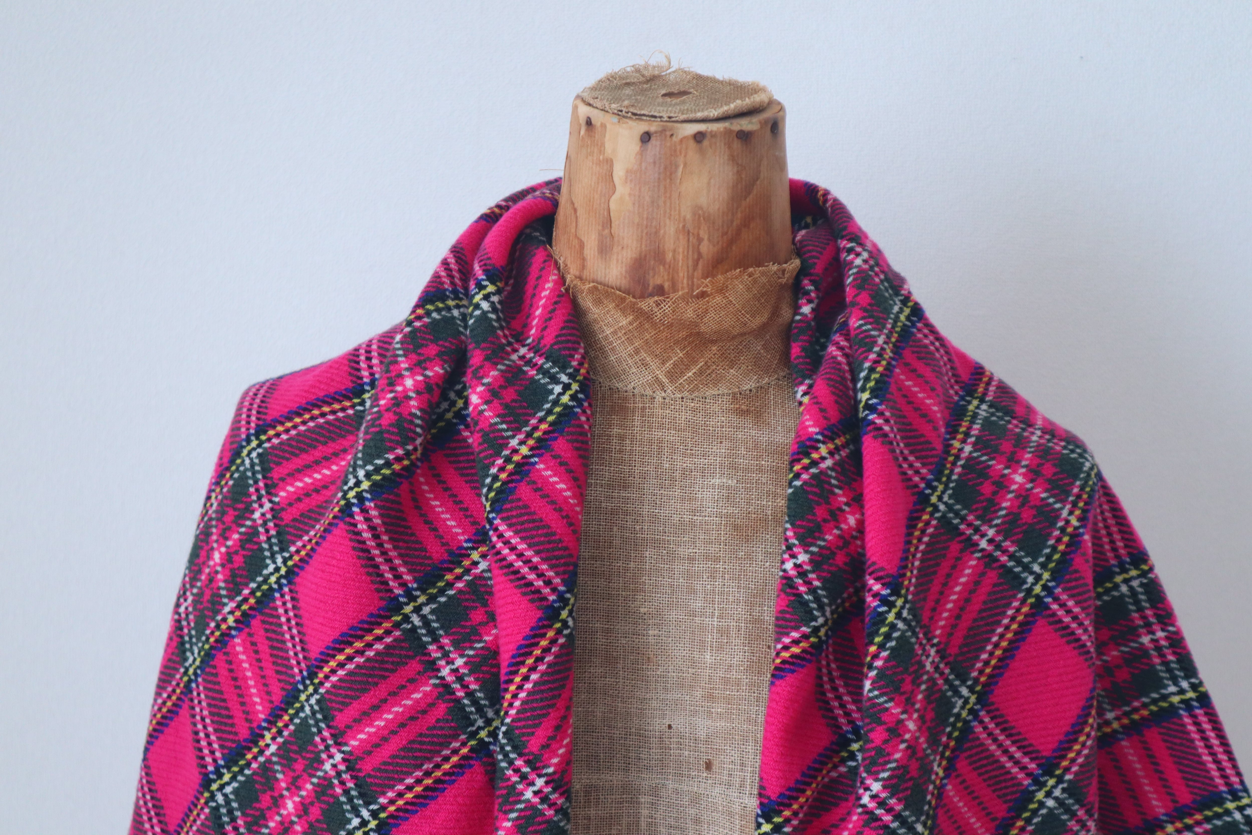 柔らかく肌触りが良く鮮やかなスチュワートチェックの美しい大判ショールです。