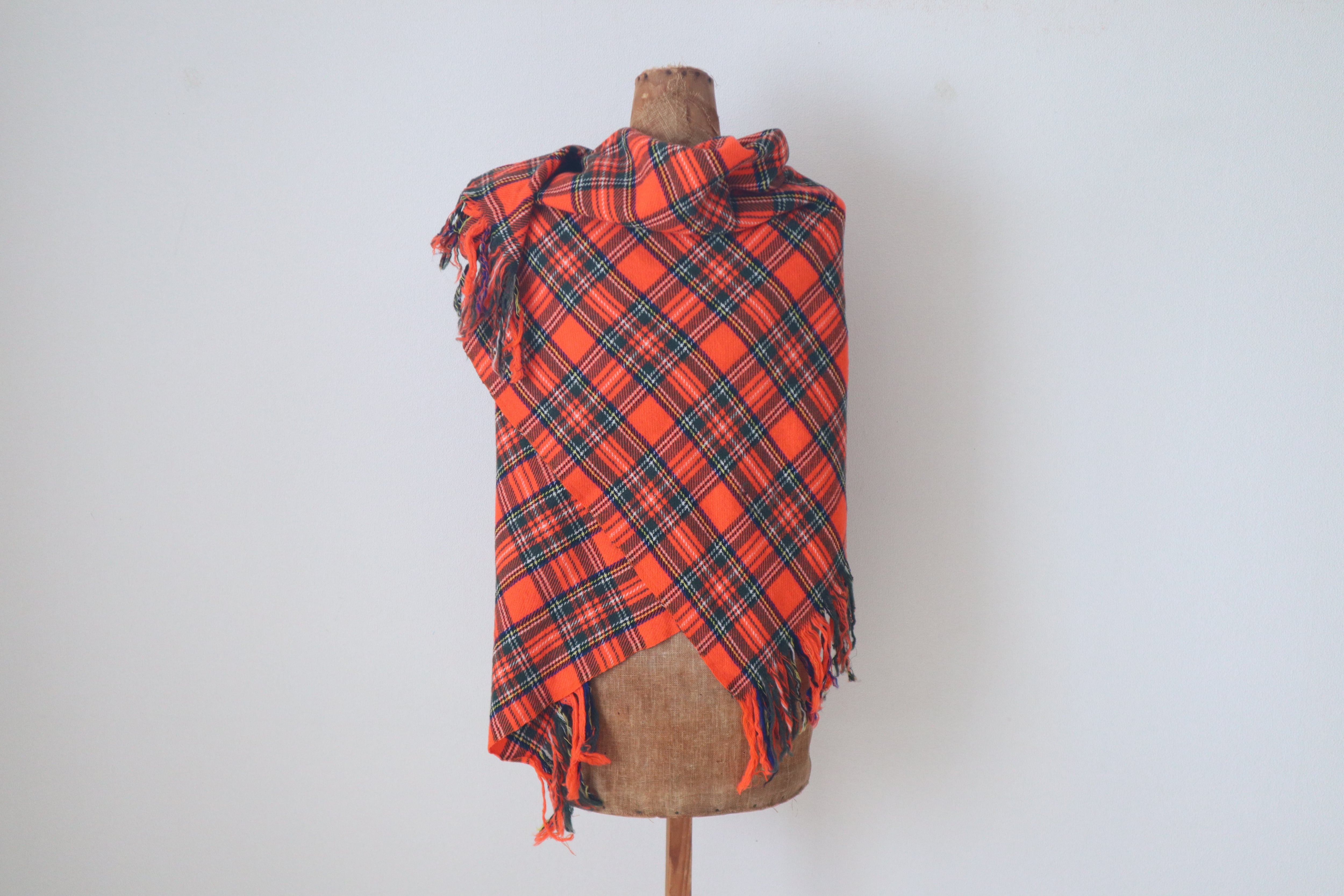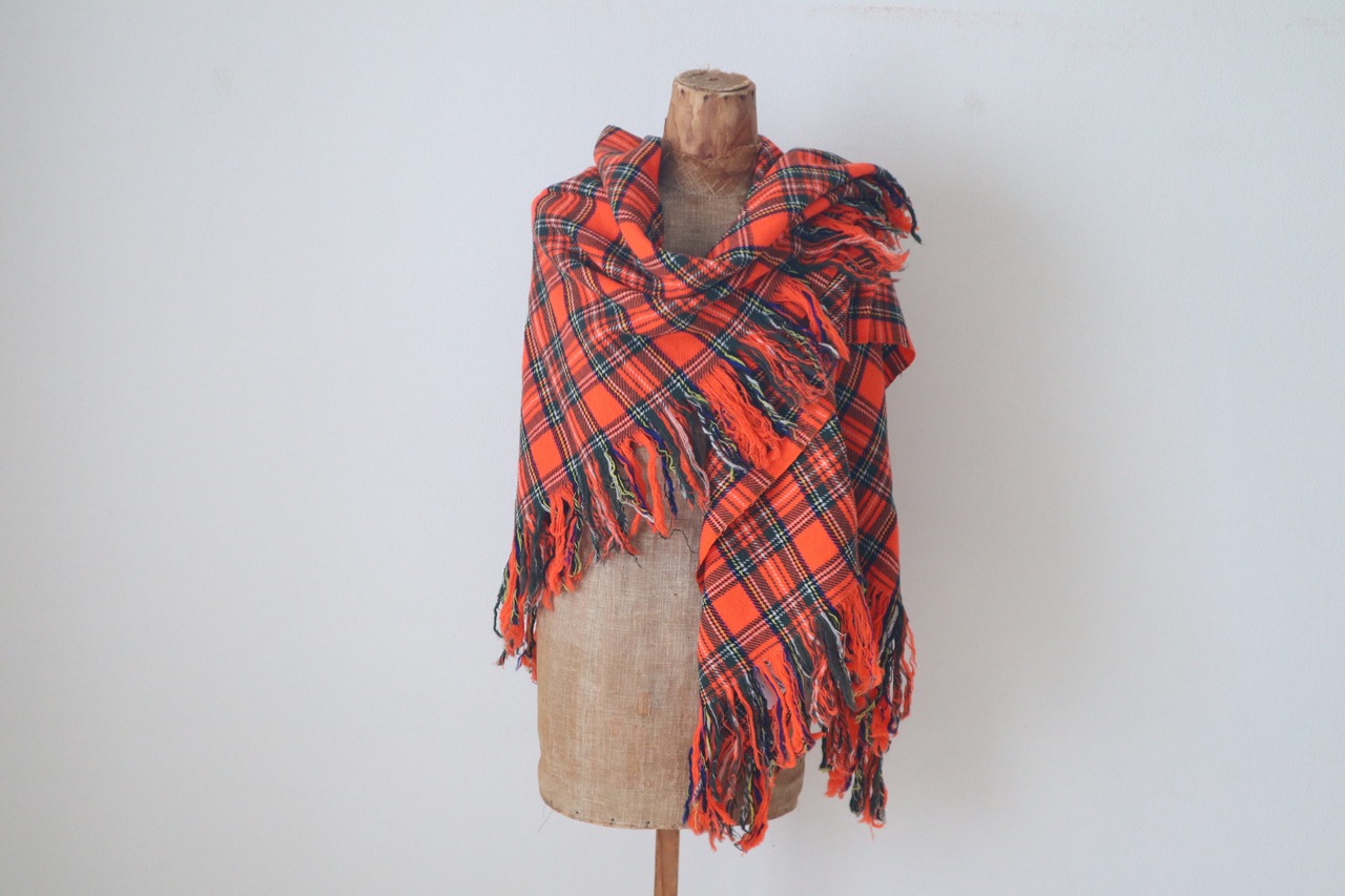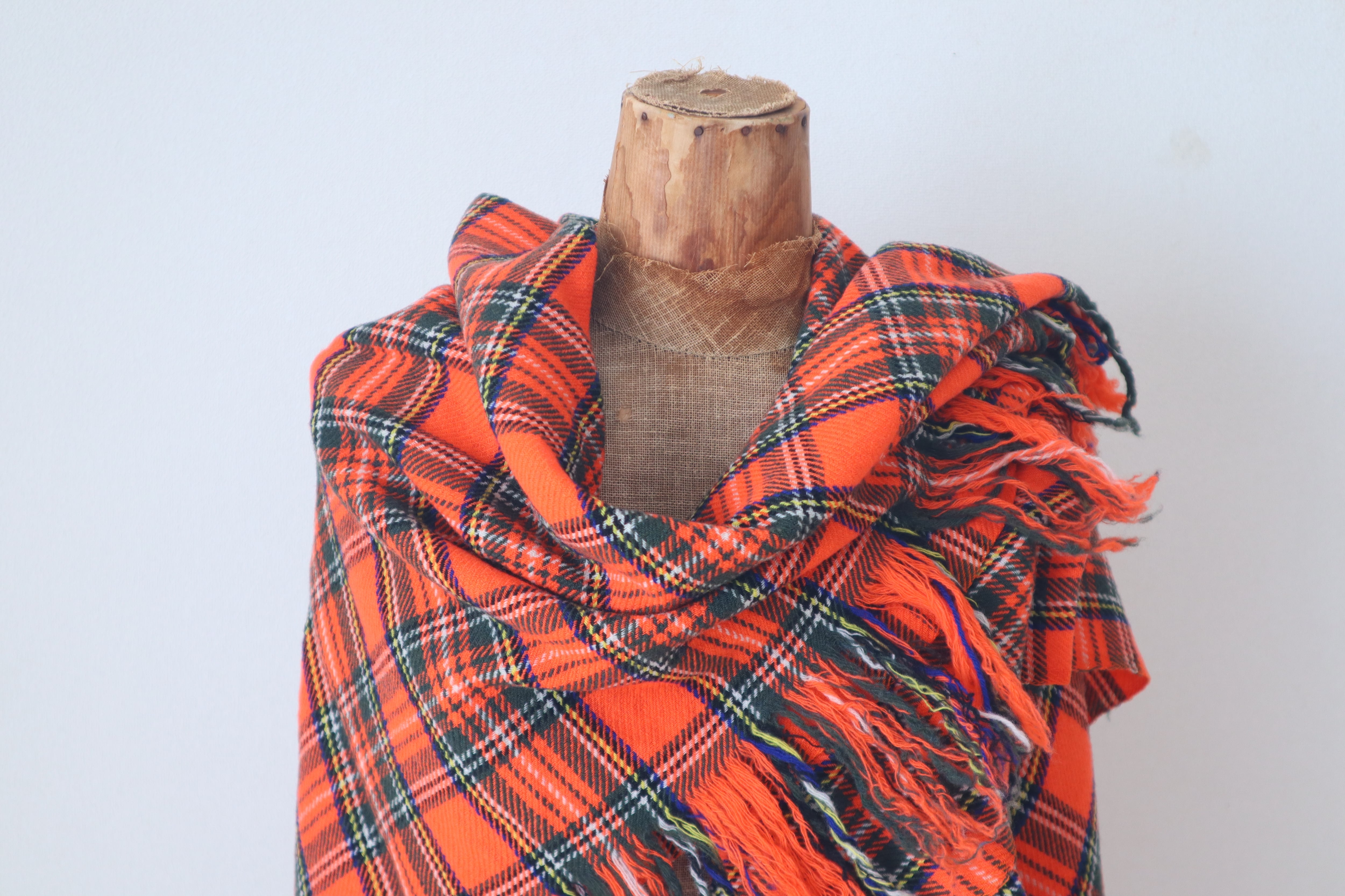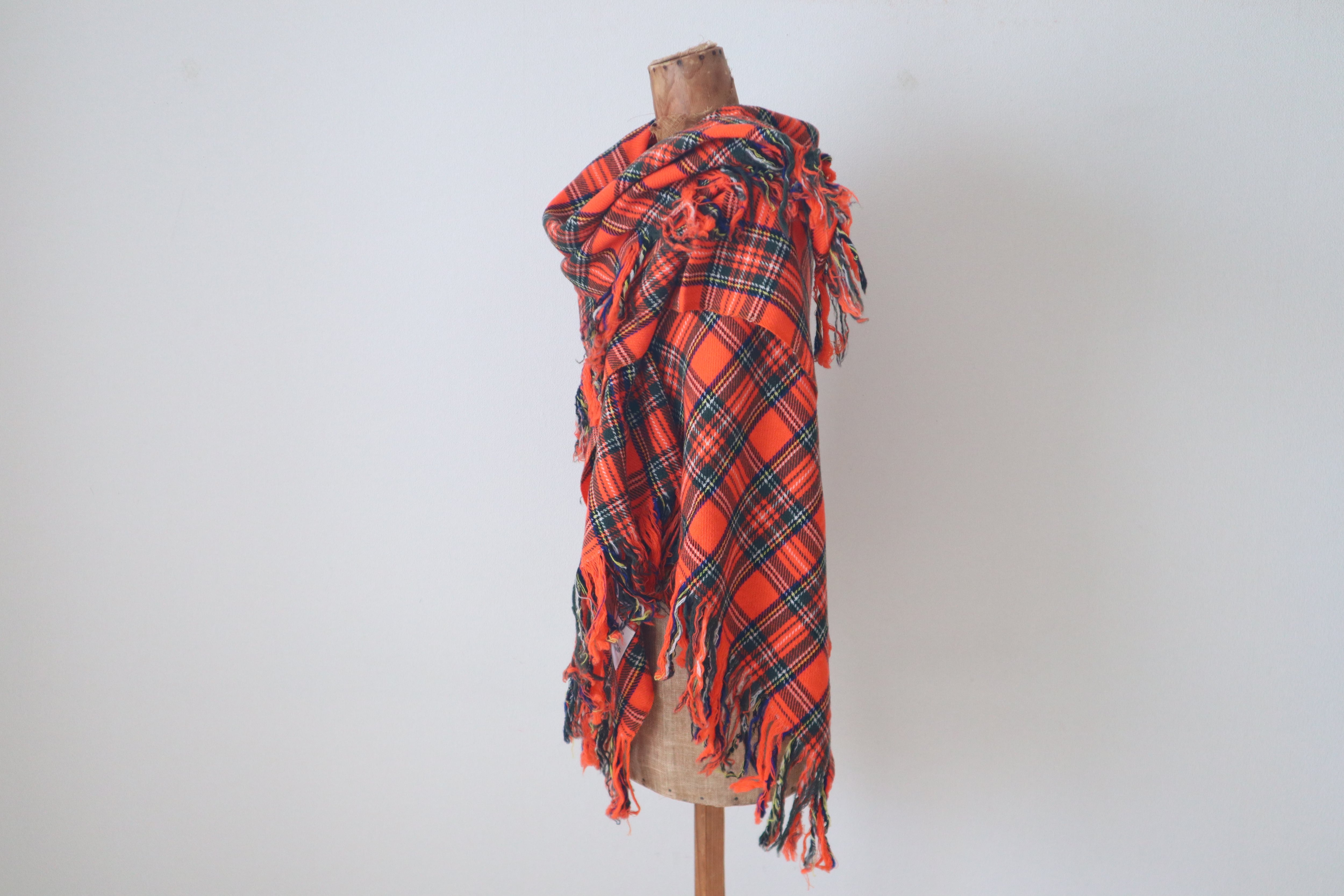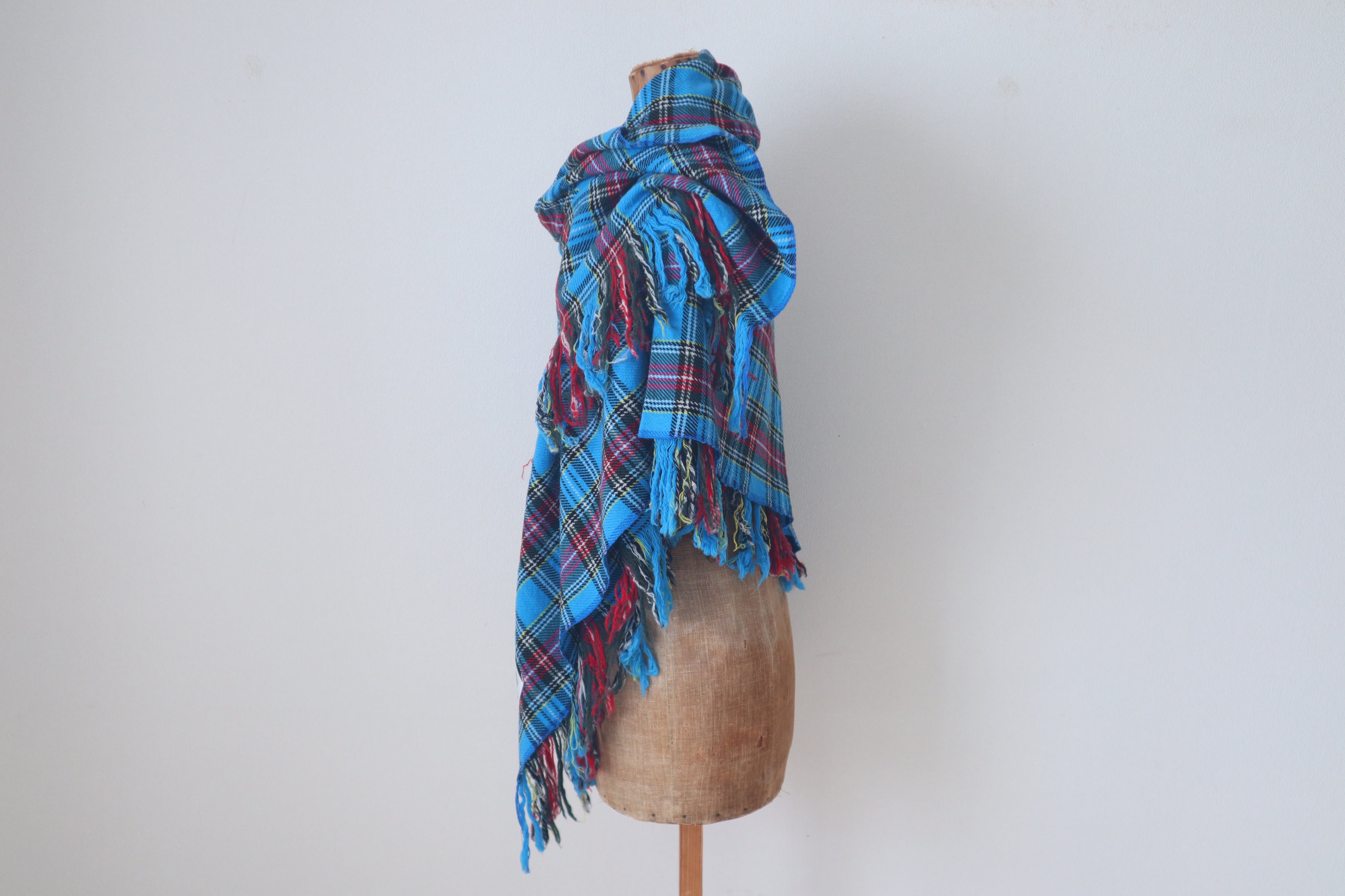 柔らかく肌触りが良く鮮やかなスチュワートチェックの美しい大判ショールです。