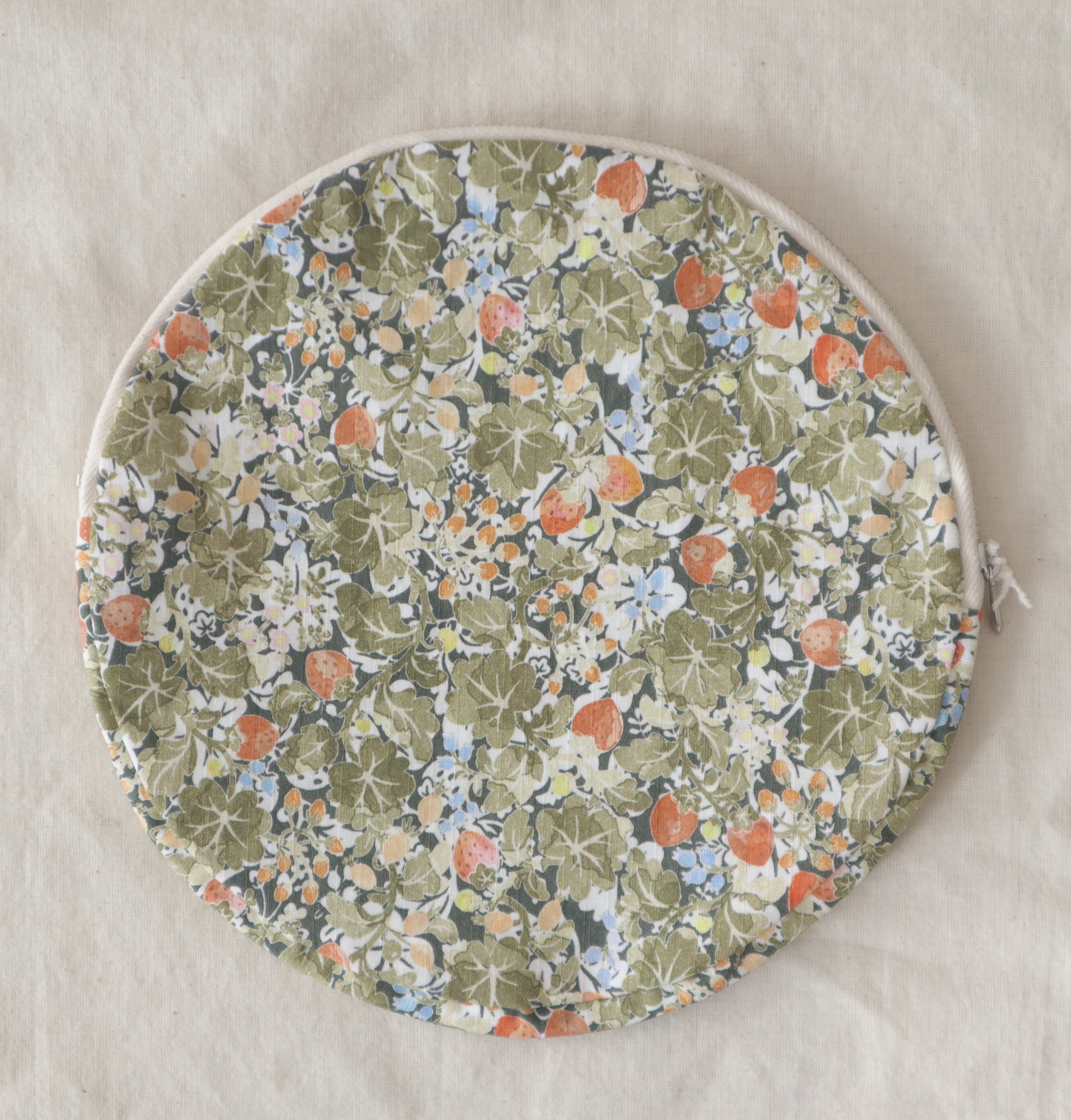 鮮やかなワイルドベリーのプリントが綺麗なプリントのサークル型ポーチです。