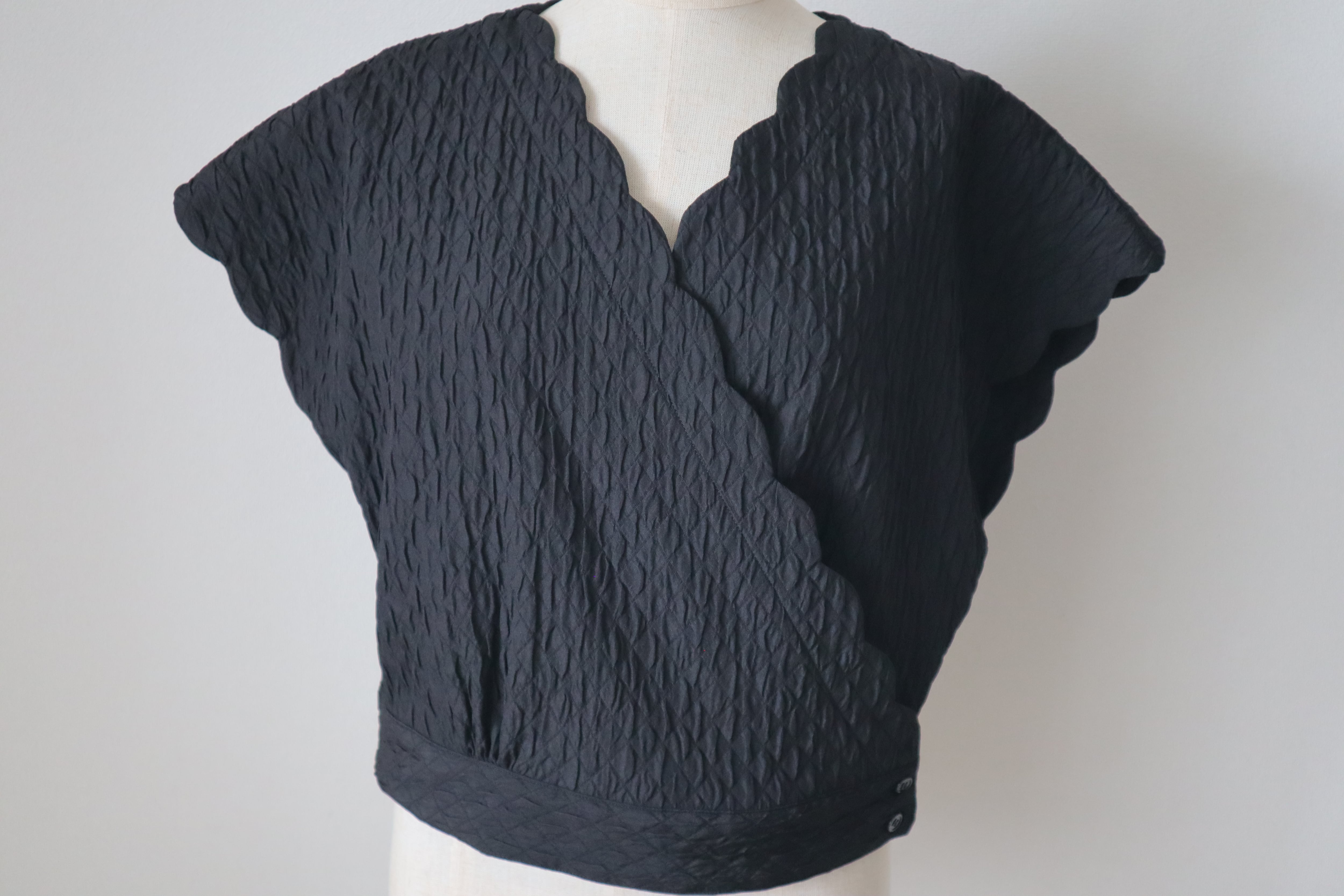 METELASSE加工が施されたスカルプデザインのブラウスです。 重ね着としても活躍するベスト感覚で楽しめるアイテム。