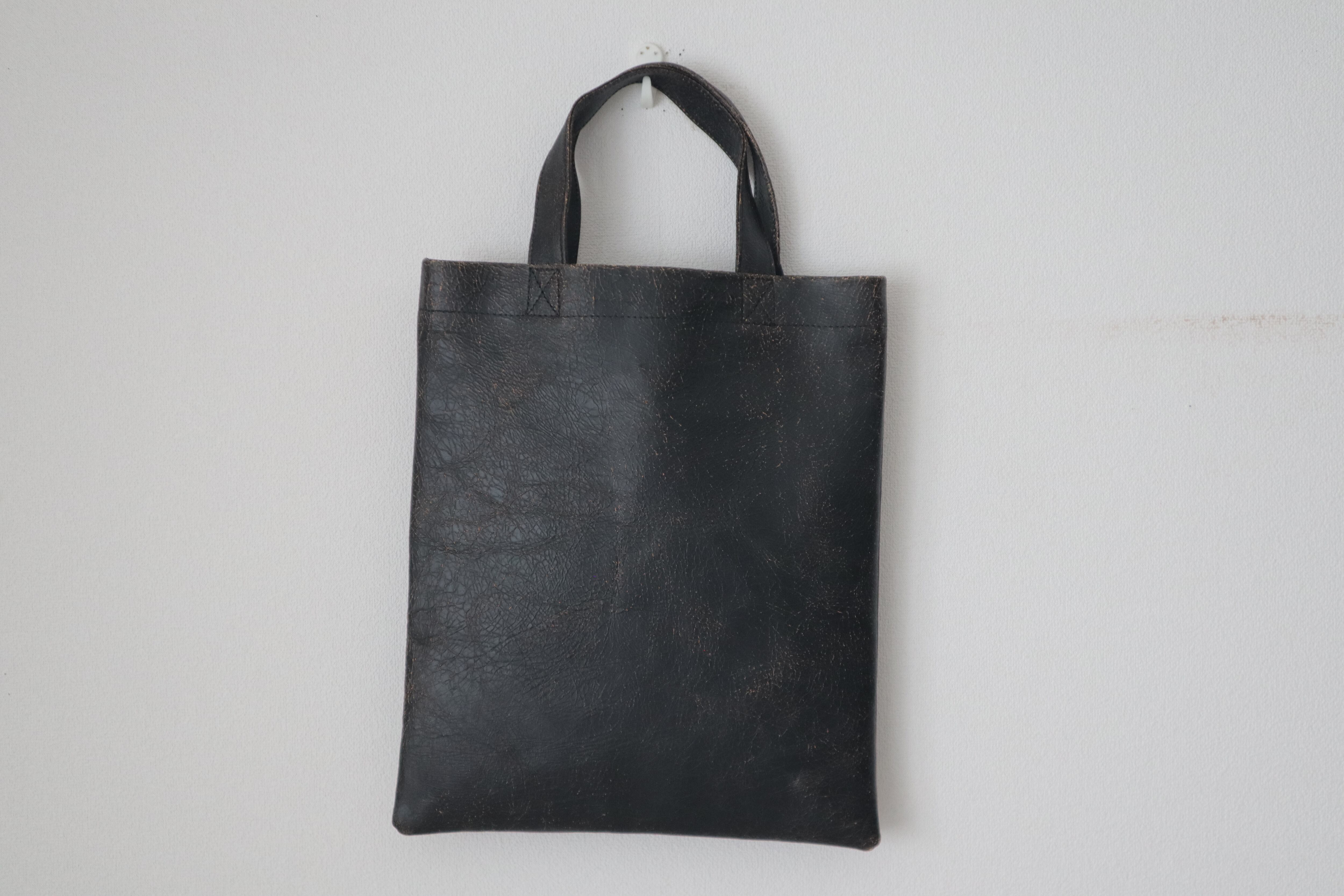 お洒落なクラッキング加工が施された牛革のミニトートバッグです。