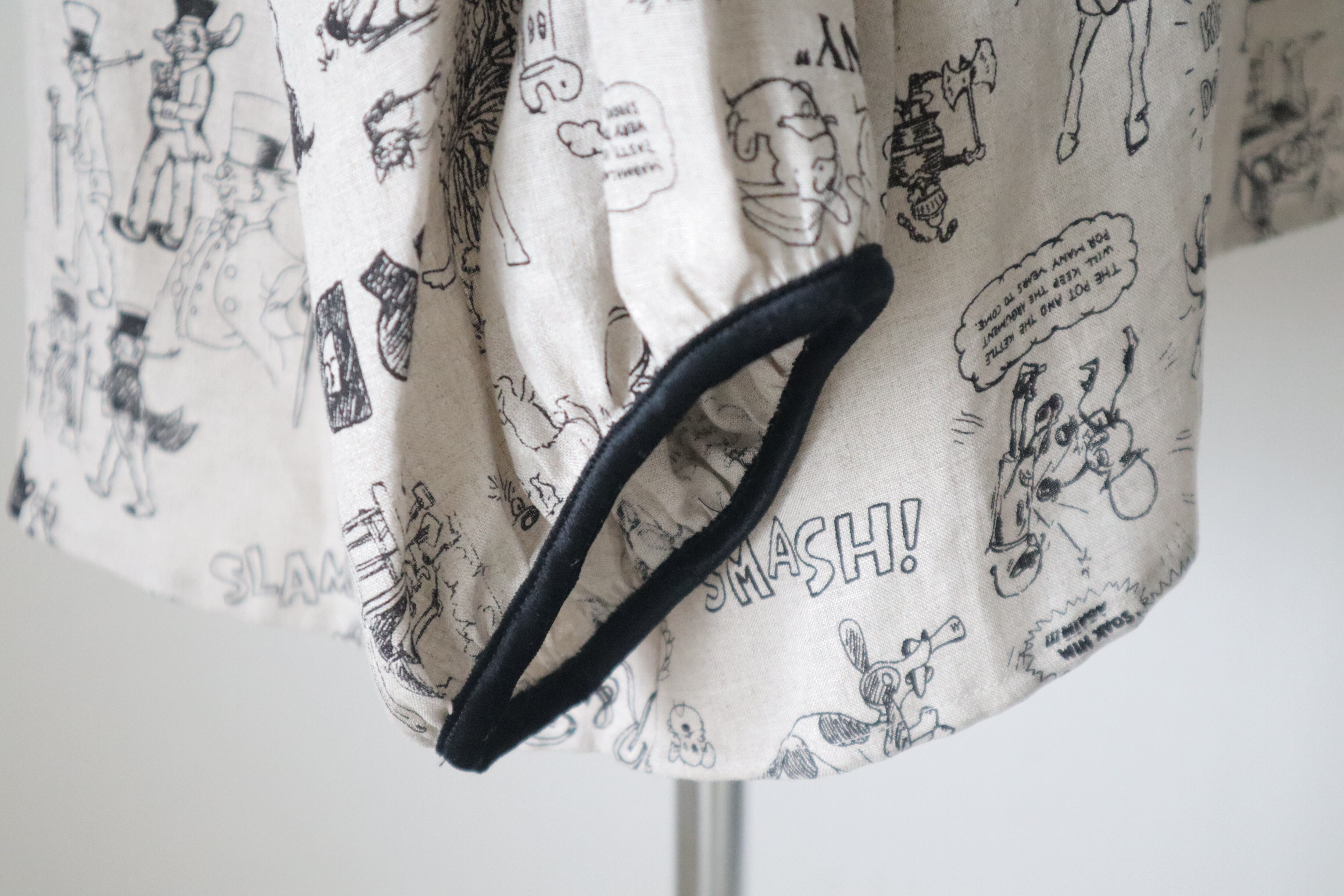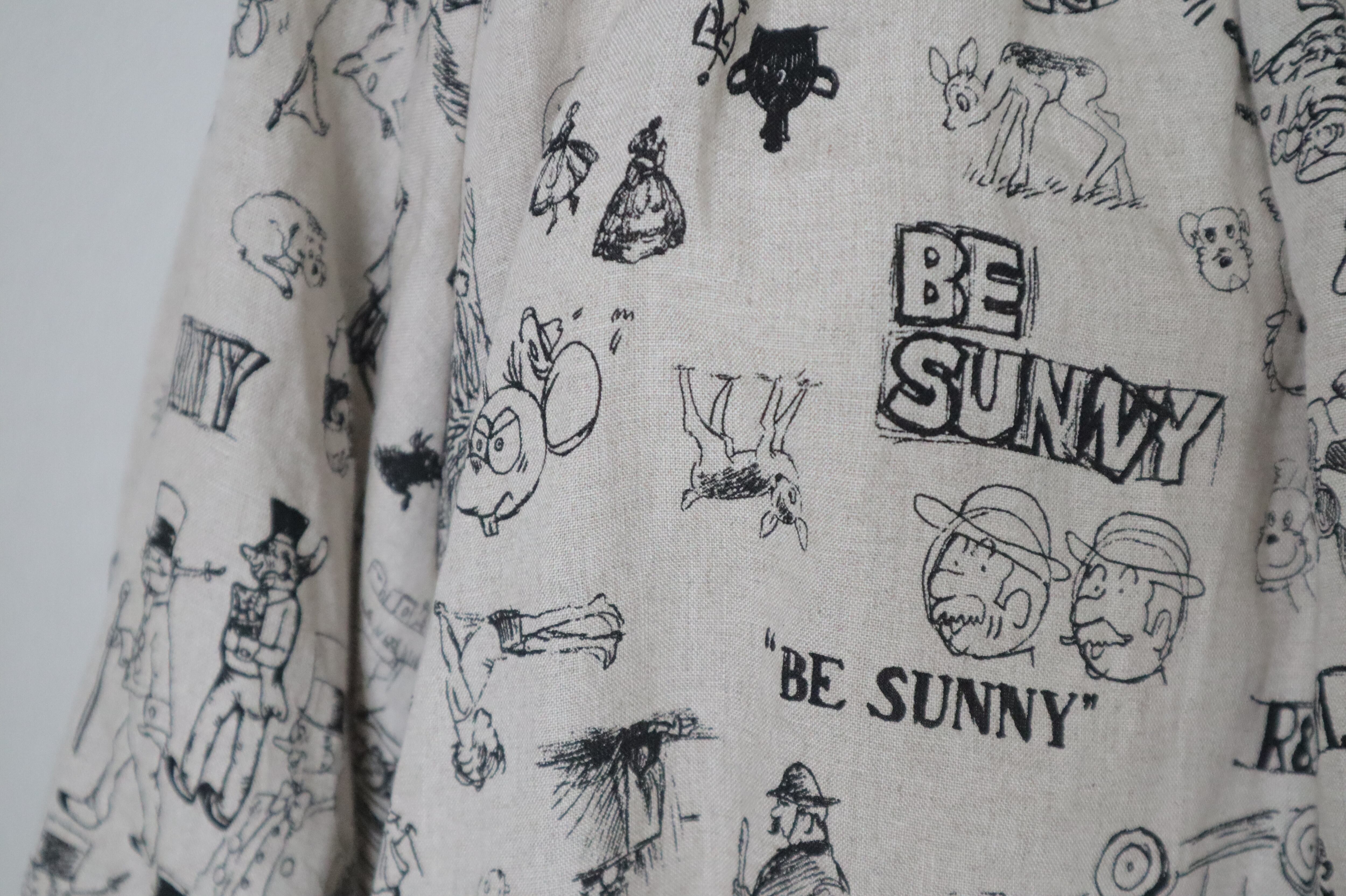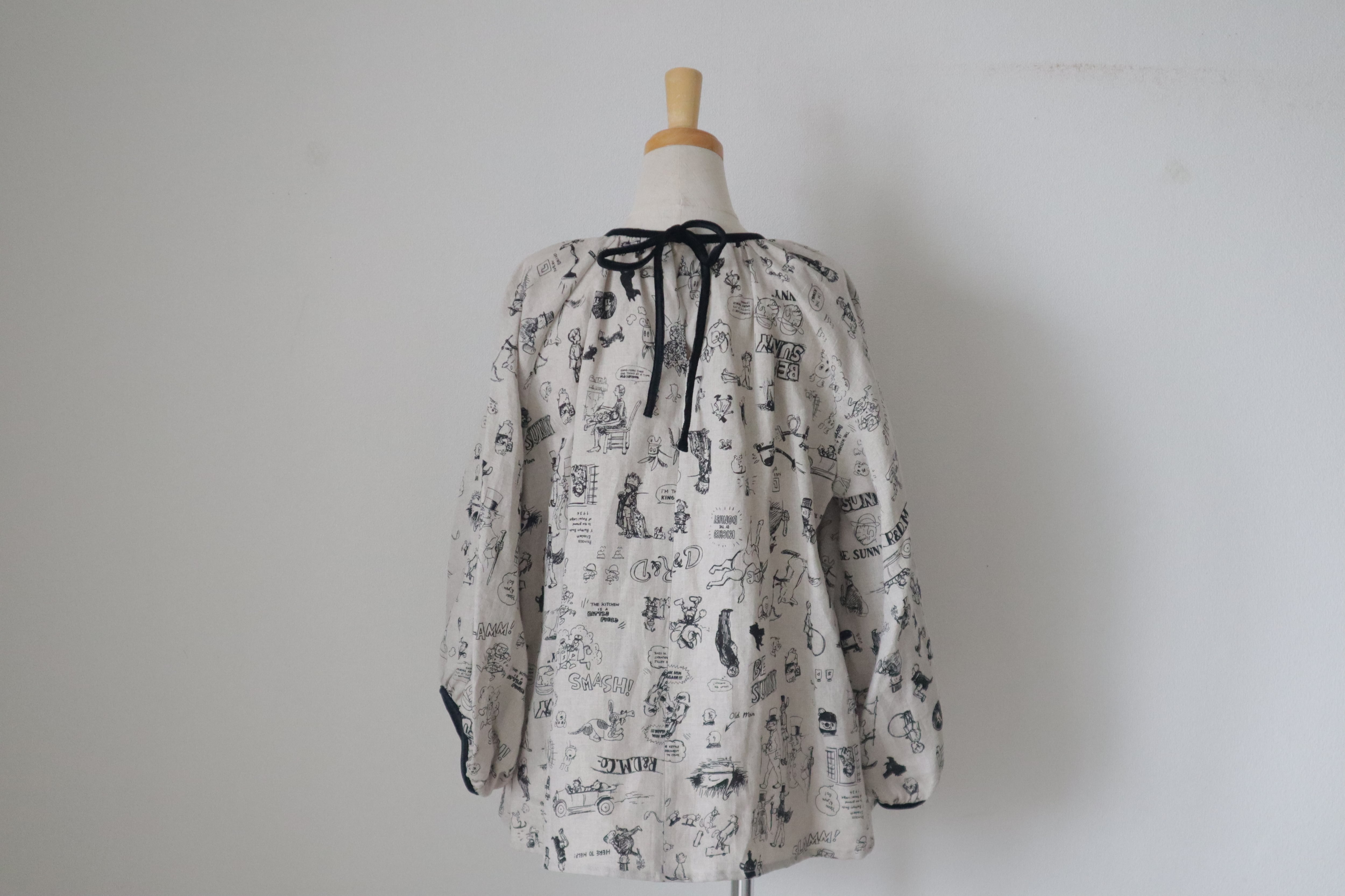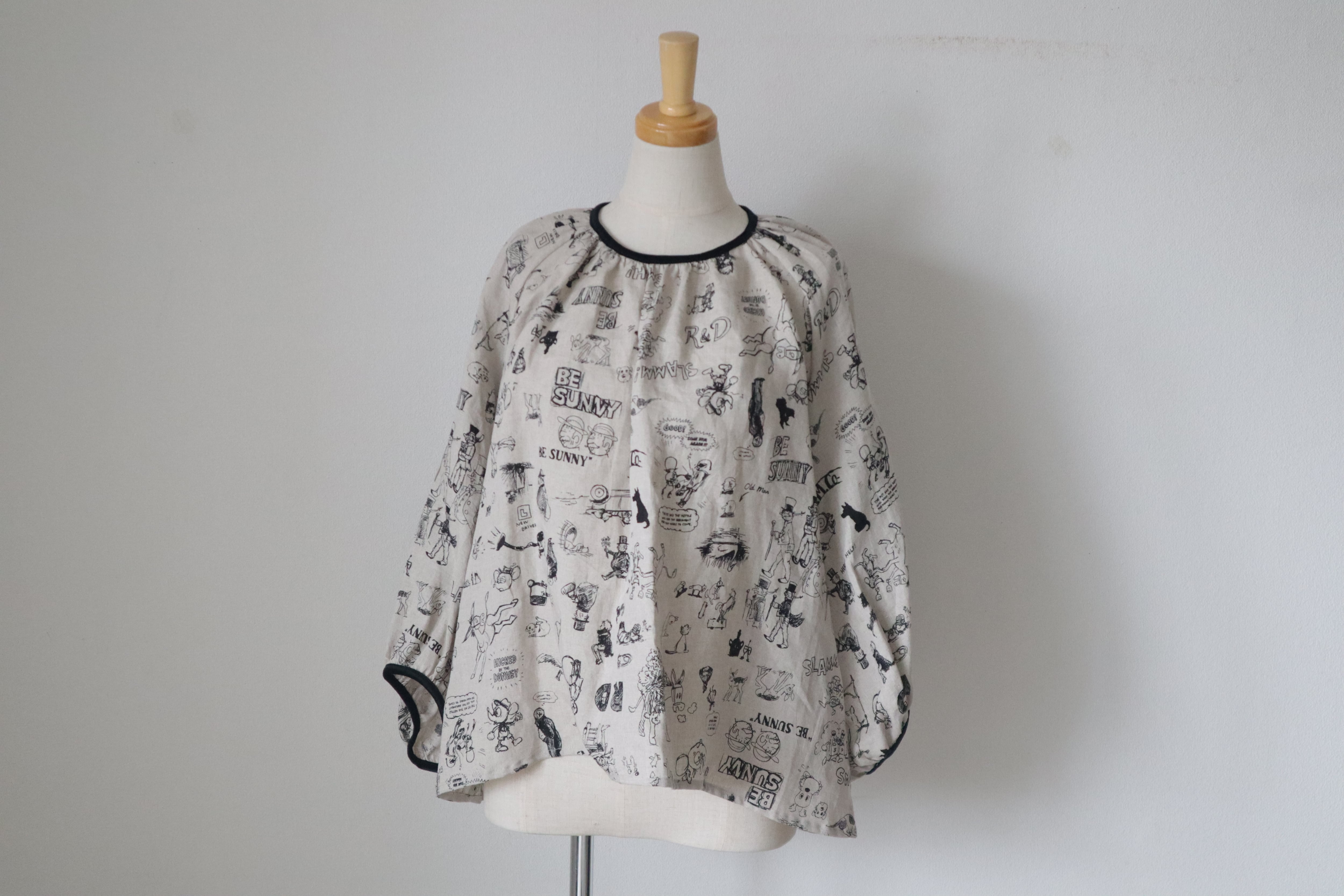 サニージムや可愛らしい動物たちがダンスしているラフなデザインが魅力の GRAFFITI GATHER SMOCKです。襟とお袖にはベロア素材のトリミングが施されてポイントに。 デニムやスカート、パンツにも合わせやすいアイテムです。