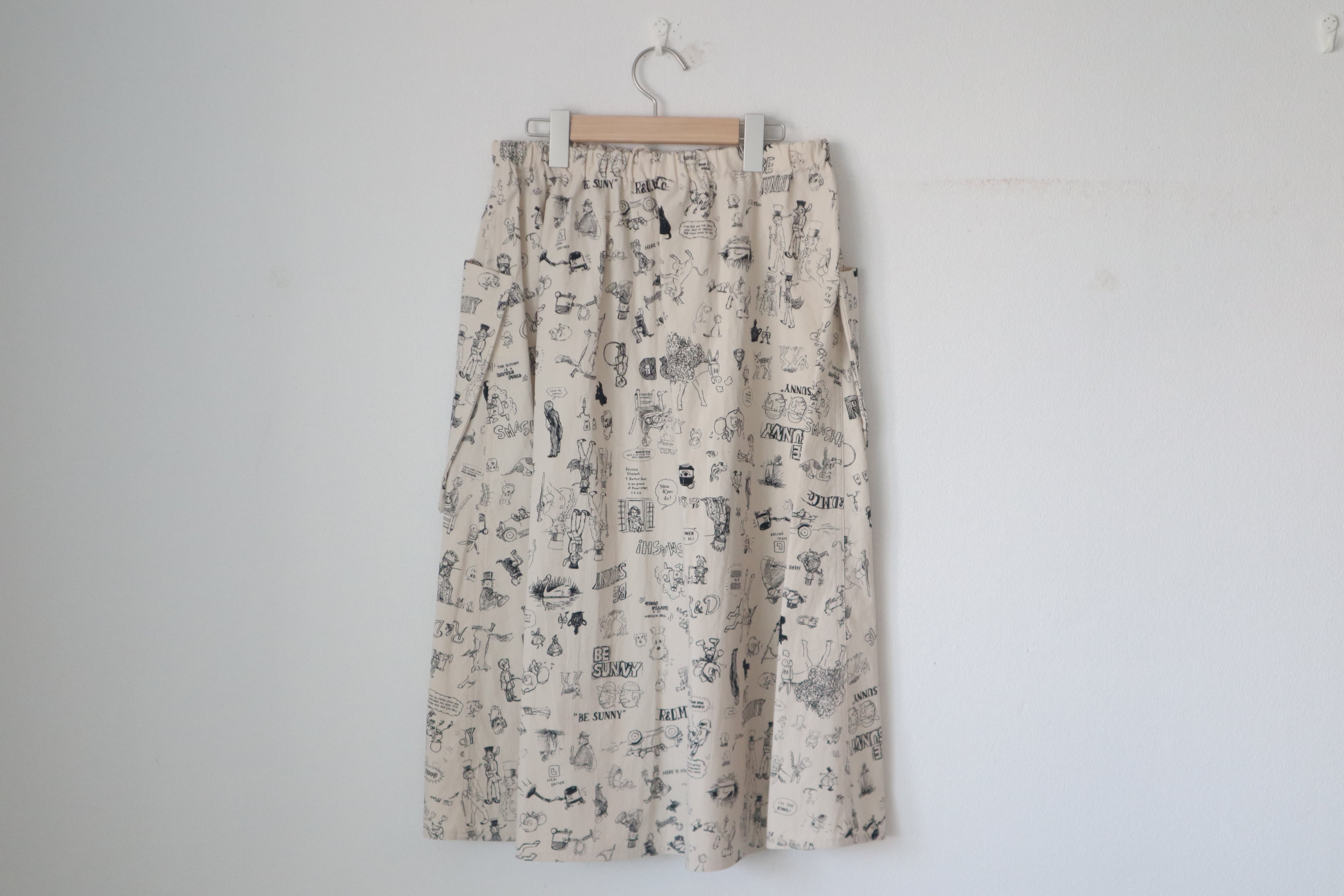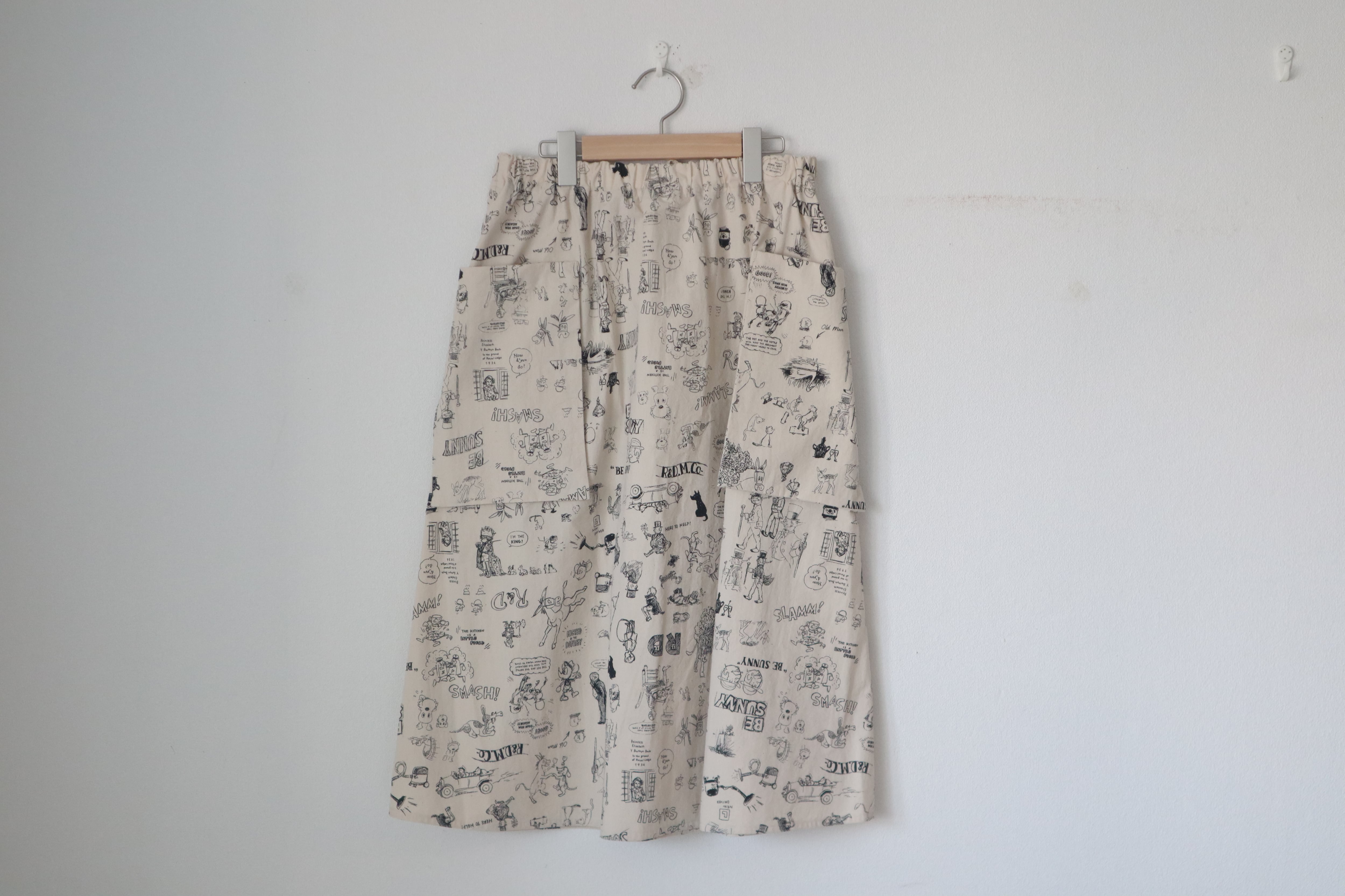 ユニークなサニージムやヘンリーのスケッチ風デザインが魅力的なGRAFFITI POCKET SKIRT。 両サイドのポケットがポイント。