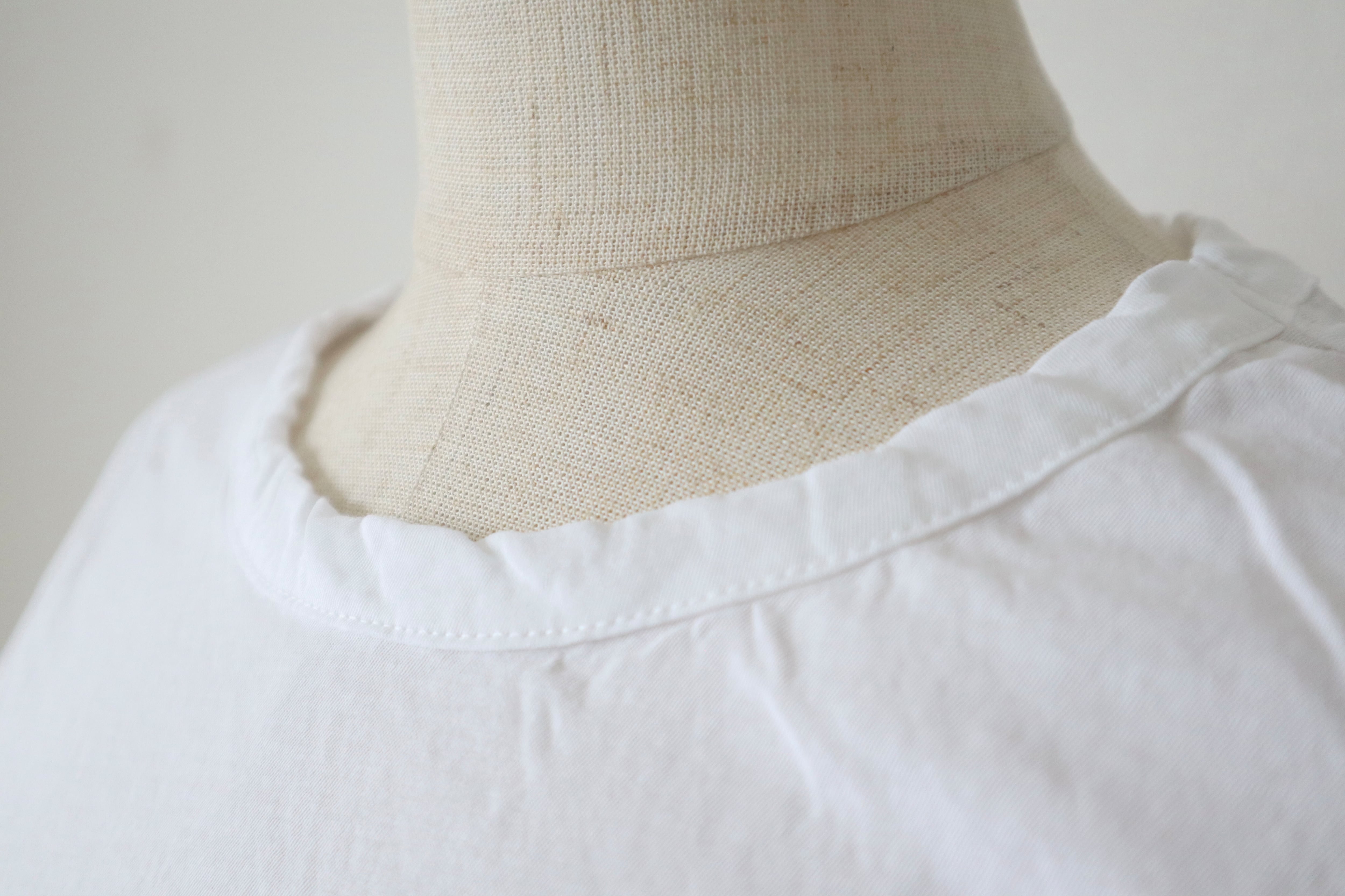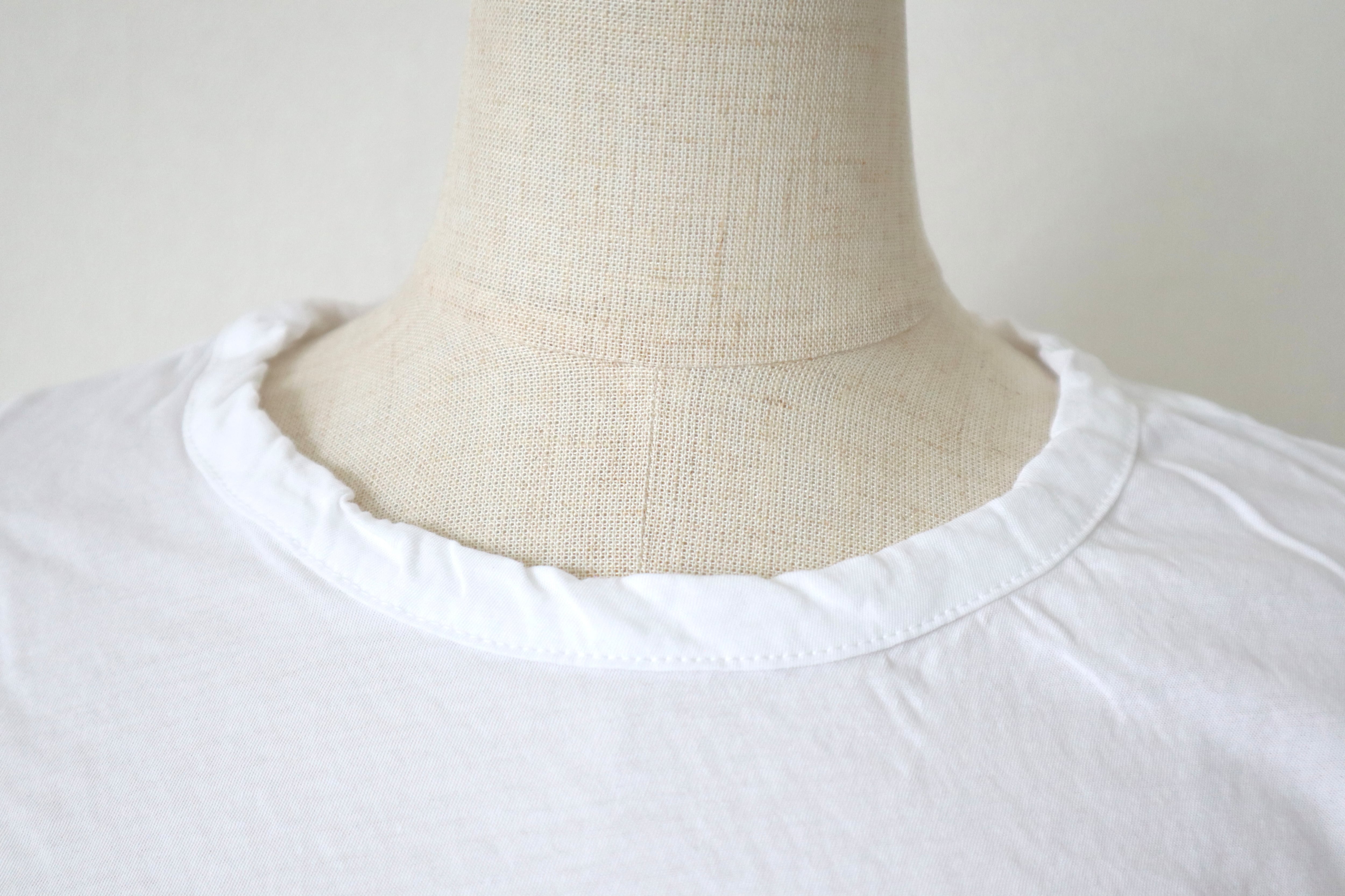 シンプルながら襟元と裾のツイストのデザインが魅力的。