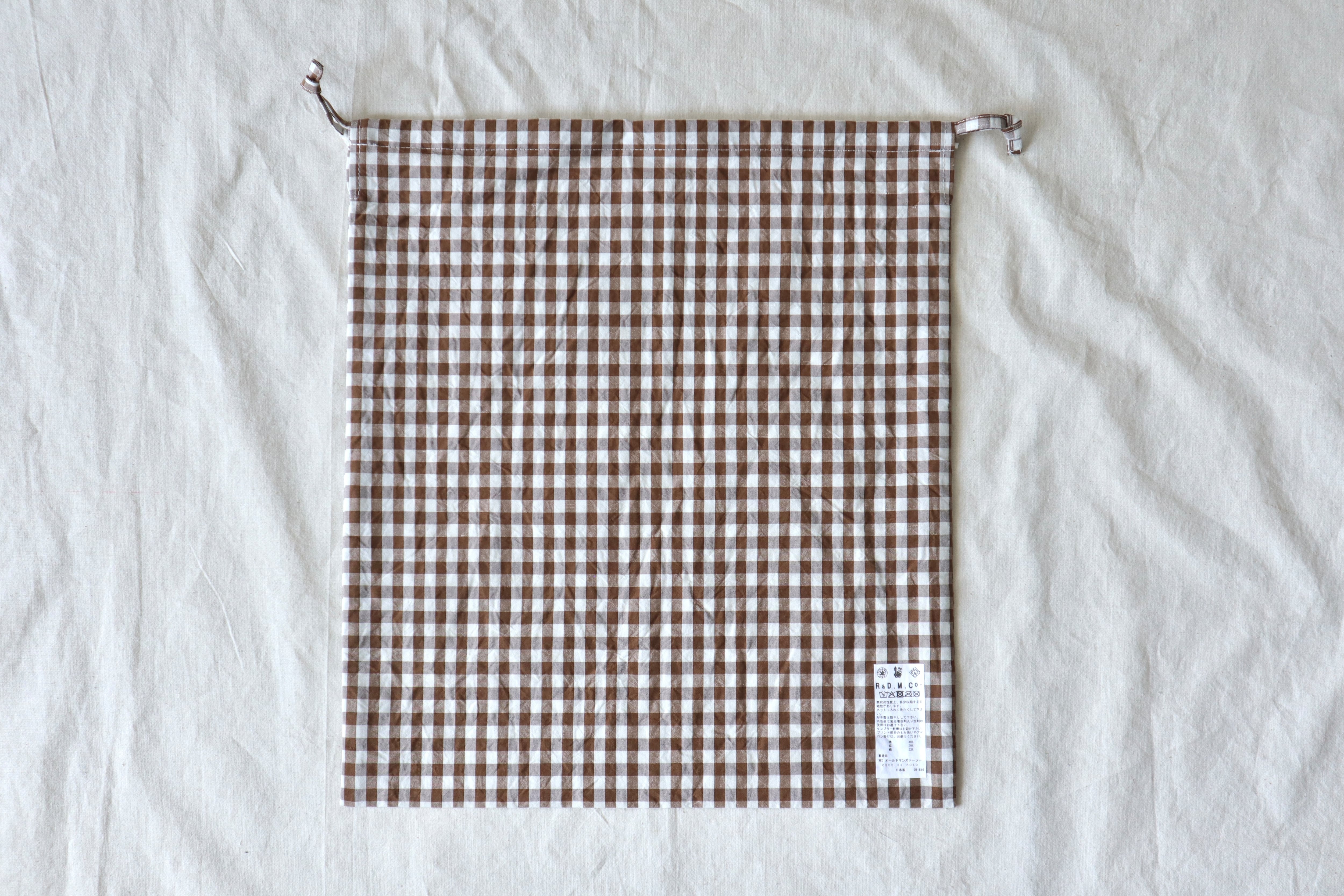 綿麻シルク混紡の素材を使用したギンガムチェックの巾着です。