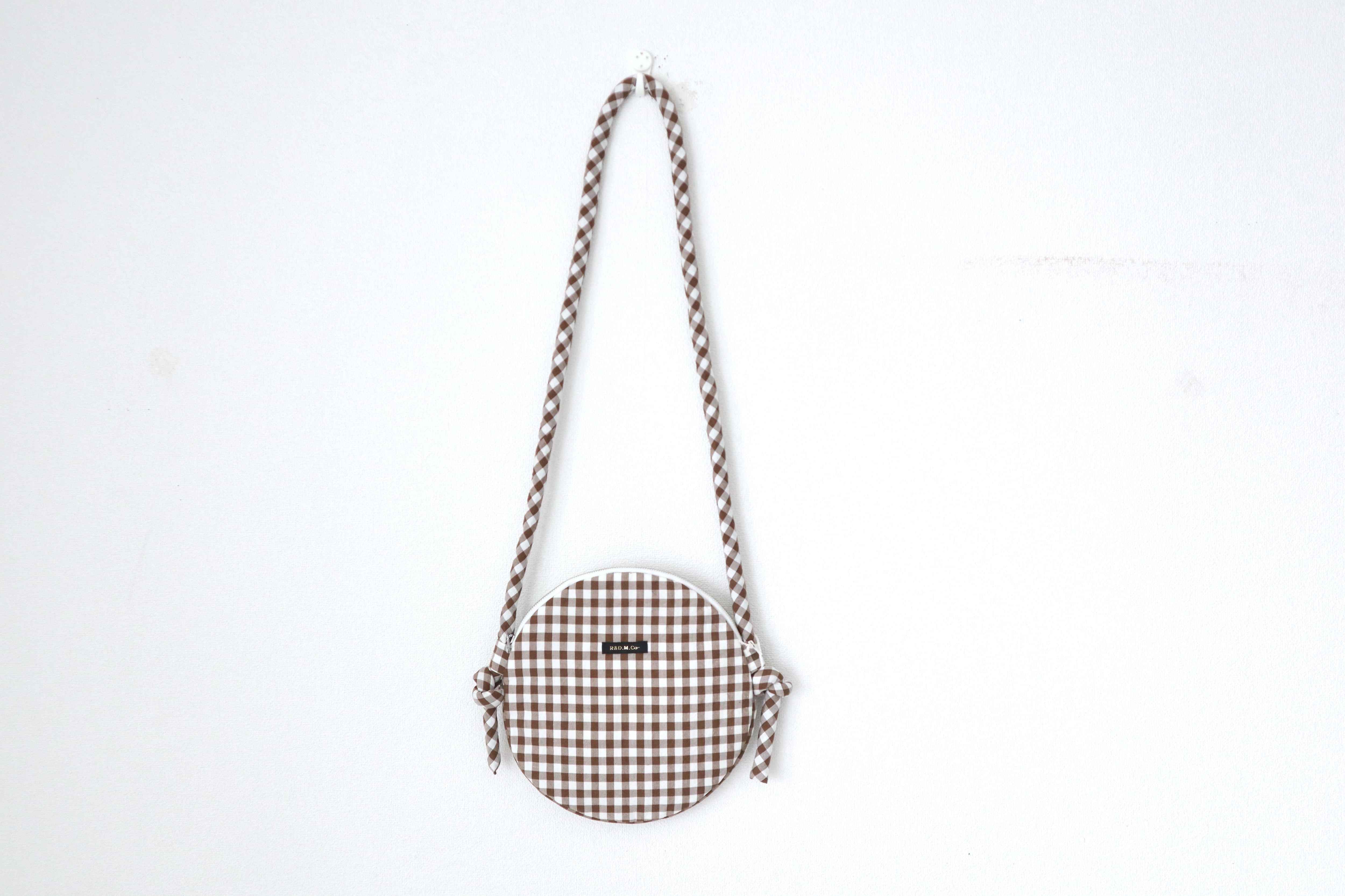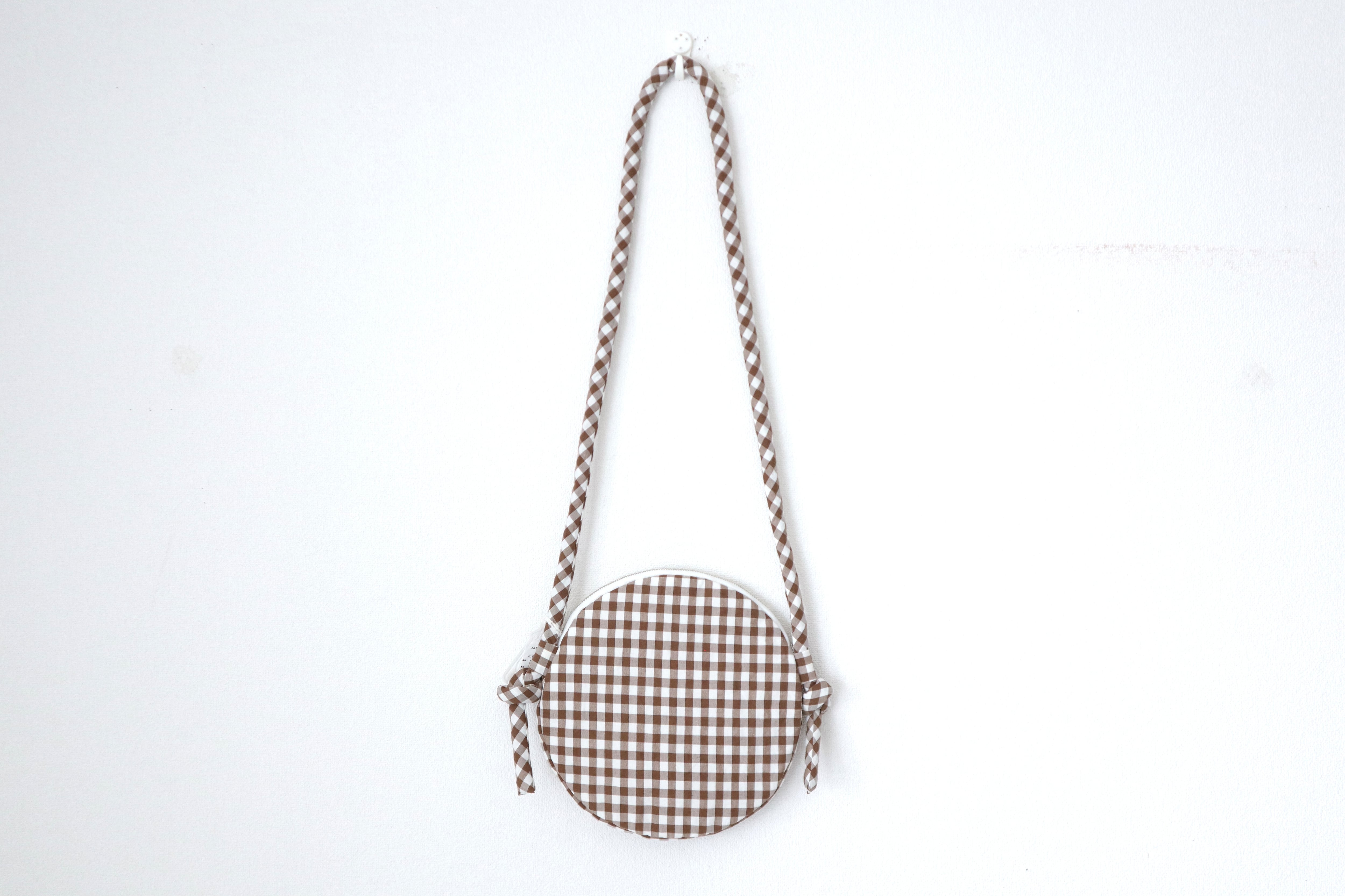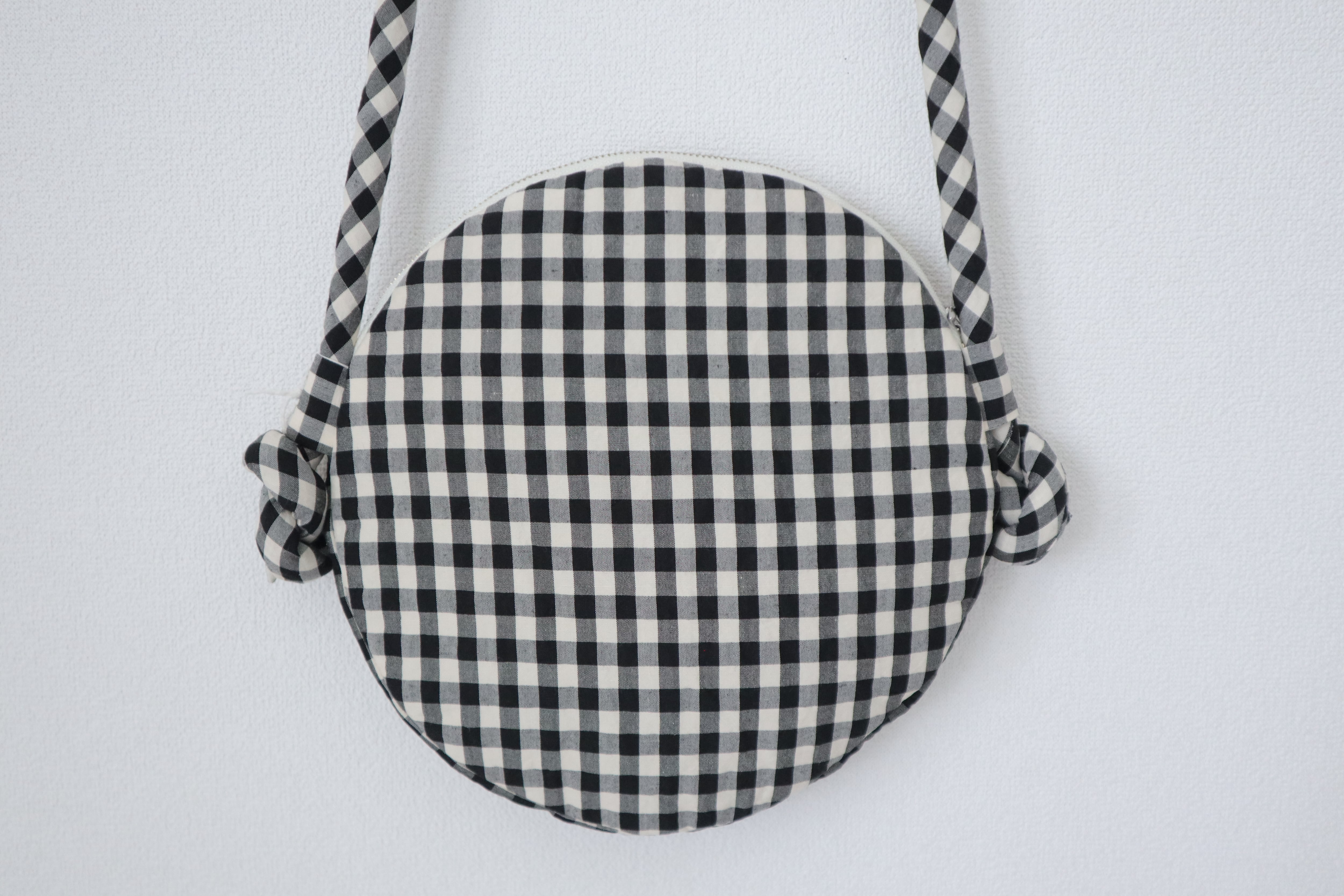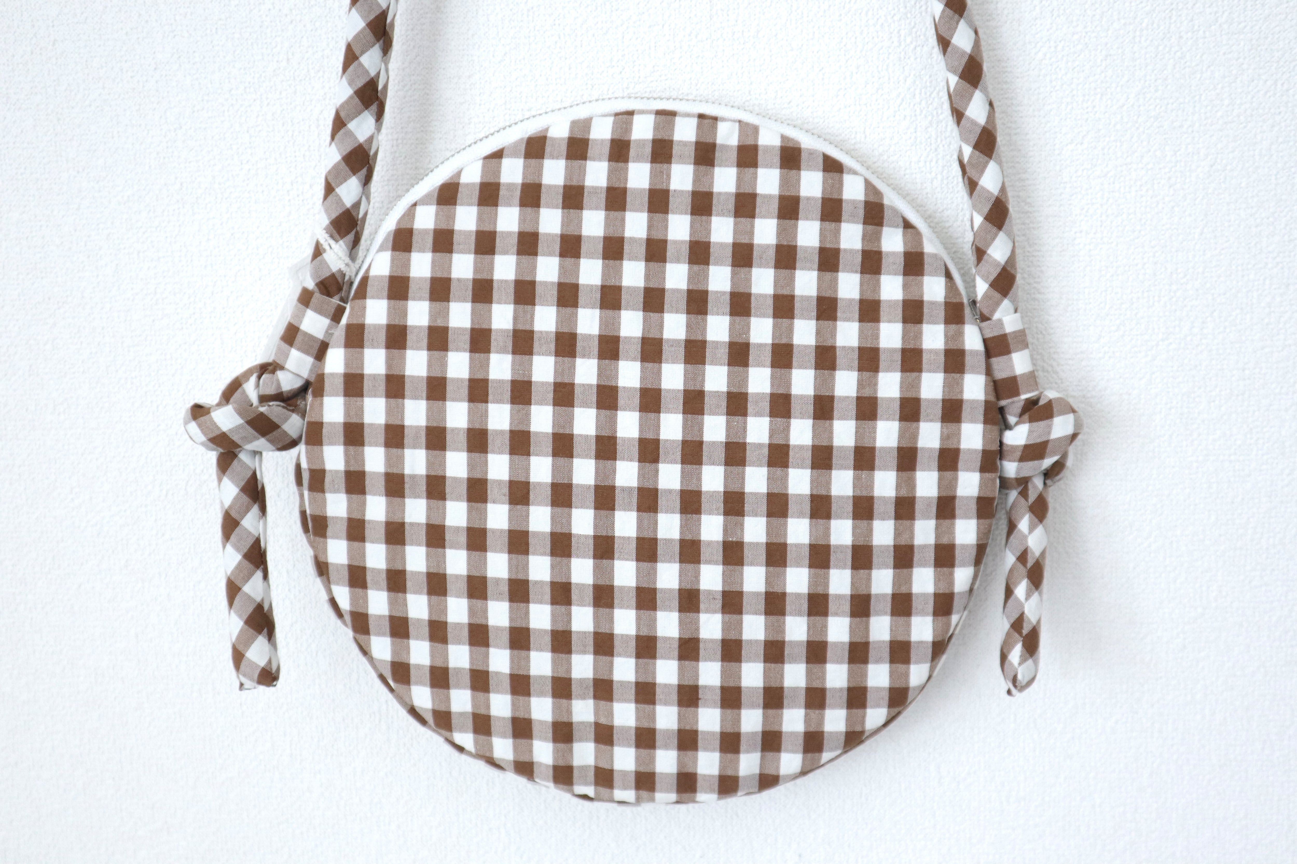 綿麻シルク混紡の軽量のサークル型ショルダーバッグです。
