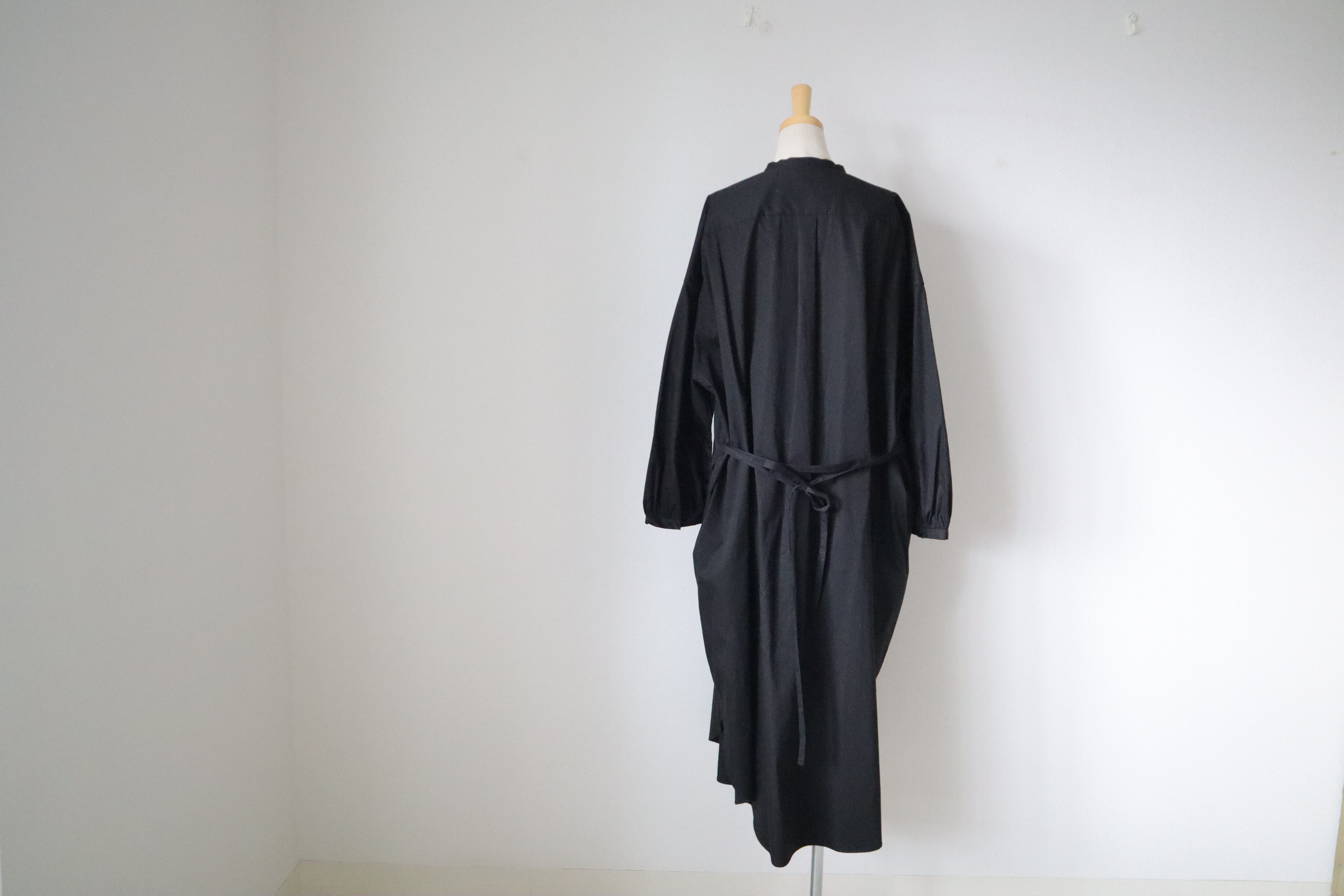 コットンツイル素材は、肌ざわりが柔らかくコットン素材の上品な光沢感がある素材で、さらっと一枚で楽しめるスタンドカラーのワンピースです。