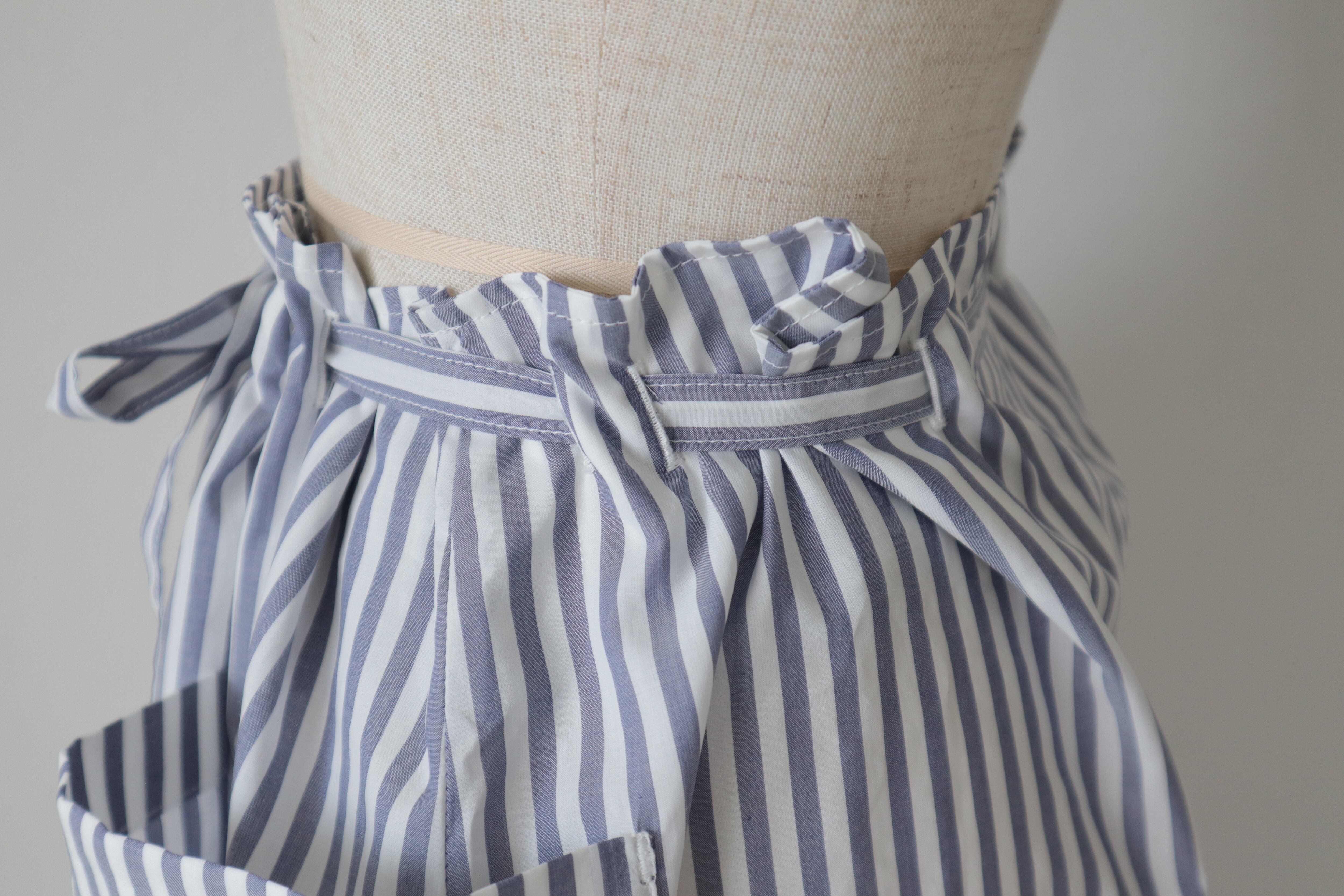 爽やかな水色のストライプが初夏のはじまりを思わせてくれるスカートです。コットン100%で軽い履き心地で涼しげな印象を演出。