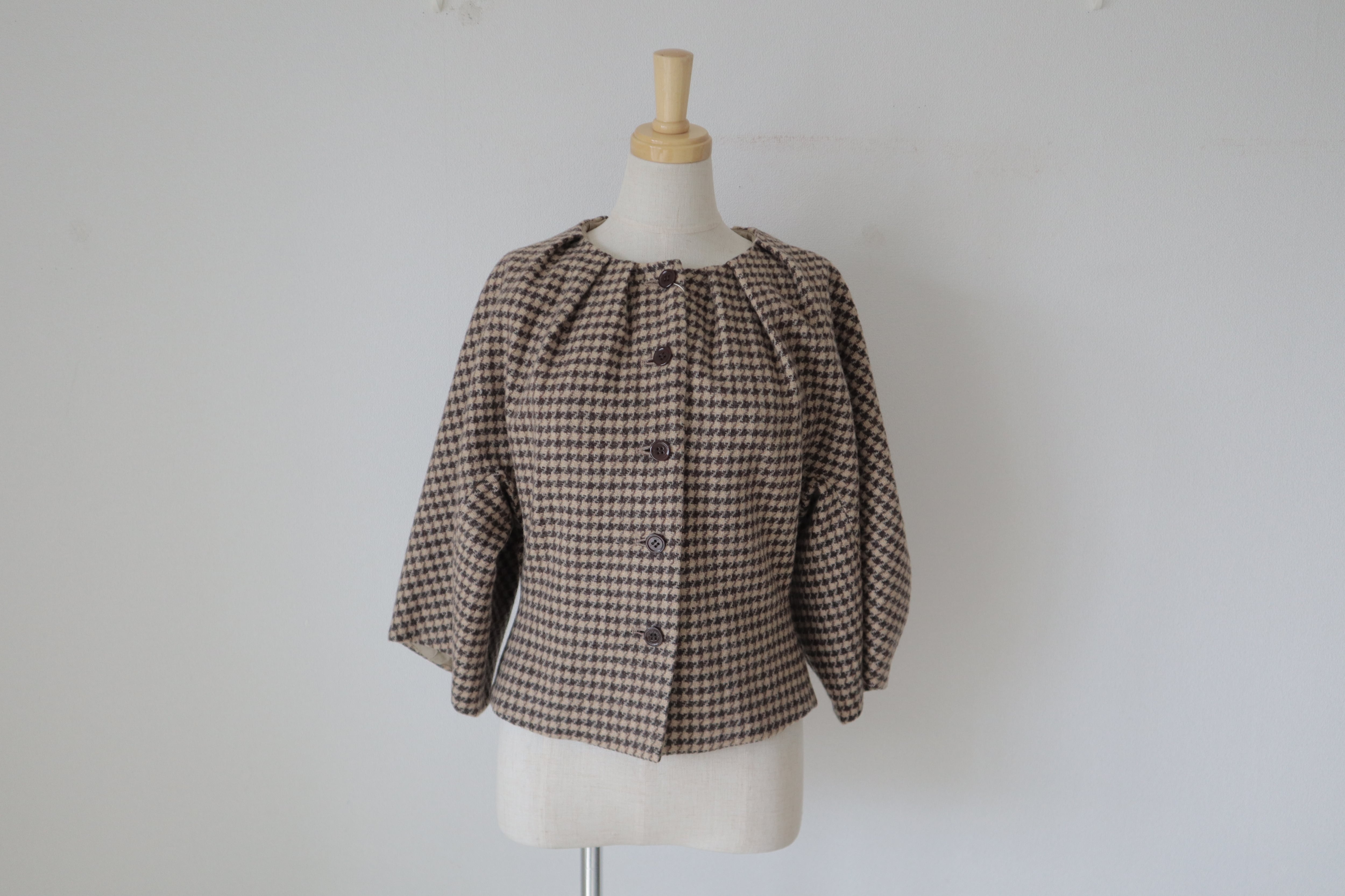 HOUNDSTOOTH BALLOON SLEEVE JACKET