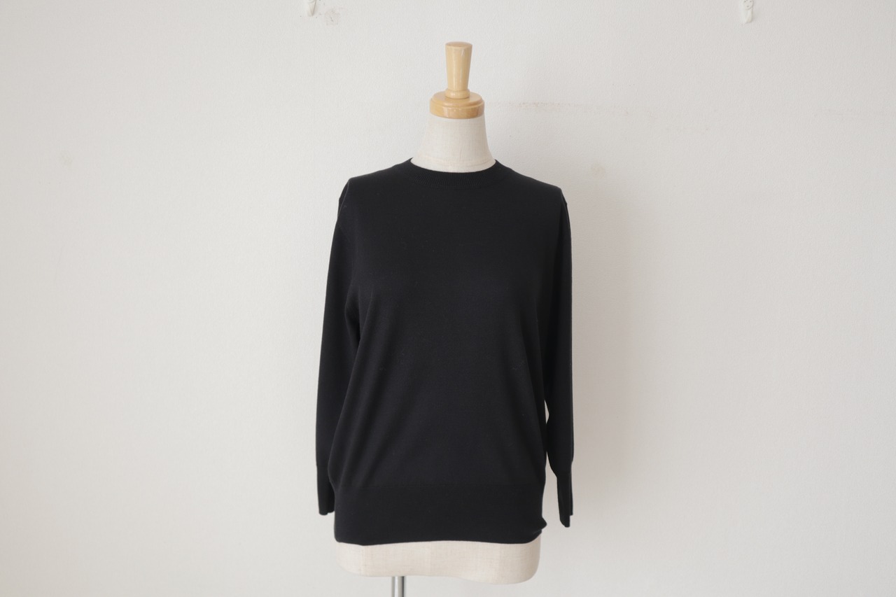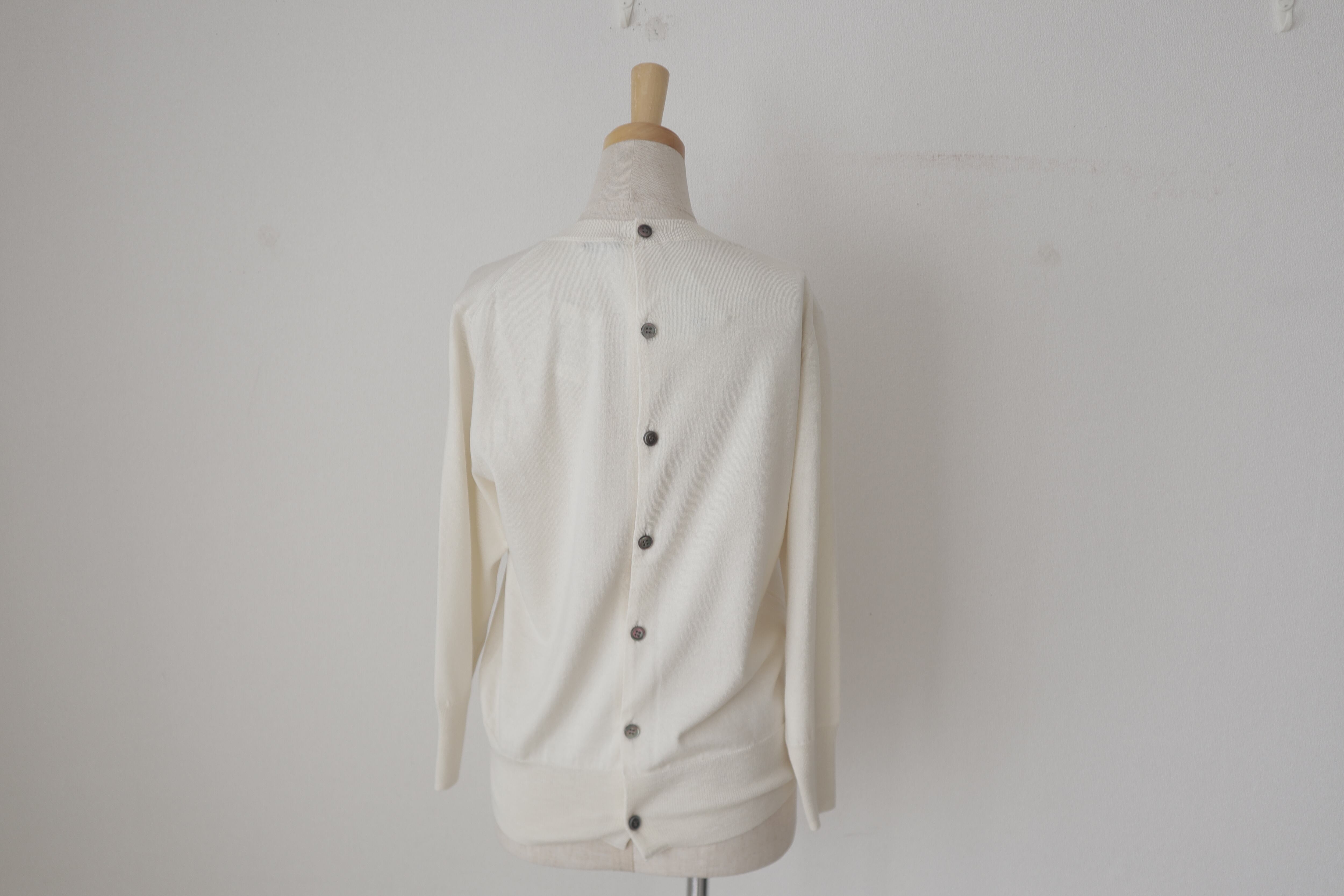 シルクとカシミアの肌触りを楽しむ、バックボタンのデザインが特徴の長袖トップス。上品で優雅な印象を与えるシルク素材と、暖かく柔らかい触り心地のカシミア素材が絶妙に組み合わさった一枚です。 後ろボタンのデザインは、シンプルながらも華やかさをプラスし、背中のラインを美しく演出します。そして、首元や袖口も細部にまでこだわり、エレガントな印象を与える仕上がりになっています。