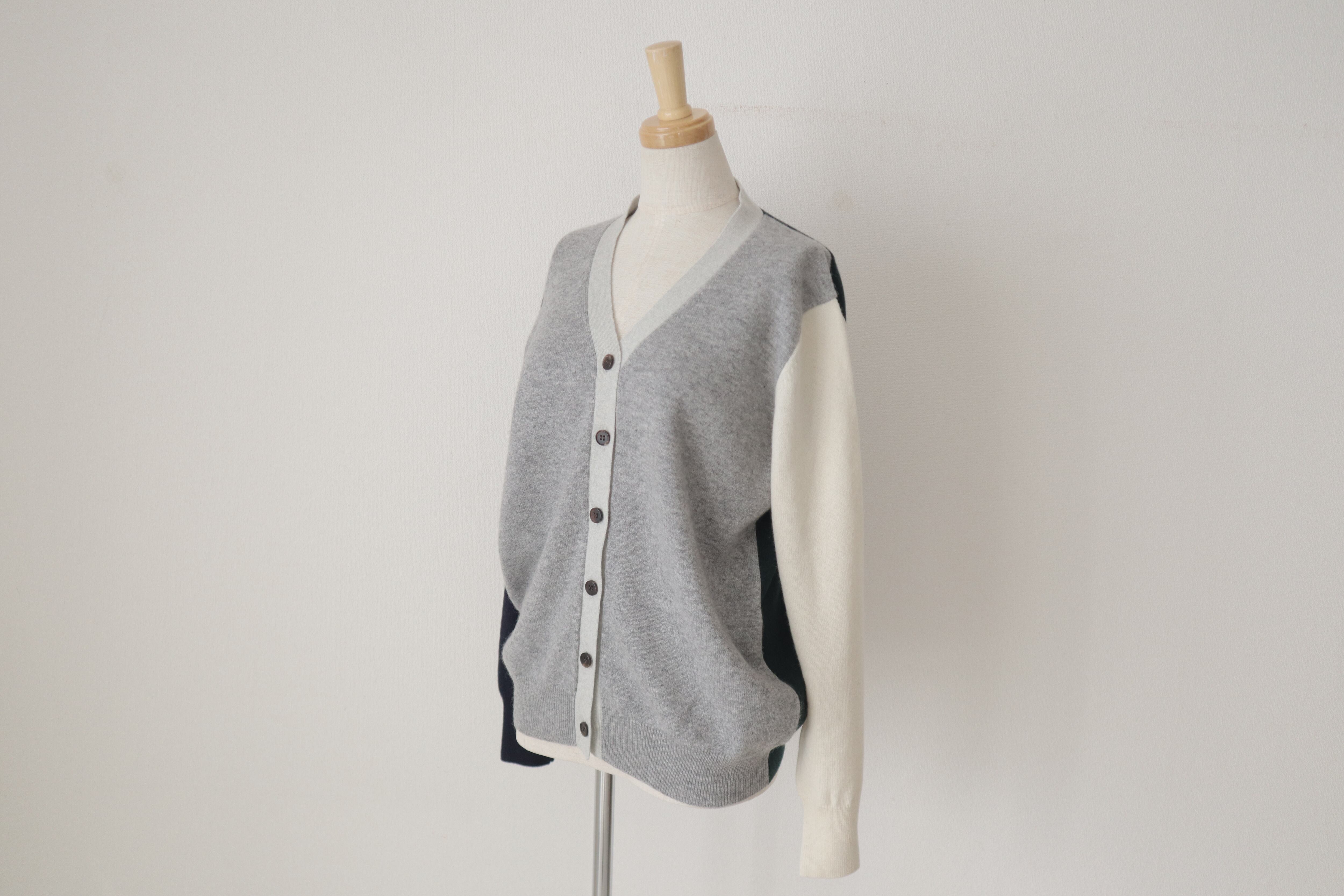 一枚でさまざまなスタイリングを楽しめる、CASHMERE CRAZY V NECK CARDIGAN。上品なVネックデザインと上質カシミア素材が、大人の女性にぴったりの一枚です。程よいゆとり感とシルエットで、どんな体型の方にもフィットします。グリーン、グレー、ホワイト、ネイビーの配色が綺麗でそれぞれ綺麗なブルーが配色されたお洒落なカーディガンです。