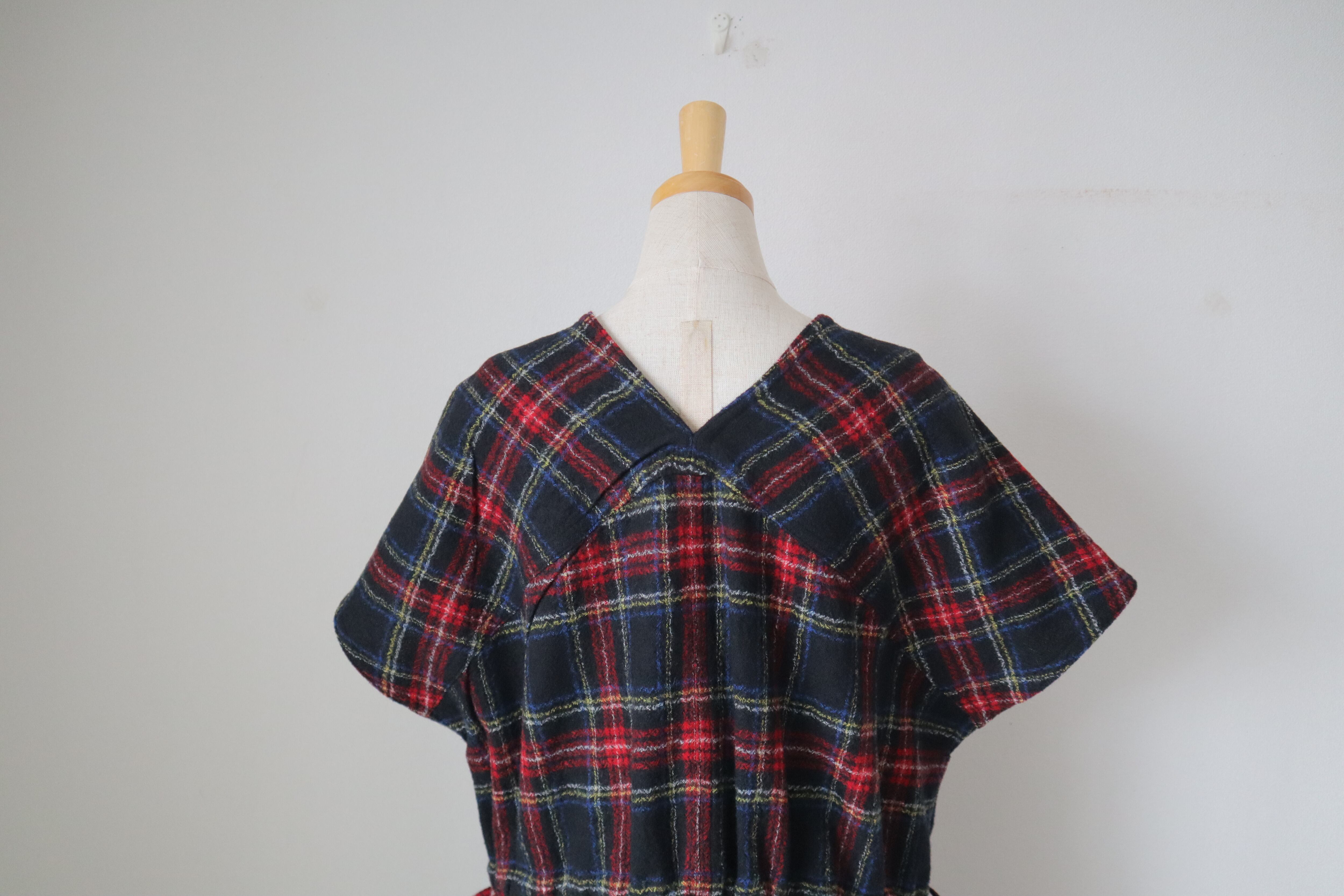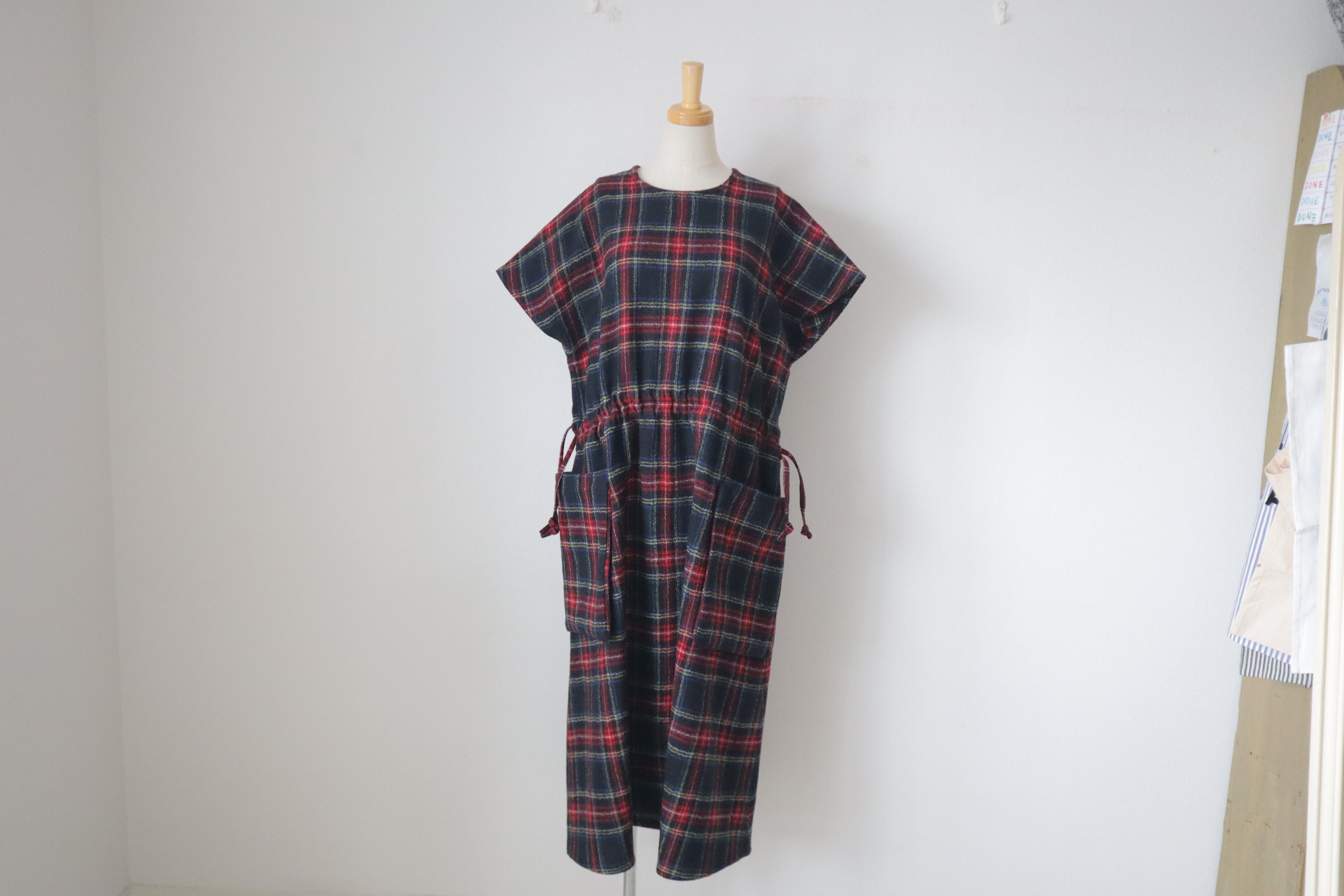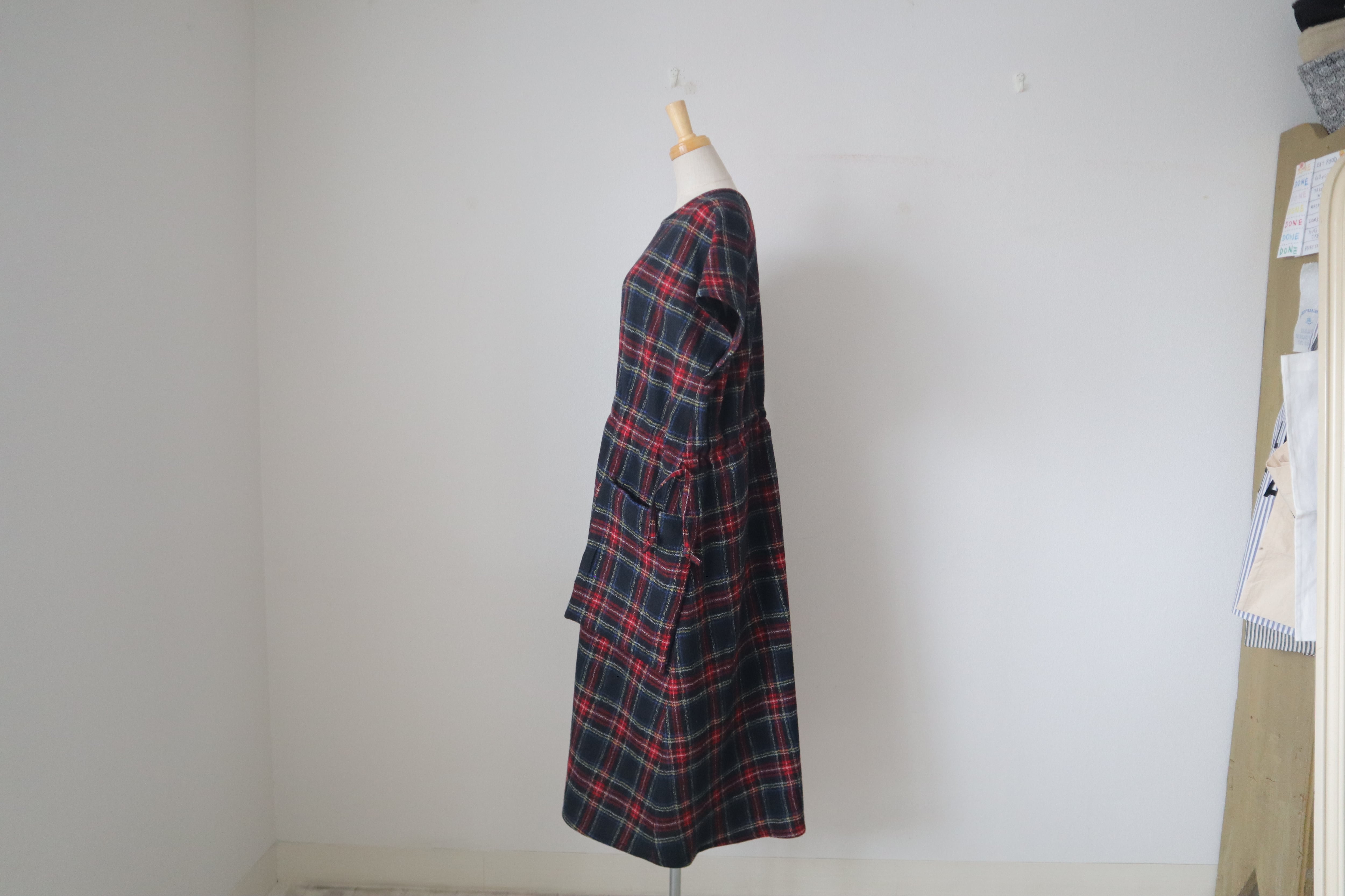 6539 WOOL TARTAN CHECK POCKET DRESS