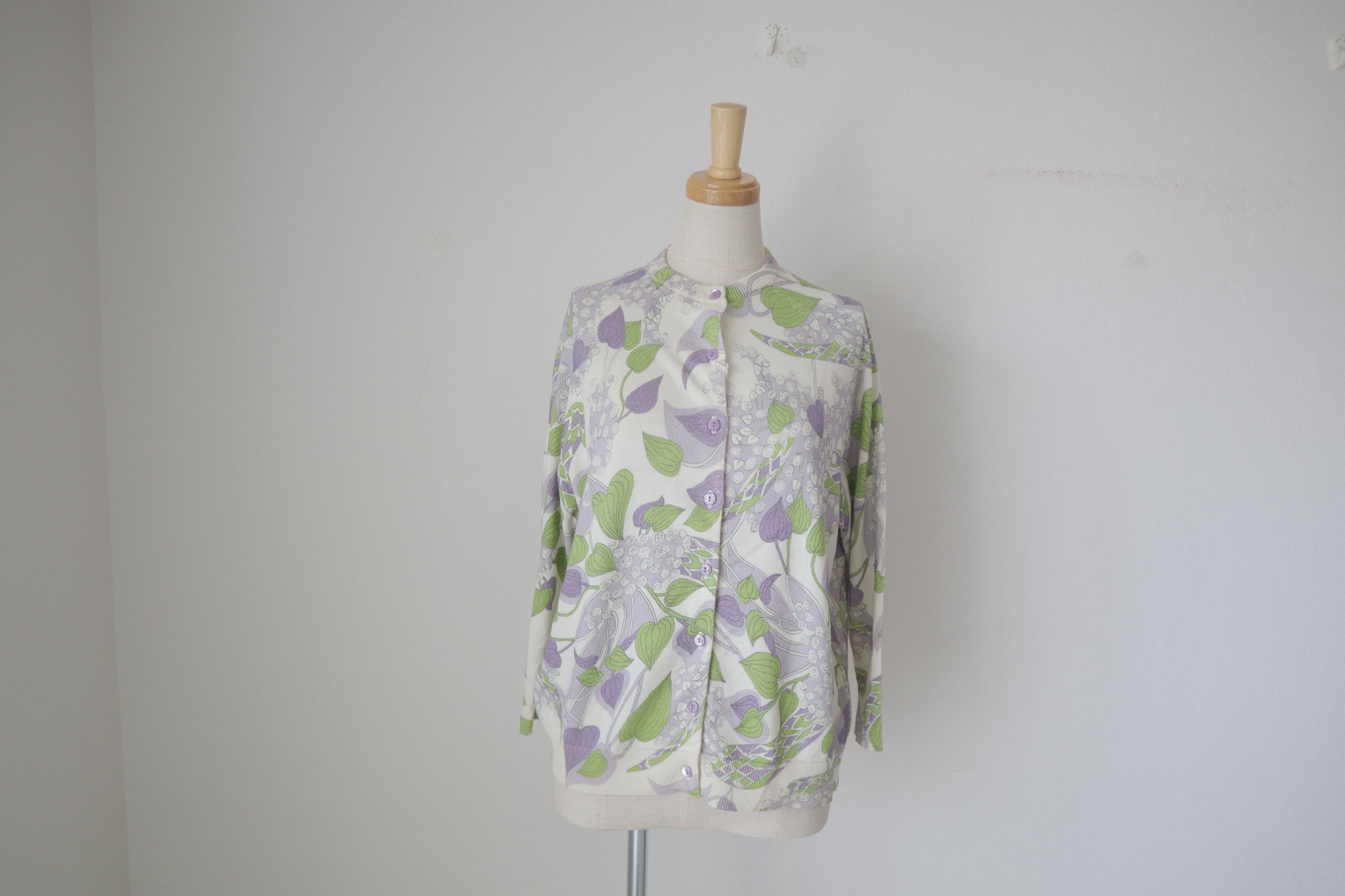 6222 BOTANICAL MOTIF CREW NECK CARDIGAN