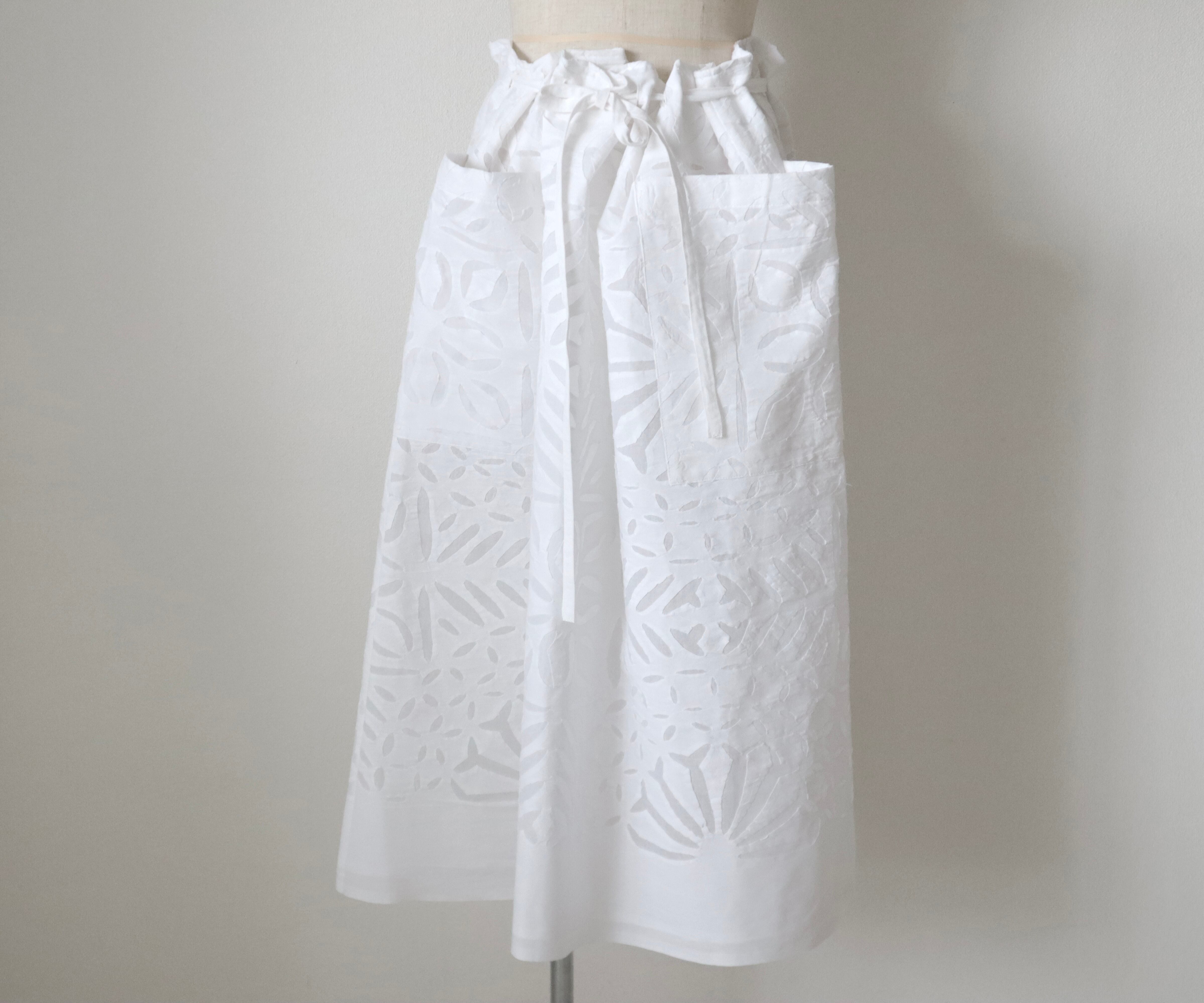 BOTANICAL APPLIQUE STRING SKIRTは、エレガントさと遊び心が融合したアイテムです。花をモチーフにしたアップリケと、細かなディテールがポイント。繊細な手触りと優雅なデザインで、特別な日やデイリーぴったりの一枚です。 ウエストは紐でサイズ調整が可能です。下にペチコートを履くと透け感も安心です。