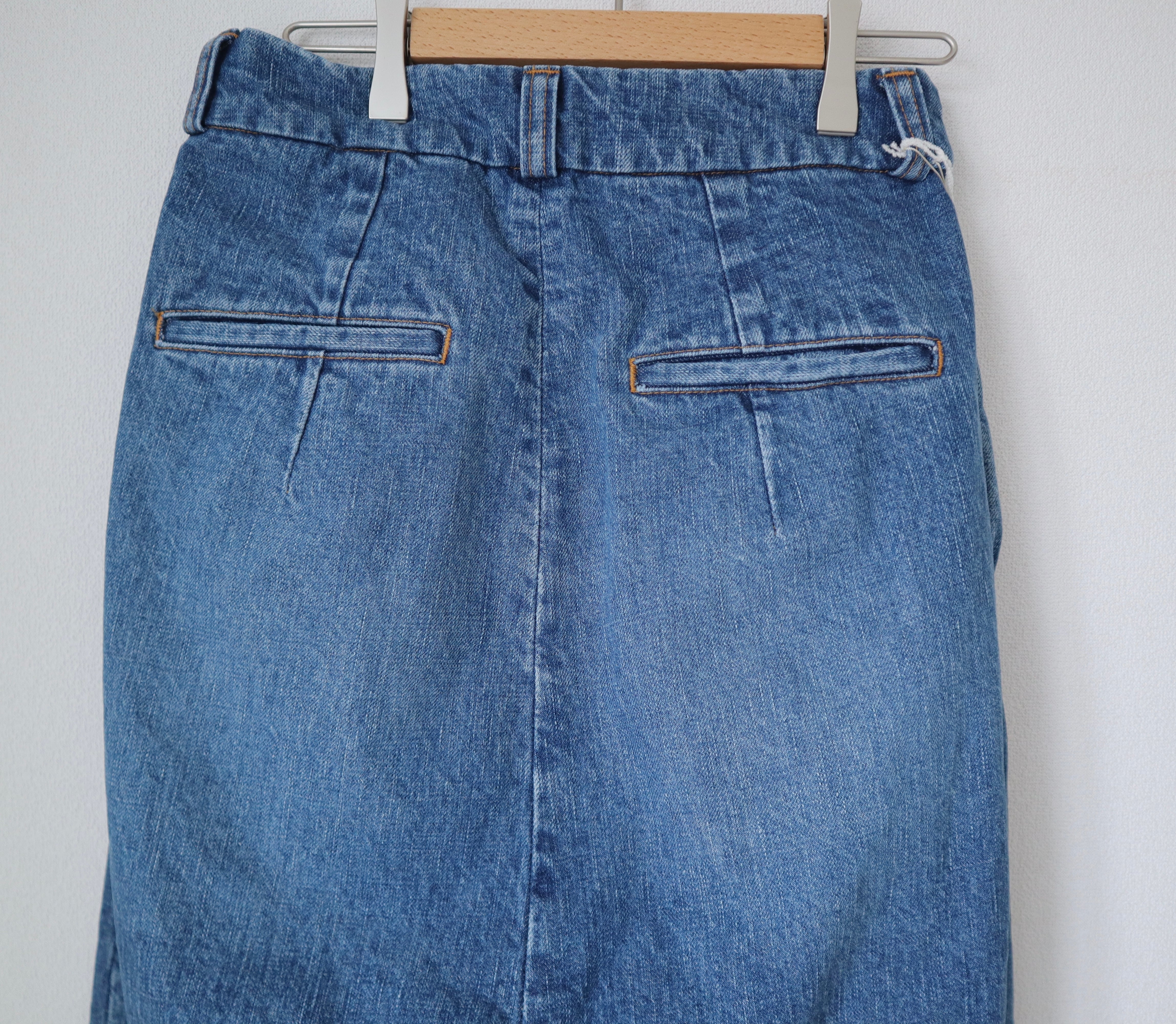 ヴィンテージライクな雰囲気たっぷりのTUCK DENIM WIDE PANTS。ウエスト部分に施されたタックデザインが特徴で、腰回りをスッキリと見せてくれます。程よく広がるワイドシルエットが、足元を美しく演出してくれます。デニム素材なので、カジュアルな着こなしにぴったりです。またトップスによっては