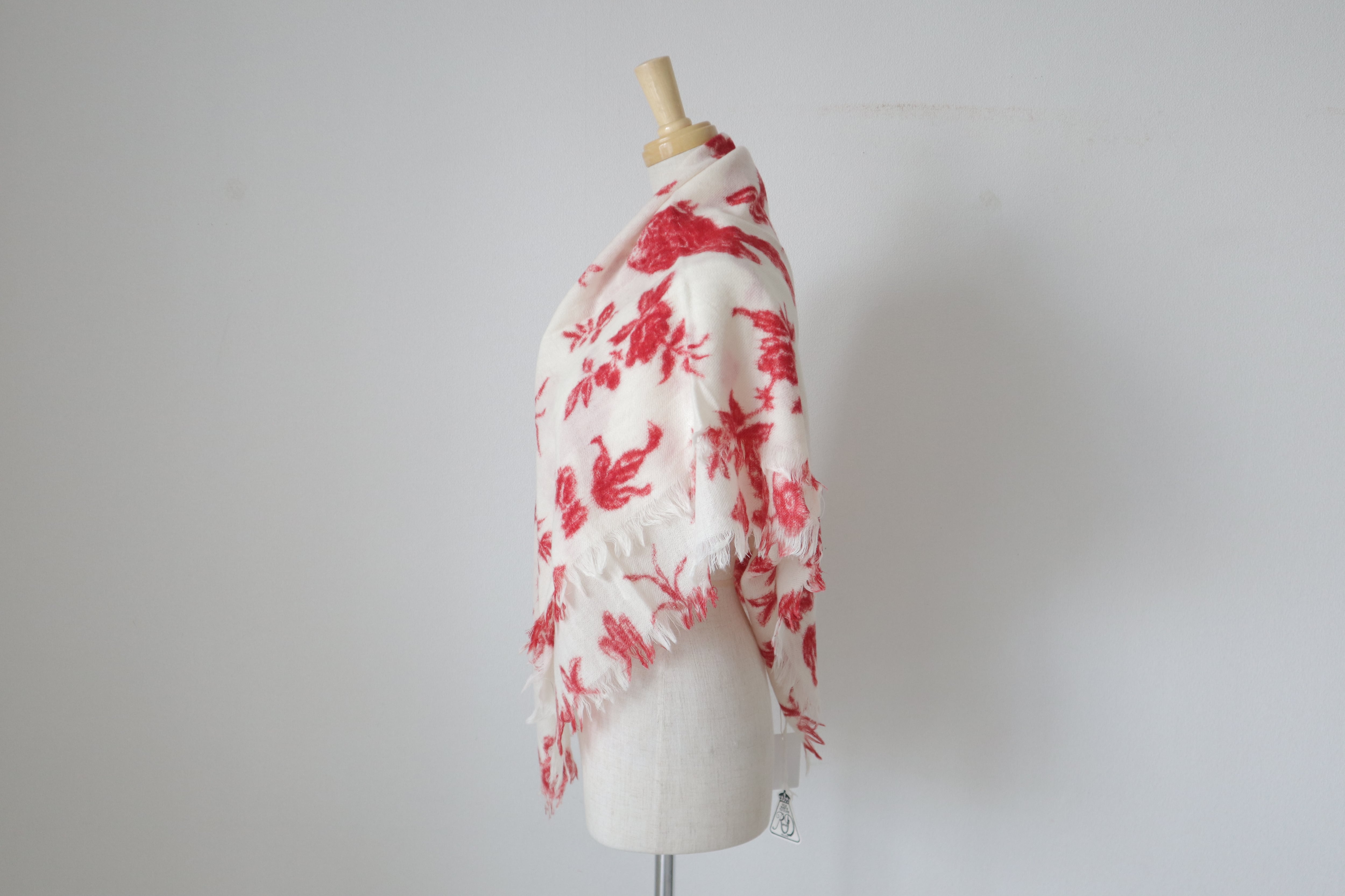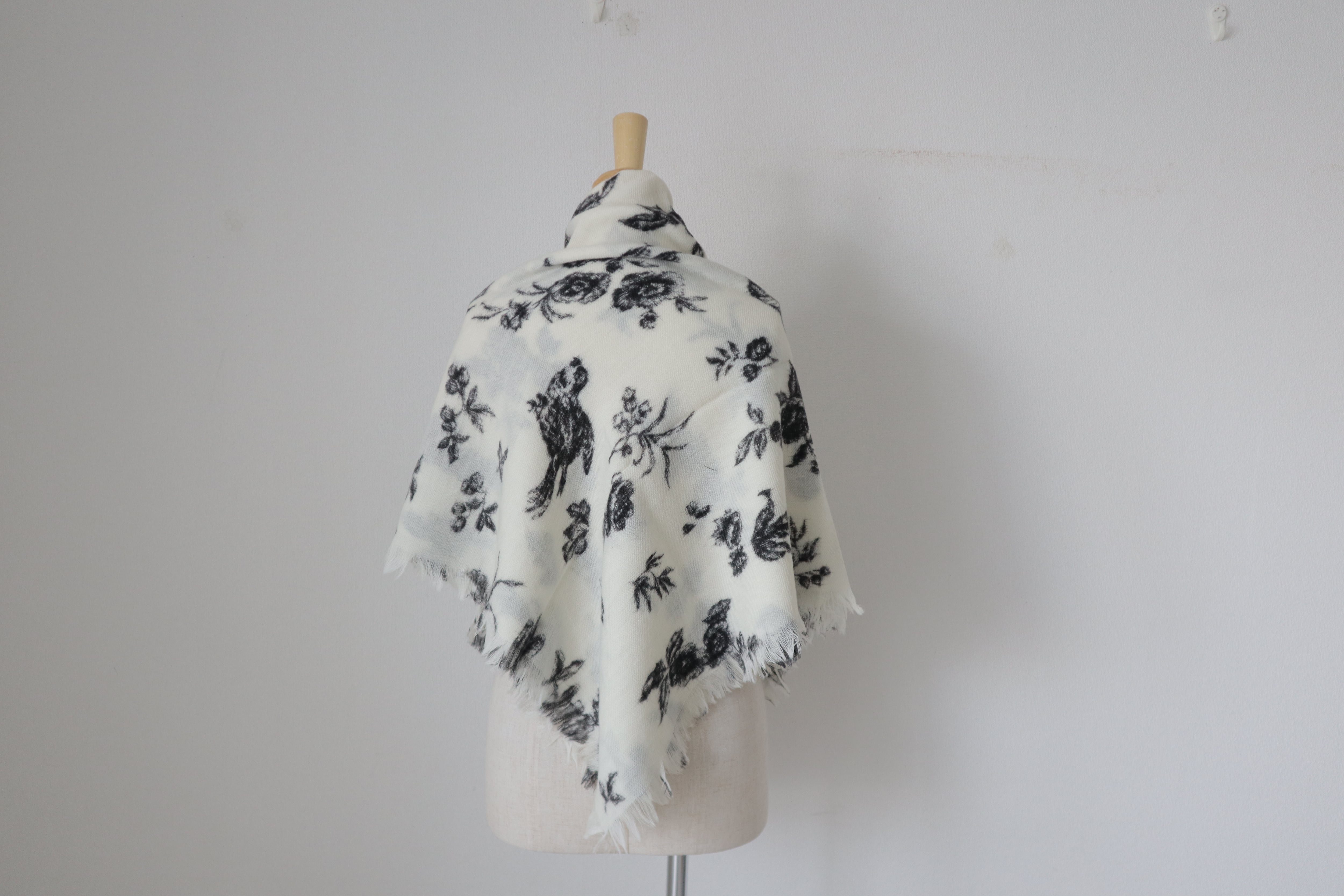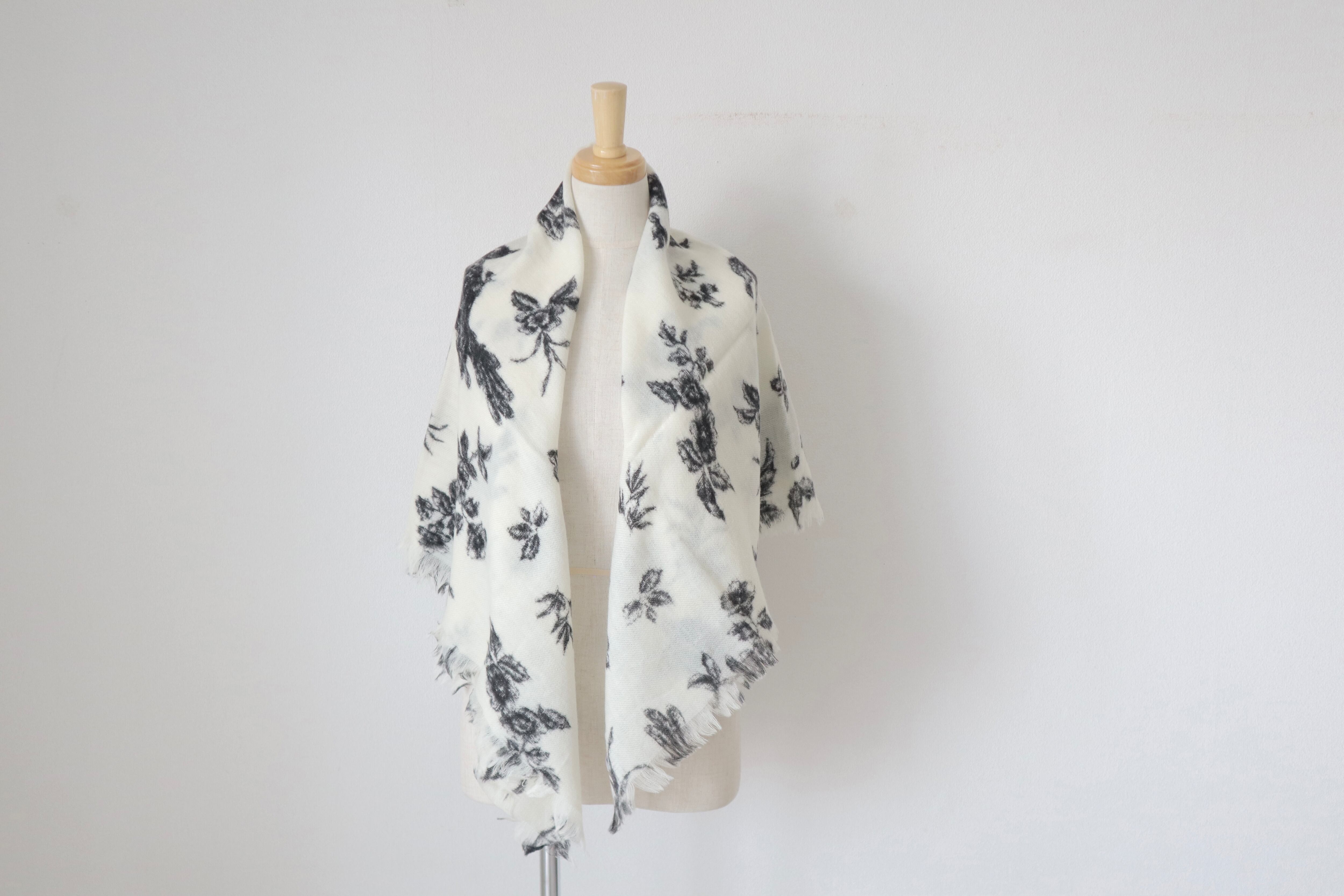 GARDEN WOOL SHAWLは、華やかな花々が描かれたウールショールです。風合い豊かなウール生地が暖かさをキープしながら、華やかな花模様が何とも言えない女性らしさを演出します。オシャレなデザインで、コーディネートのアクセントに。