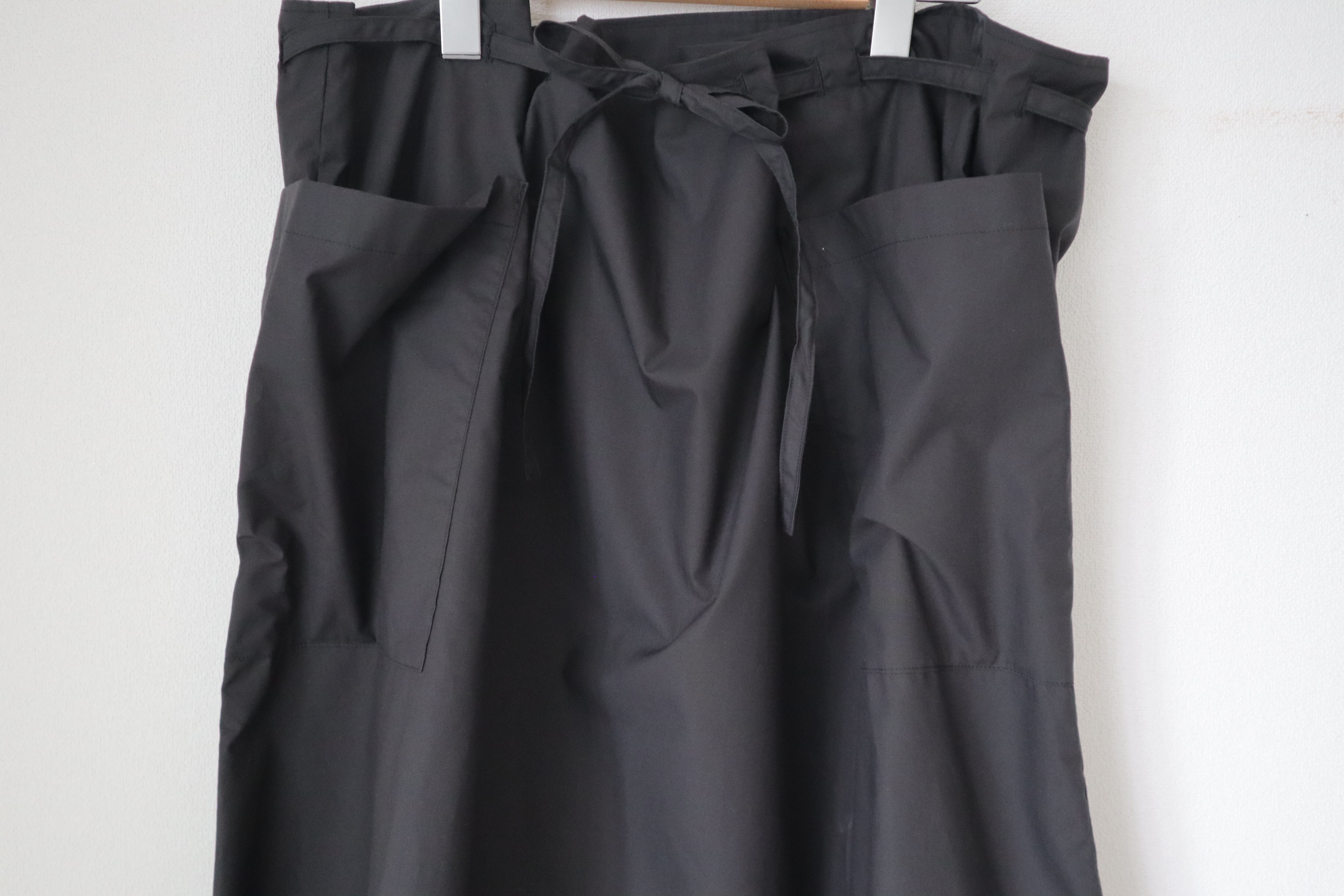 COTTON SILK TYPEWRITER STRING SKIRTは、シルク混紡の上品な素材感と、独特な風合いが特徴のスカートです。程よい光沢感と軽やかな風合いで、華やかな装いを演出します。ウエスト部分のストリングデザインがアクセントになり、シンプルなトップスとの相性も抜群です。