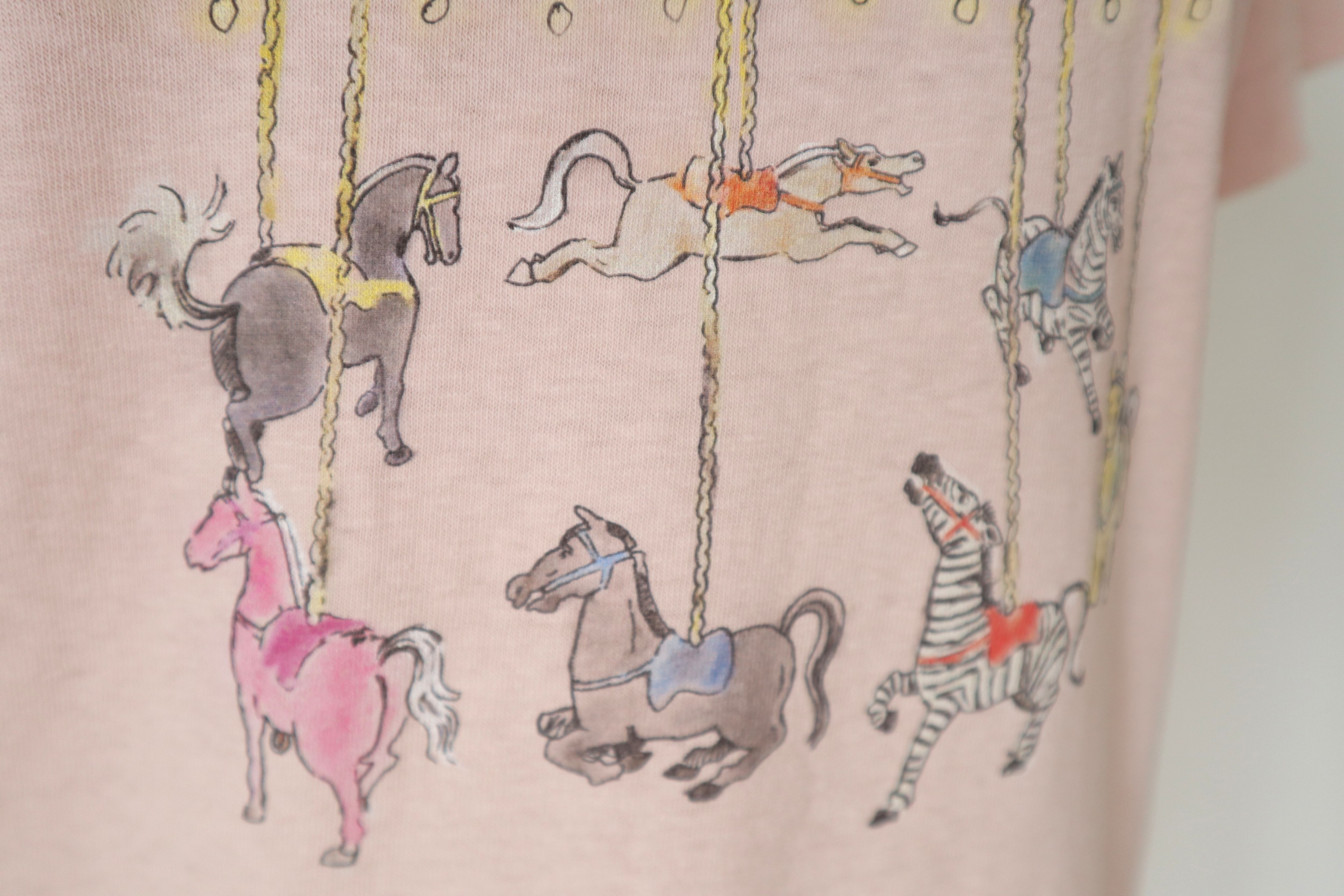 メンズサイズでも女性にぴったりな大人可愛いTシャツ、Men’s MERRY-GO-ROUND T-SHIRT。