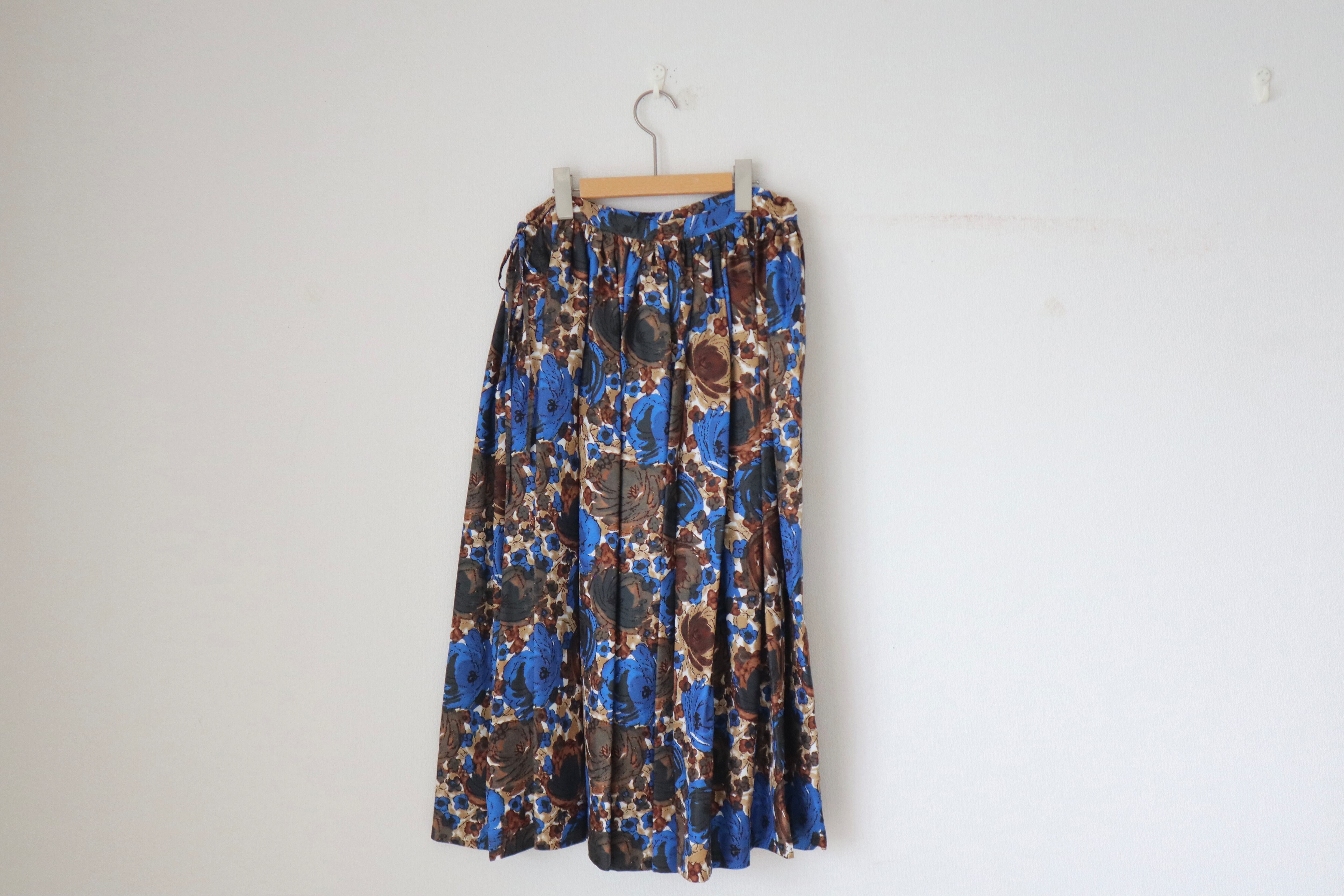 EARLY SUMMER FLOWER GATHER SKIRTは、鮮やかな青が綺麗な花柄スカートです。ウエスト部分のギャザーが女性らしさを引き立て、ふんわりとしたシルエットが夏らしい軽やかさを演出します。さりげなく施された花柄が華やか。通年着用頂けます。