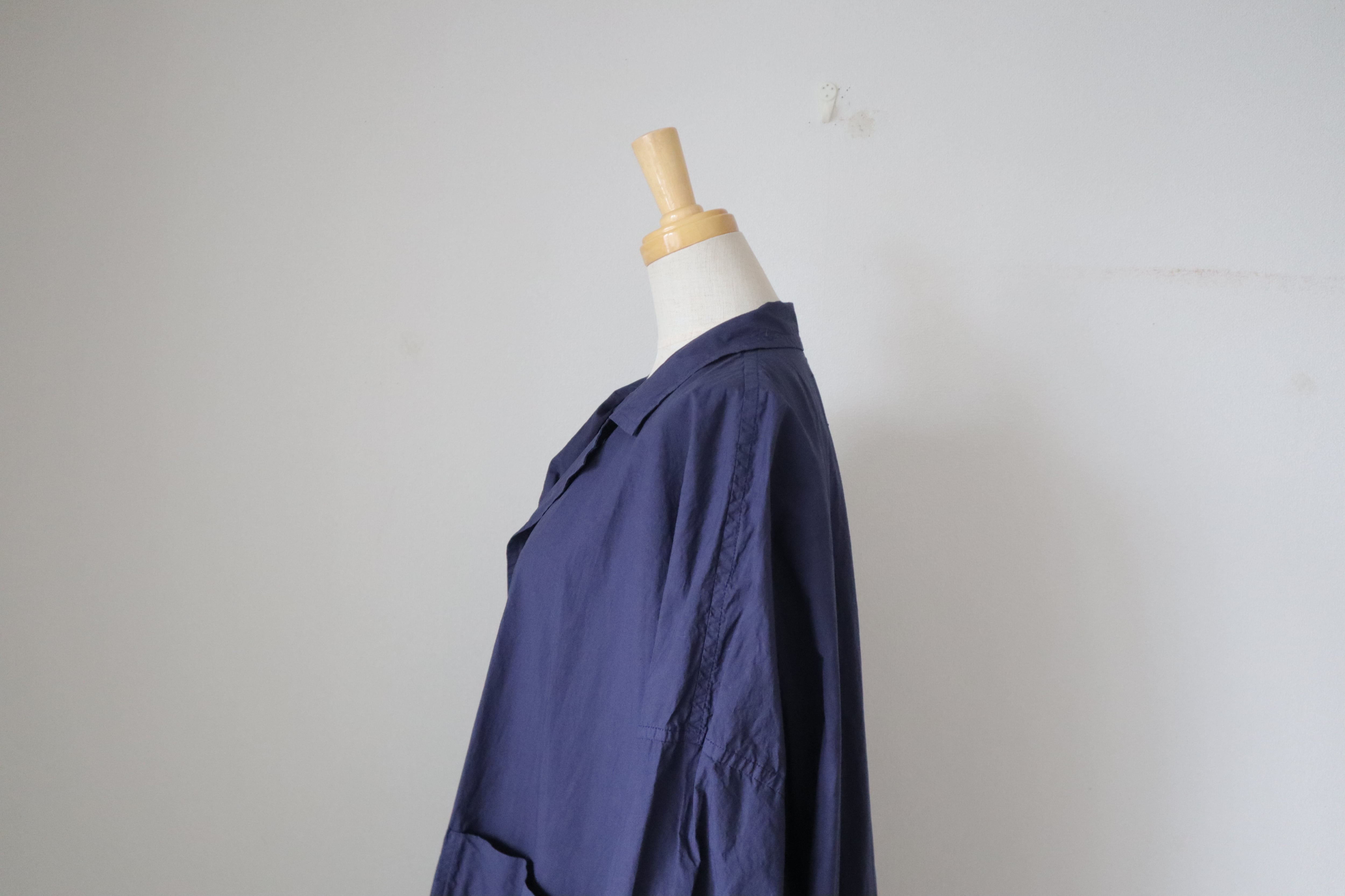 GARMENT DYE OPEN COLLAR WORK JACKETは、ガーメントダイ加工を施したワークコートです。オープンカラーデザインで羽織りやすく、ゆったりとした着心地と発色が綺麗で一枚でサラッときまるコートです。