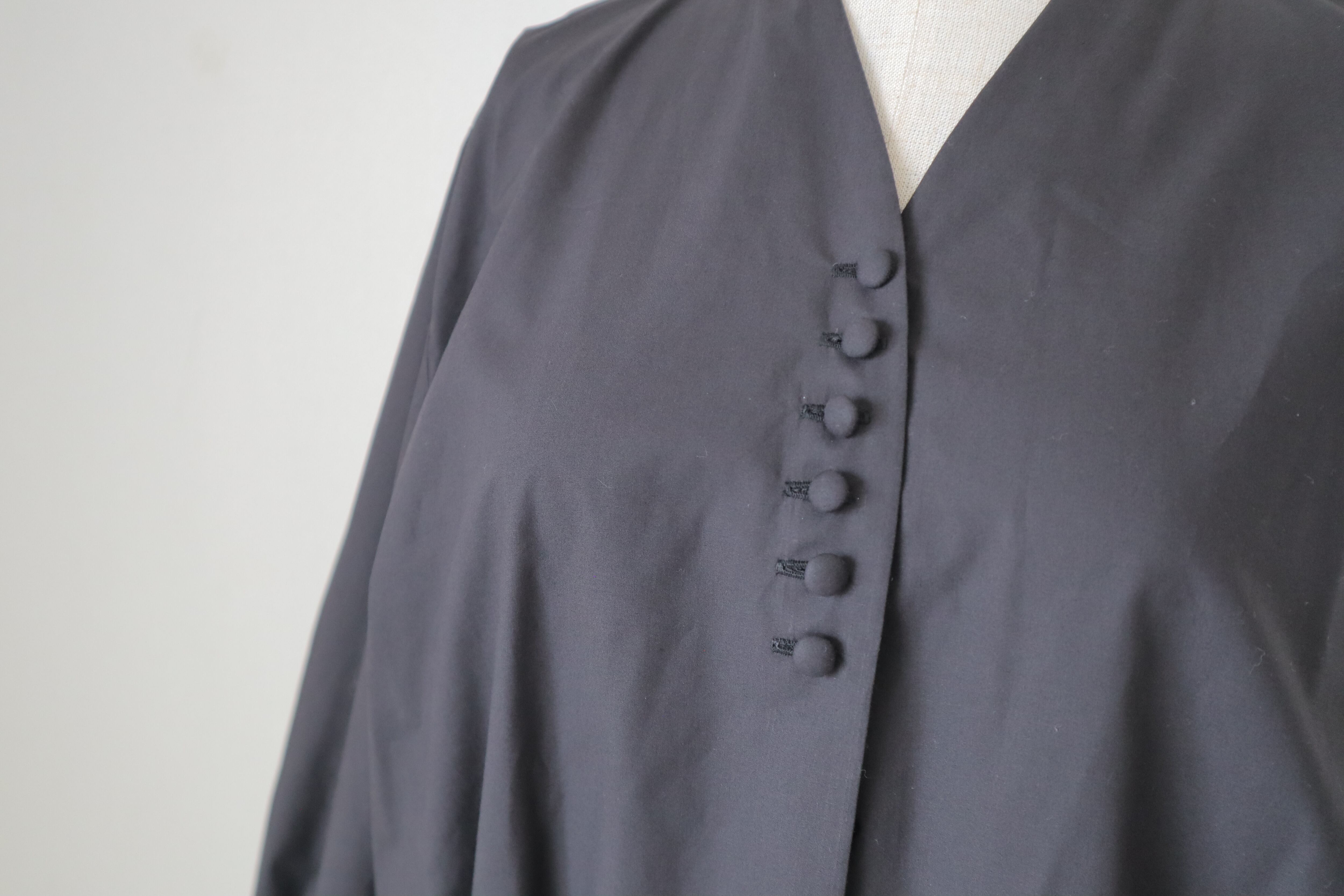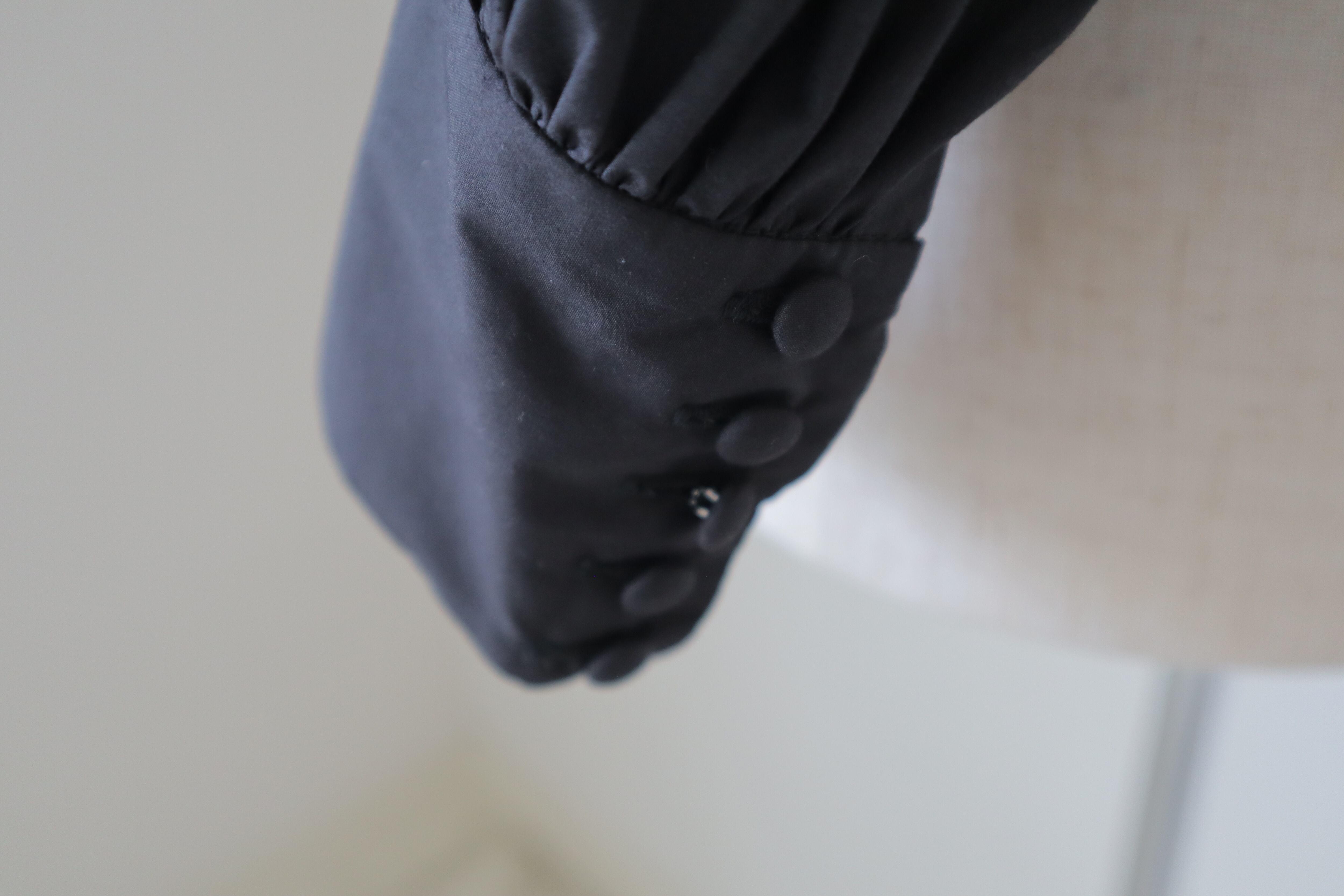 クラシックなボタン使いがアクセントの COTTON SILK TYPEWRITER PEASANT SLEEVE BLOUSE。