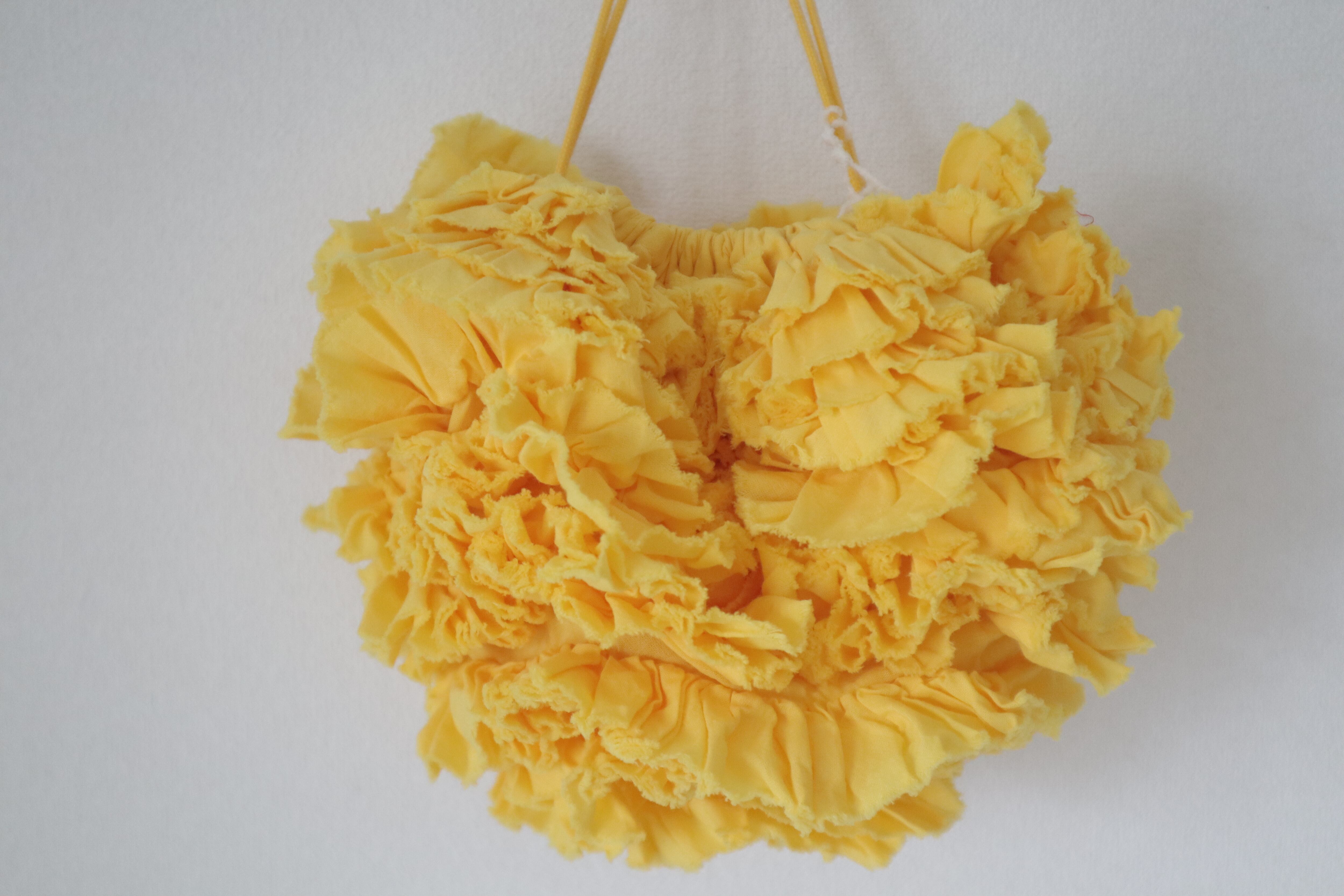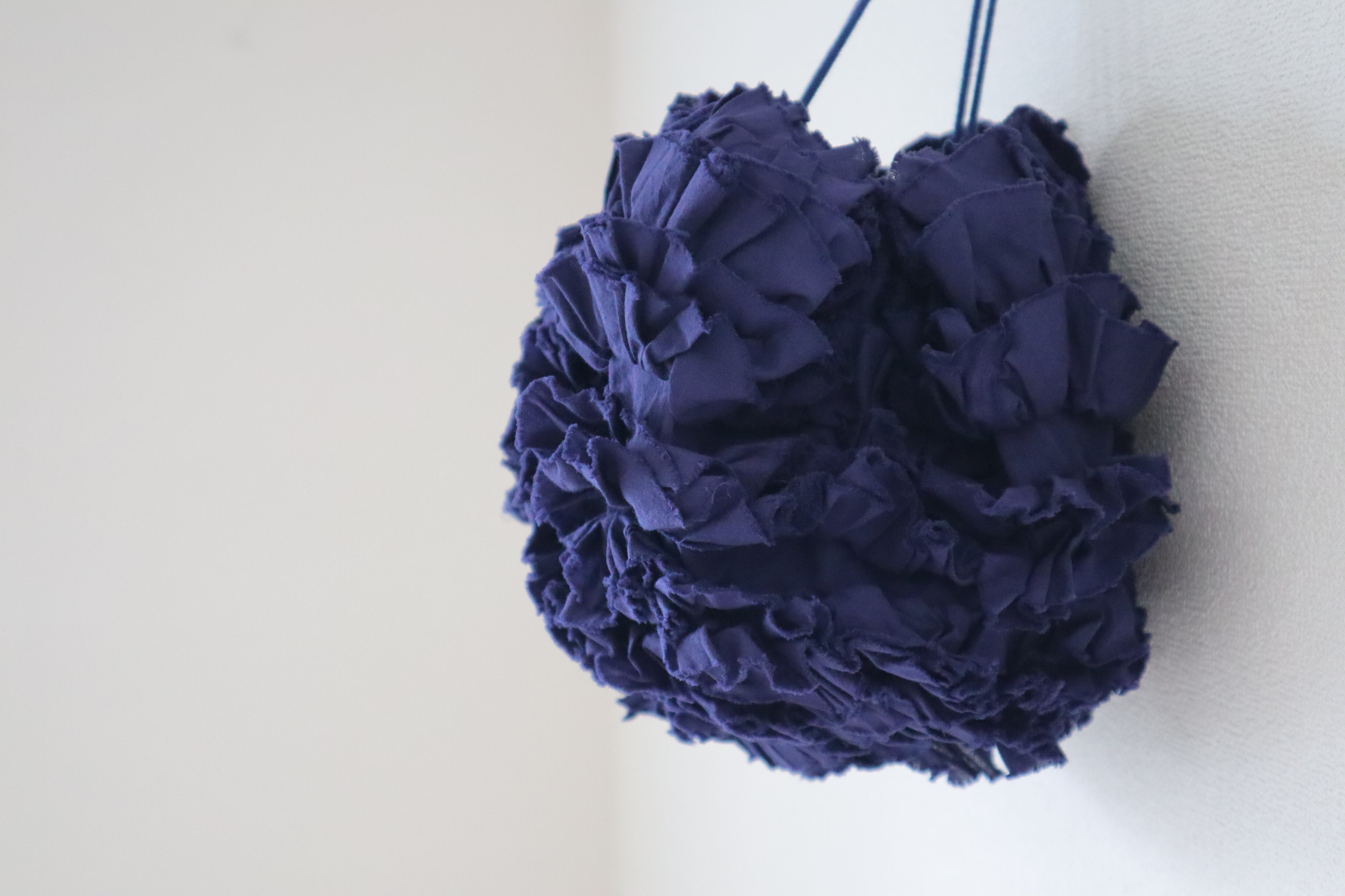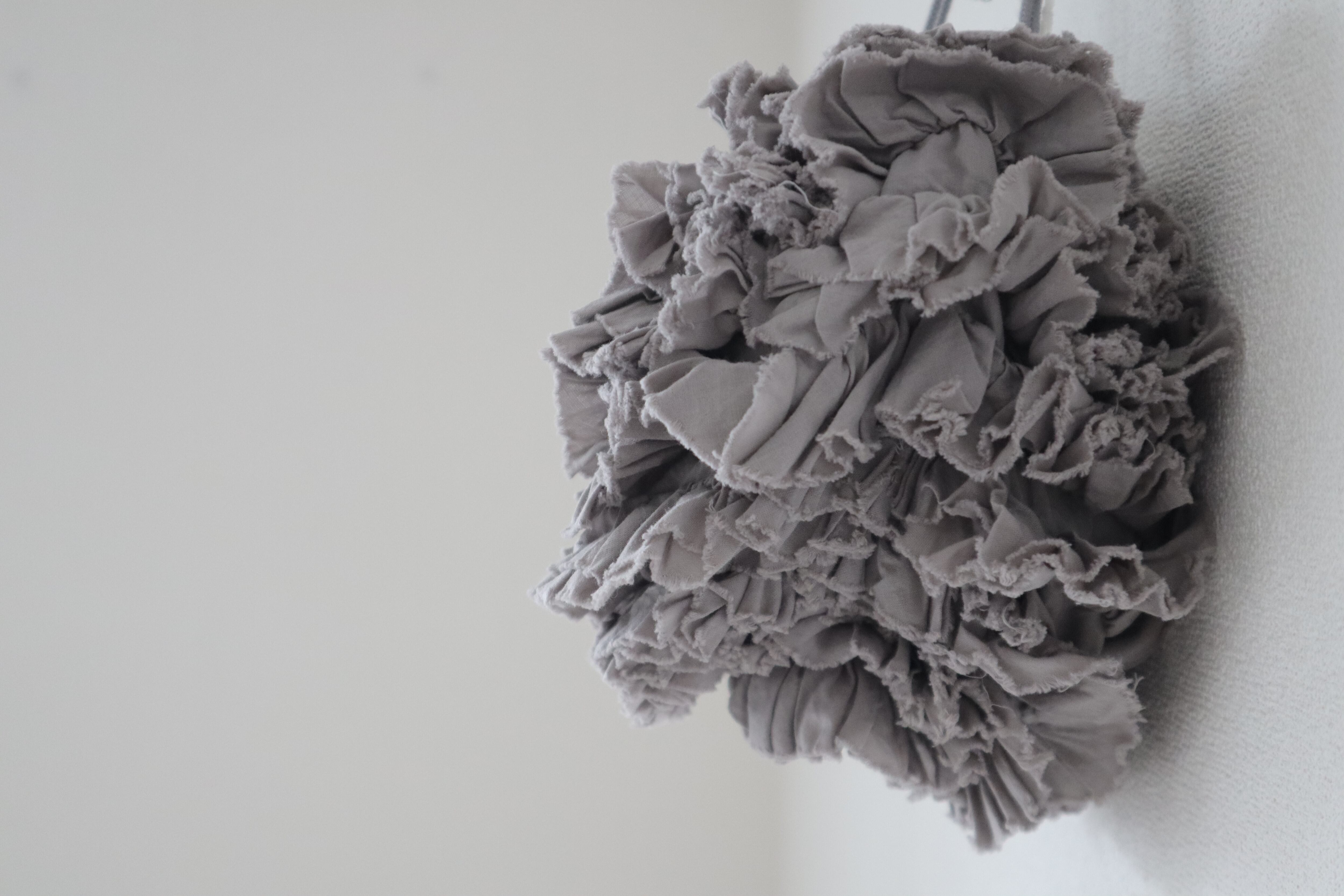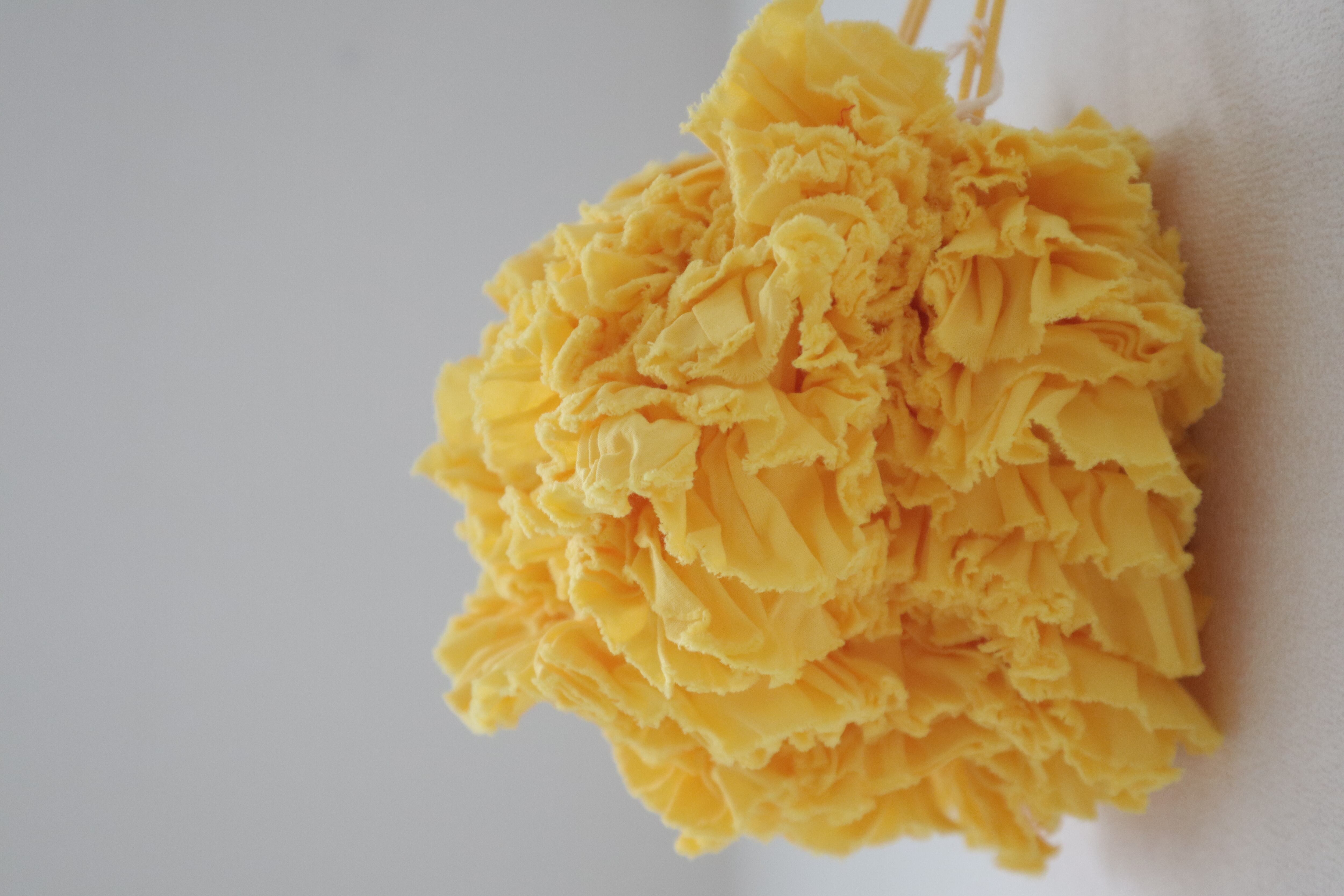 6862 GARMENT DYE FRILL POM POM FLOWER BAG